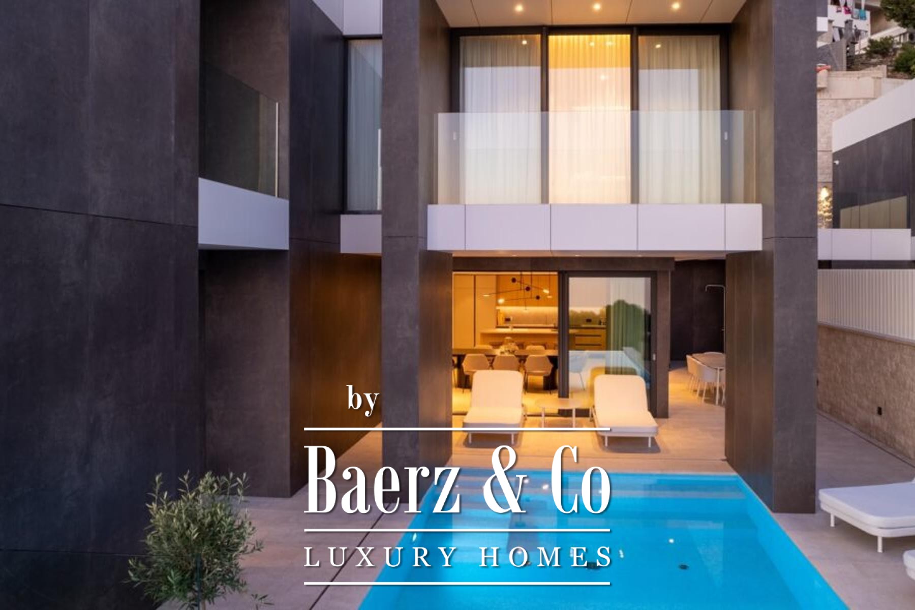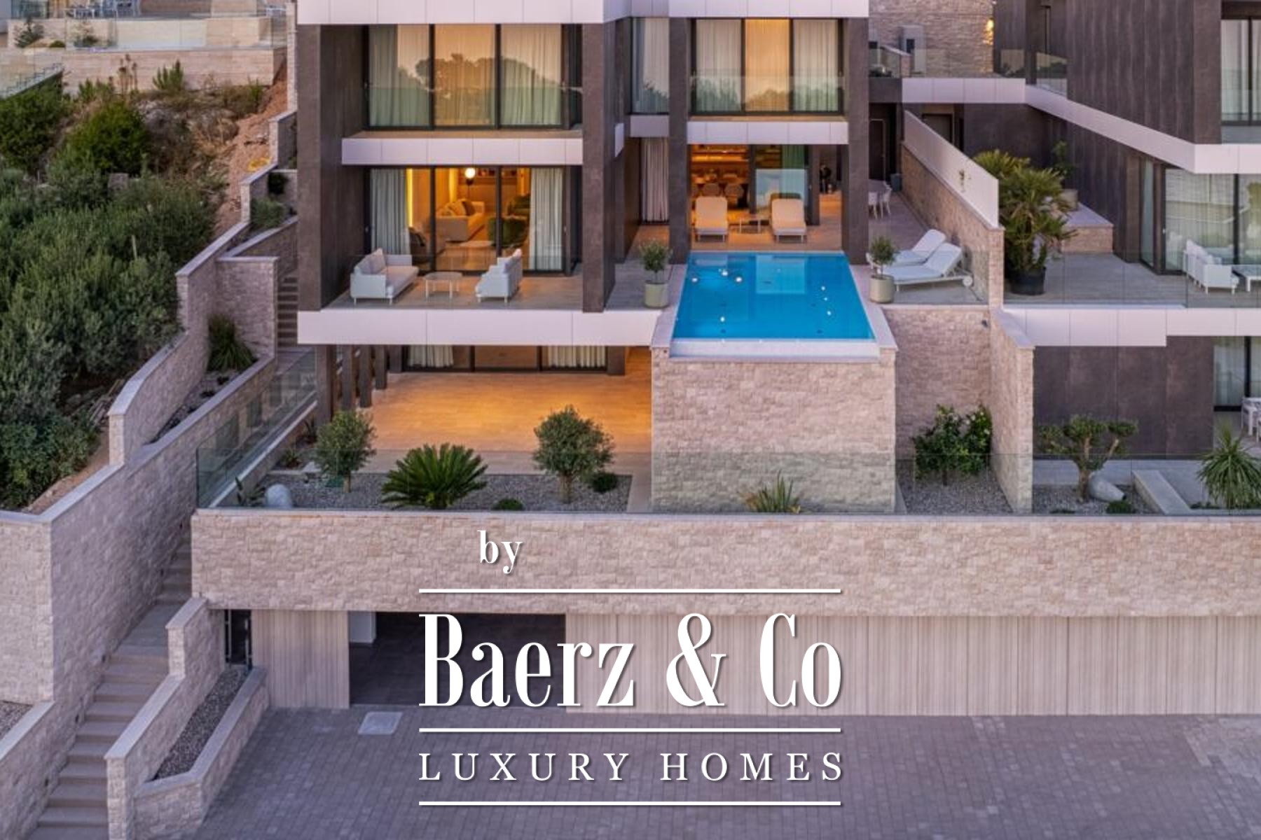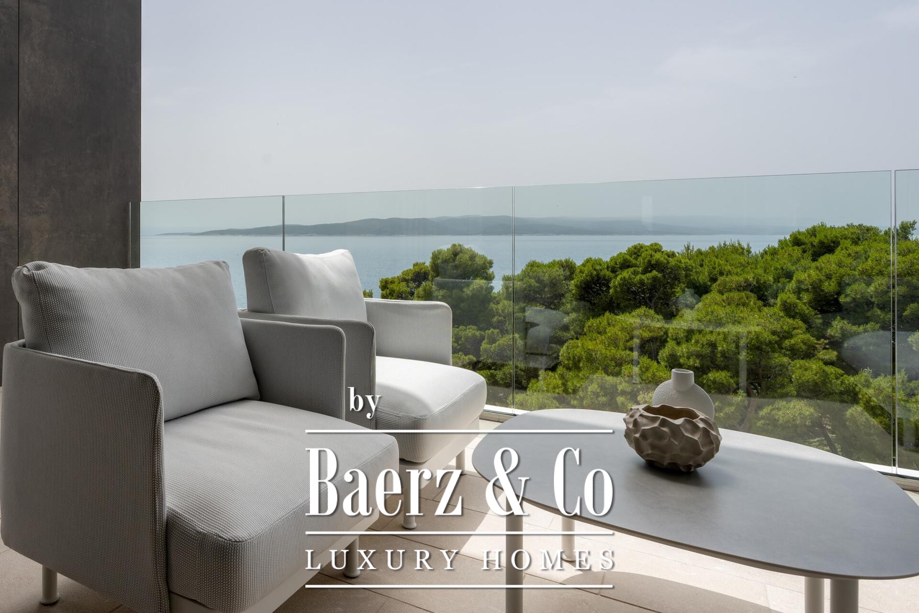 Step into a world of unparalleled luxury and exclusivity with this extraordinary villa nestled in the idyllic area of Rogač, Baška Voda, one of the most prestigious jewels of the Adriatic coast. This magnificent property, whose construction has been completed, promises an unmatched blend of modern design, supreme comfort, and spectacular panoramic views of the crystal-clear Adriatic Sea. Located an impressive mere 70 meters from the coastline, the villa offers a unique opportunity for living right at the sea's edge, while simultaneously ensuring complete peace and privacy. This prime location not only allows for easy access to pristine beaches and azure waters but also provides immediate proximity to the vibrant center of Baška Voda, renowned for its charming restaurants, cafes, and beautiful promenade. Every detail of this villa has been meticulously planned to provide an unparalleled experience of luxurious vacationing or permanent residence, creating an oasis of tranquility and beauty amidst the Mediterranean landscape.The architectural design of this villa is a masterpiece of modern aesthetics, seamlessly integrated into its natural surroundings. With a total living area of 360 m2, spread across multiple levels, and an expansive land plot of 1200 m2, this villa offers ample space for comfortable living and entertaining. The property's orientation to all four cardinal points - North, East, South, and West - ensures maximum sunlight throughout the day and provides stunning vistas from every room. Large glass surfaces and cleverly positioned windows allow an abundance of natural light to flood the interiors, creating an airy and bright ambiance. The multi-story concept enables a clear division of space into living, sleeping, and relaxation zones, ensuring optimal functionality and privacy for all occupants. The villa's design emphasizes energy efficiency, ensuring not only ecological awareness but also significant savings in maintenance costs, which is an additional benefit of this contemporary property.The interior of the villa exudes sophistication and functionality, meticulously planned down to the smallest detail to meet even the most demanding needs. The villa features four spacious rooms, each designed as a private sanctuary, and an impressive six bathrooms, ensuring maximum comfort and privacy for residents and their guests. Each bathroom is equipped with high-quality sanitary ware and modern fixtures, providing the feeling of a spa oasis within one's own home. The main bedrooms offer direct access to private balconies or loggias, from which unforgettable sea views unfold, ideal for morning coffee or evening relaxation while watching the sunset. The living areas are spacious and open, perfect for socializing and family gatherings, with direct access to outdoor terraces that extend the living space outdoors. The entire interior is equipped with state-of-the-art 'smart home' technology, allowing complete control over lighting, temperature, security systems, and multimedia via smart devices, achieving an unprecedented level of comfort and security.The outdoor spaces of this villa represent an extension of the luxurious lifestyle, offering diverse zones for relaxation and entertainment.