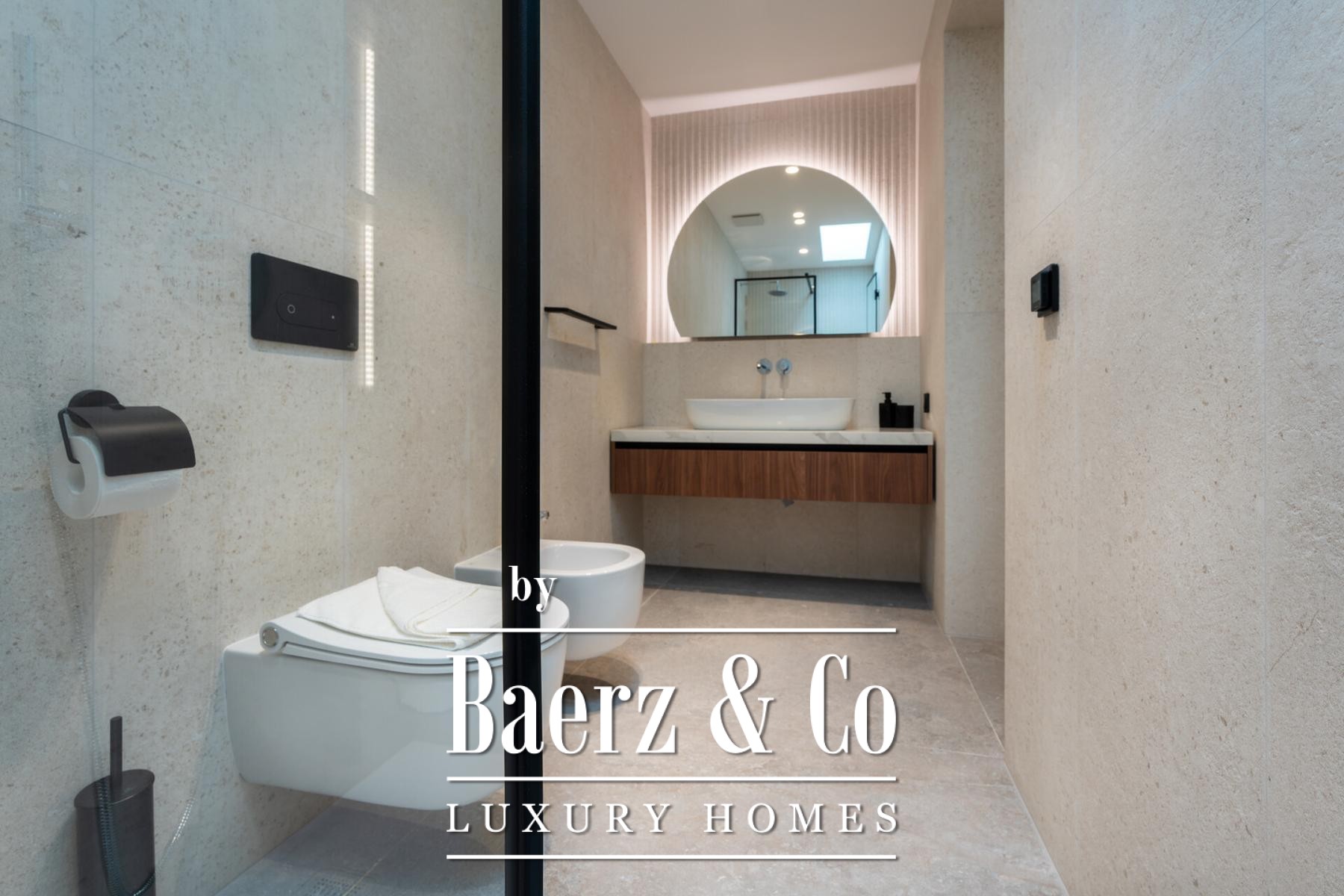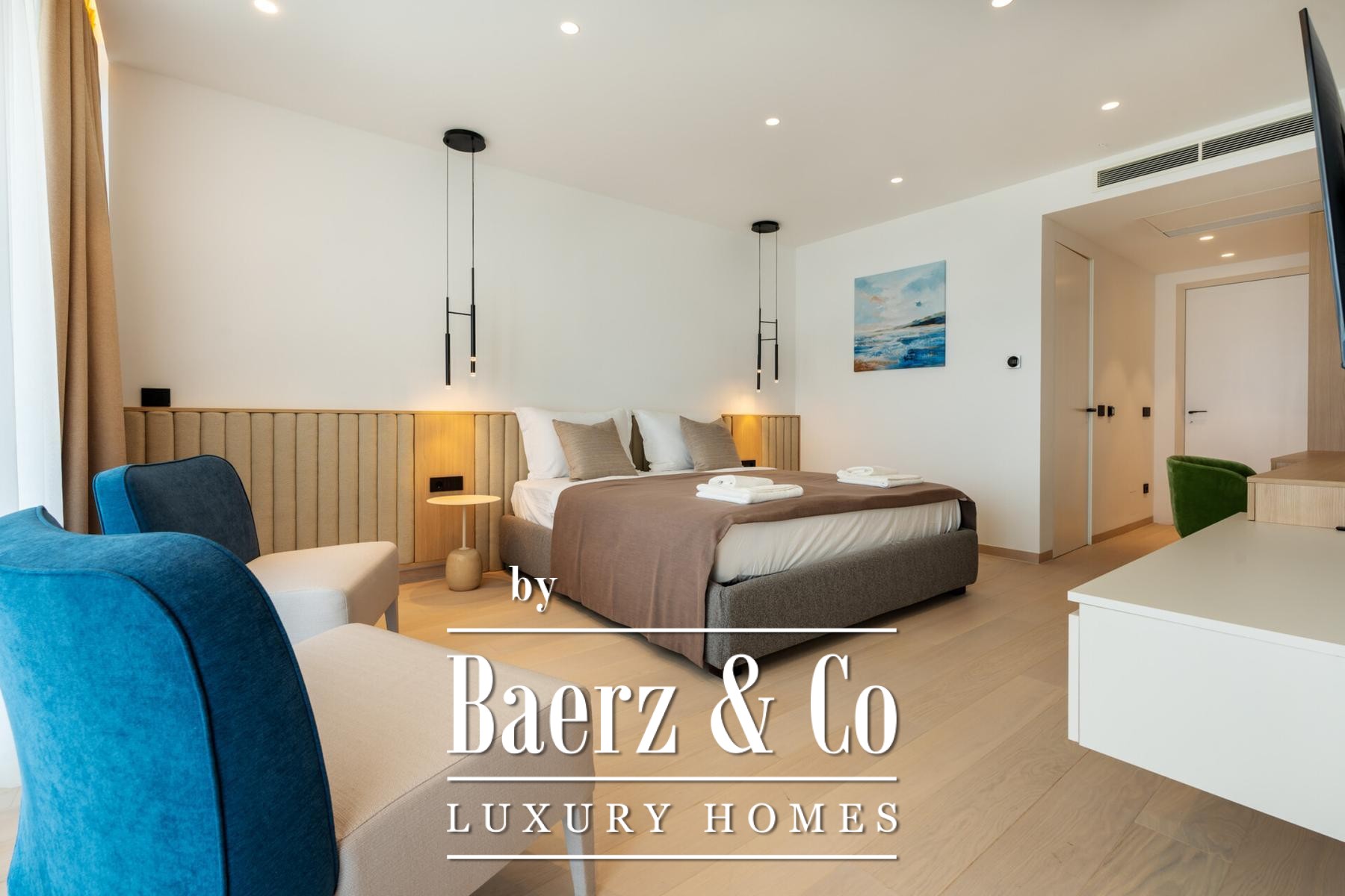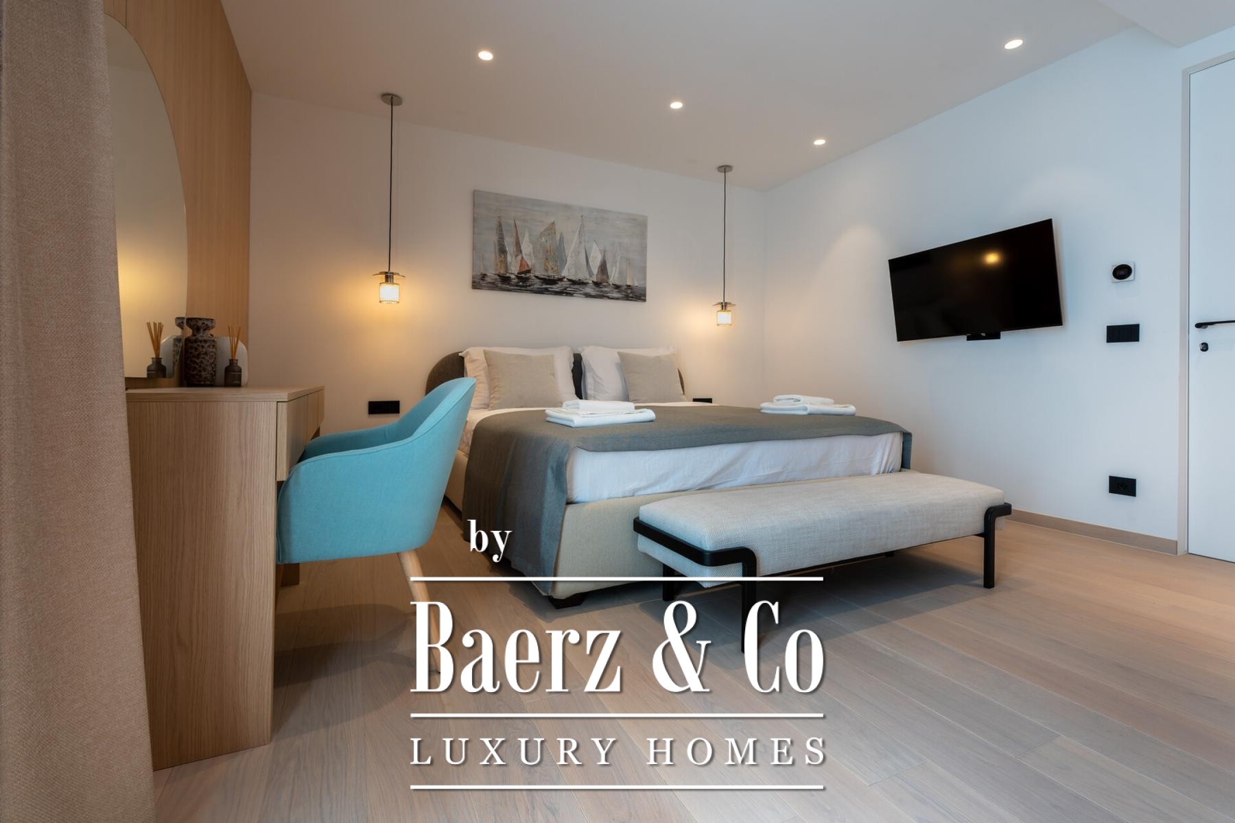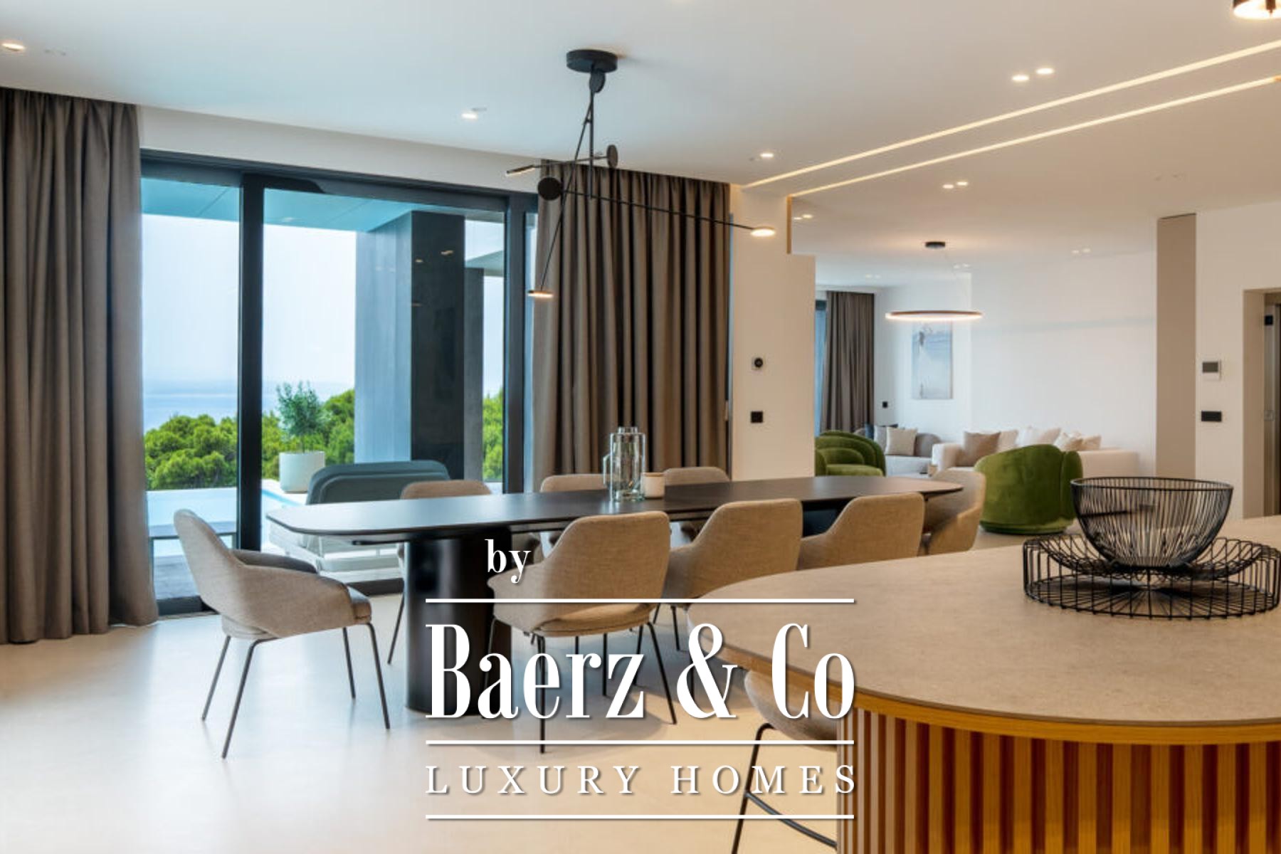 Step into a world of unparalleled luxury and exclusivity with this extraordinary villa nestled in the idyllic area of Rogač, Baška Voda, one of the most prestigious jewels of the Adriatic coast. This magnificent property, whose construction has been completed, promises an unmatched blend of modern design, supreme comfort, and spectacular panoramic views of the crystal-clear Adriatic Sea. Located an impressive mere 70 meters from the coastline, the villa offers a unique opportunity for living right at the sea's edge, while simultaneously ensuring complete peace and privacy. This prime location not only allows for easy access to pristine beaches and azure waters but also provides immediate proximity to the vibrant center of Baška Voda, renowned for its charming restaurants, cafes, and beautiful promenade. Every detail of this villa has been meticulously planned to provide an unparalleled experience of luxurious vacationing or permanent residence, creating an oasis of tranquility and beauty amidst the Mediterranean landscape.The architectural design of this villa is a masterpiece of modern aesthetics, seamlessly integrated into its natural surroundings. With a total living area of 360 m2, spread across multiple levels, and an expansive land plot of 1200 m2, this villa offers ample space for comfortable living and entertaining. The property's orientation to all four cardinal points - North, East, South, and West - ensures maximum sunlight throughout the day and provides stunning vistas from every room. Large glass surfaces and cleverly positioned windows allow an abundance of natural light to flood the interiors, creating an airy and bright ambiance. The multi-story concept enables a clear division of space into living, sleeping, and relaxation zones, ensuring optimal functionality and privacy for all occupants. The villa's design emphasizes energy efficiency, ensuring not only ecological awareness but also significant savings in maintenance costs, which is an additional benefit of this contemporary property.The interior of the villa exudes sophistication and functionality, meticulously planned down to the smallest detail to meet even the most demanding needs. The villa features four spacious rooms, each designed as a private sanctuary, and an impressive six bathrooms, ensuring maximum comfort and privacy for residents and their guests. Each bathroom is equipped with high-quality sanitary ware and modern fixtures, providing the feeling of a spa oasis within one's own home. The main bedrooms offer direct access to private balconies or loggias, from which unforgettable sea views unfold, ideal for morning coffee or evening relaxation while watching the sunset. The living areas are spacious and open, perfect for socializing and family gatherings, with direct access to outdoor terraces that extend the living space outdoors. The entire interior is equipped with state-of-the-art 'smart home' technology, allowing complete control over lighting, temperature, security systems, and multimedia via smart devices, achieving an unprecedented level of comfort and security.The outdoor spaces of this villa represent an extension of the luxurious lifestyle, offering diverse zones for relaxation and entertainment.