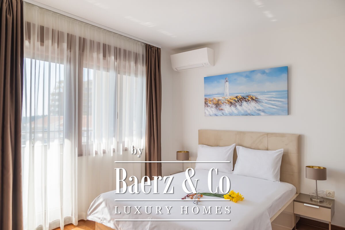 This apartment is completely furnished, with 3 bedrooms, 2 bathrooms, heating floor in the living room and in the bathrooms, terrace and AC in every room. It is located on the groundfloor in the new building and has the view on the sea. In this building there are more fully furnished apartments with 2 and 3 bedrooms from 90 to 110 m2. The building is located 500 meters from the sea and the beautiful Bečići beach, which was awarded the Gran prix "Golden Palm" as the most beautiful beach in Europe.