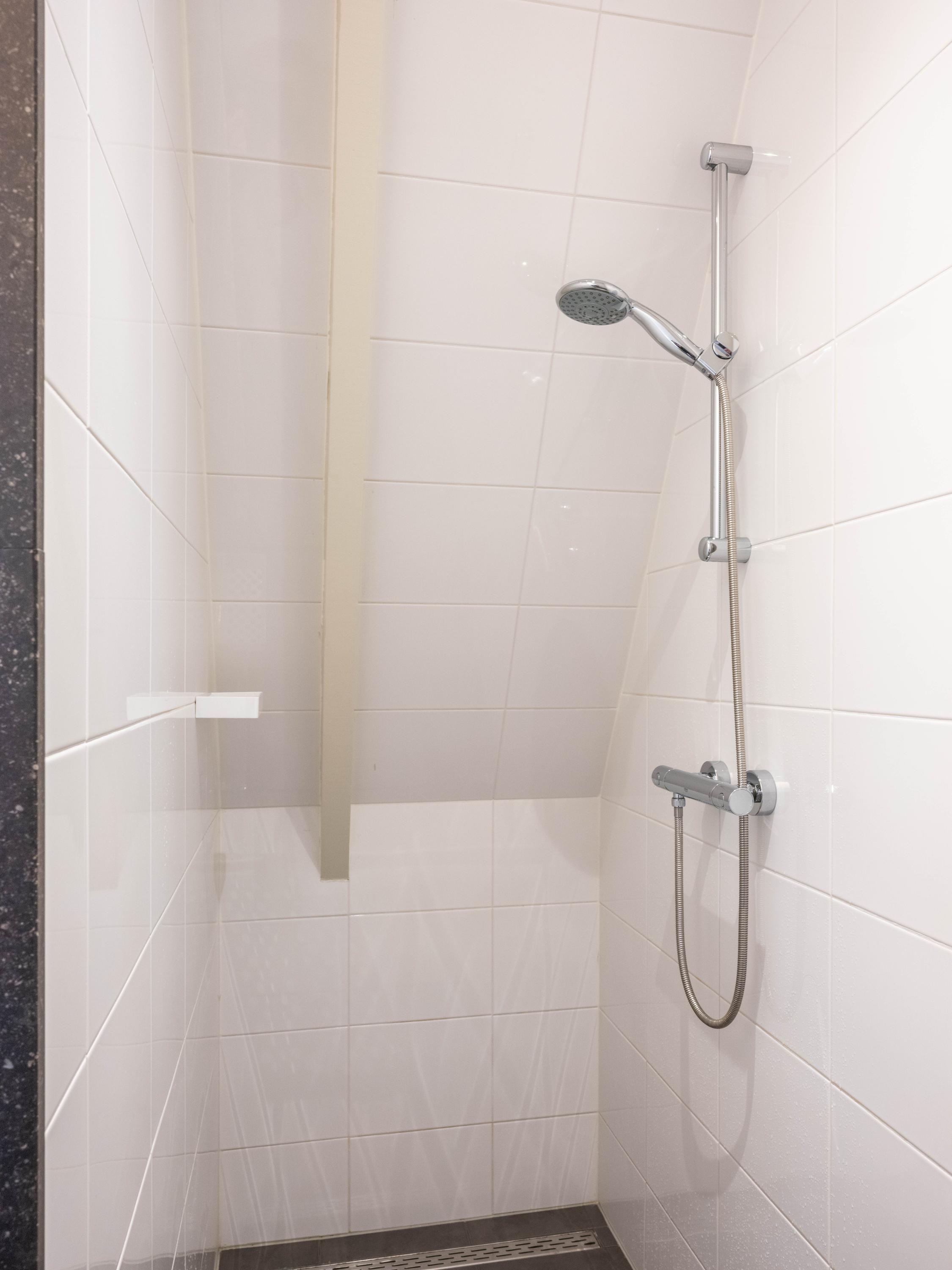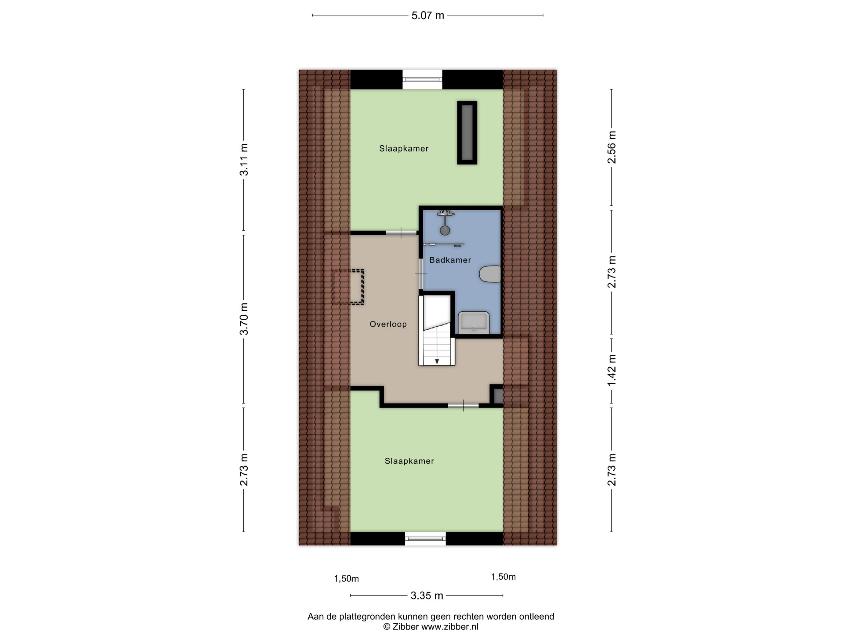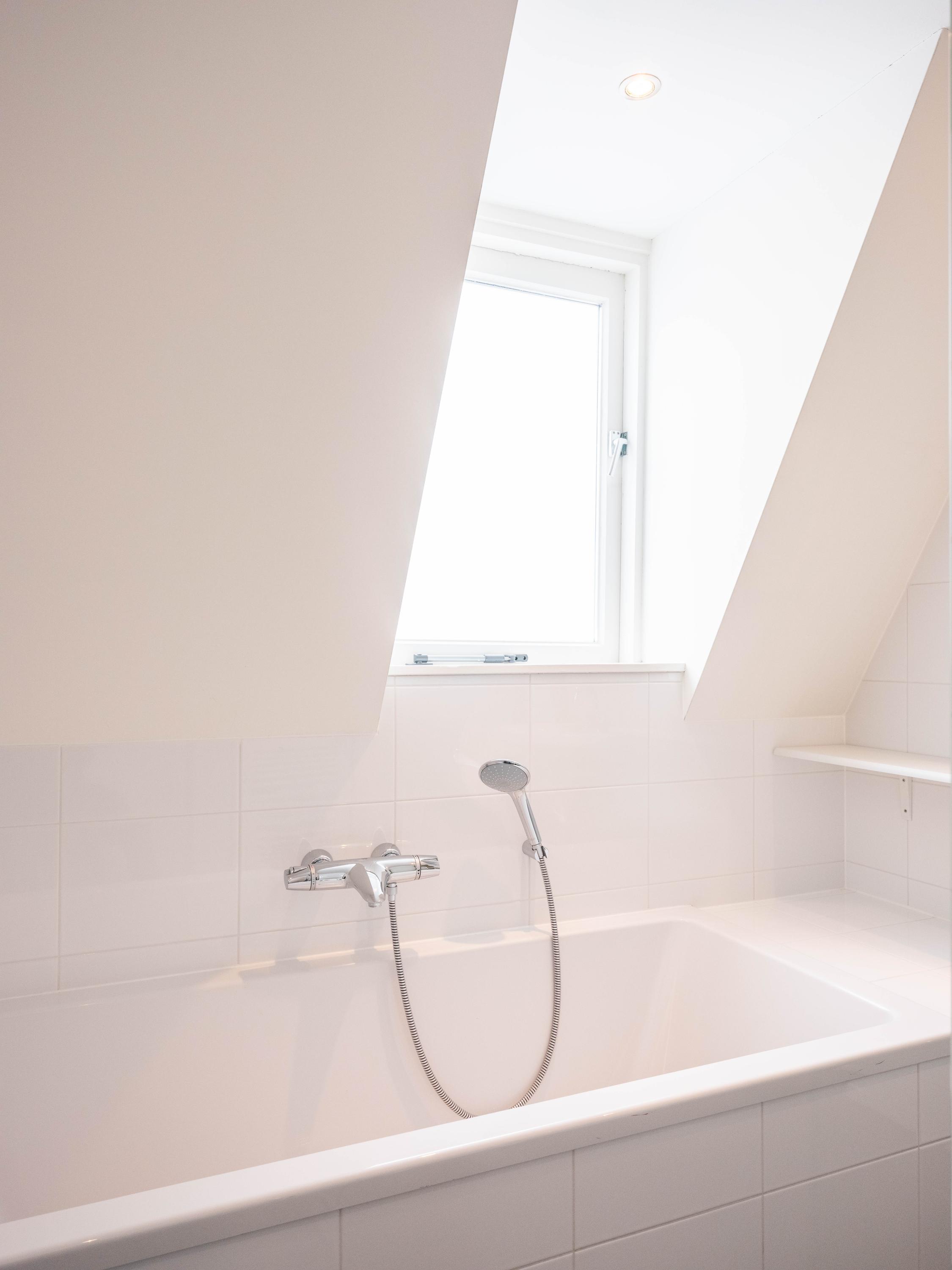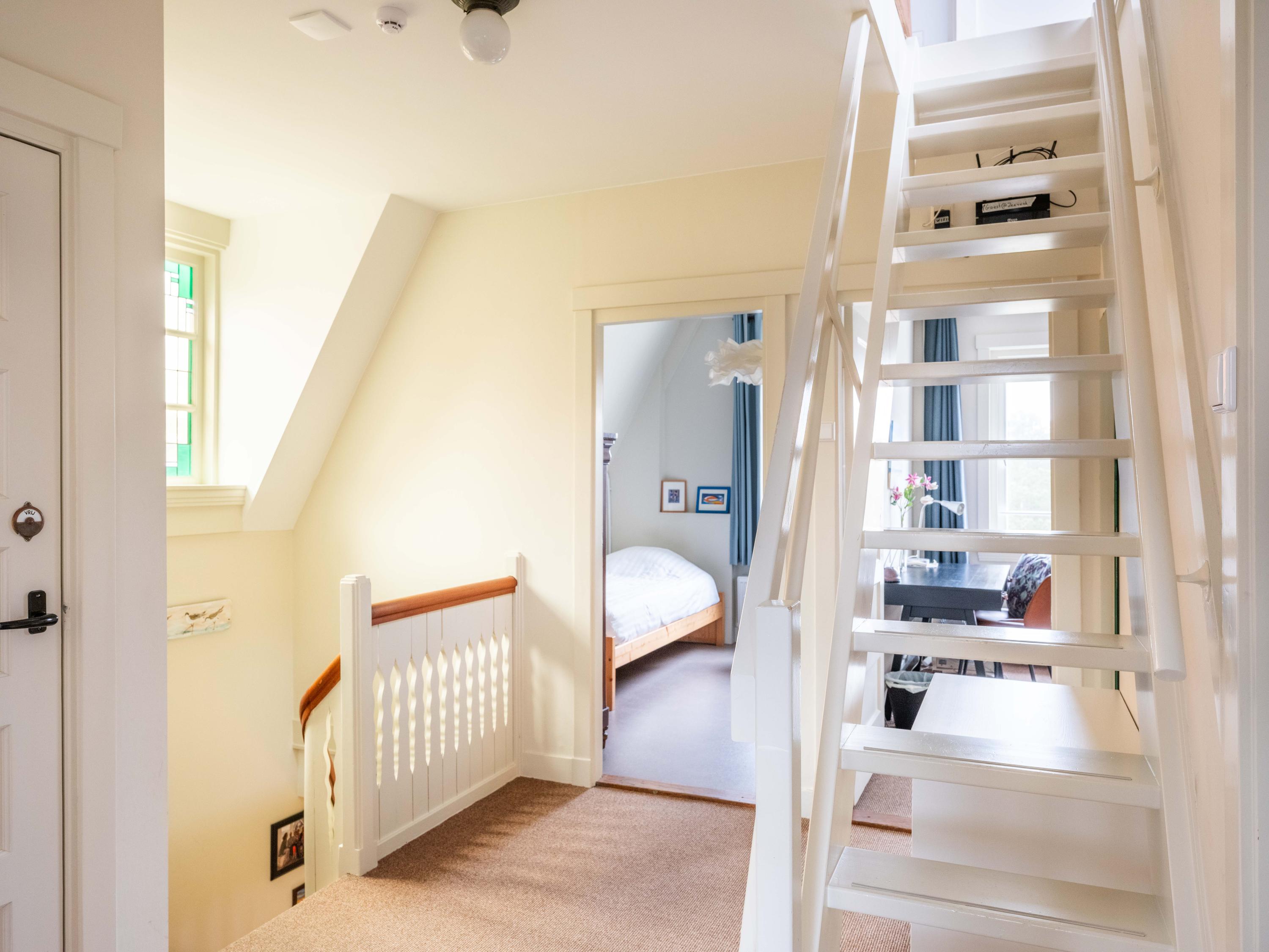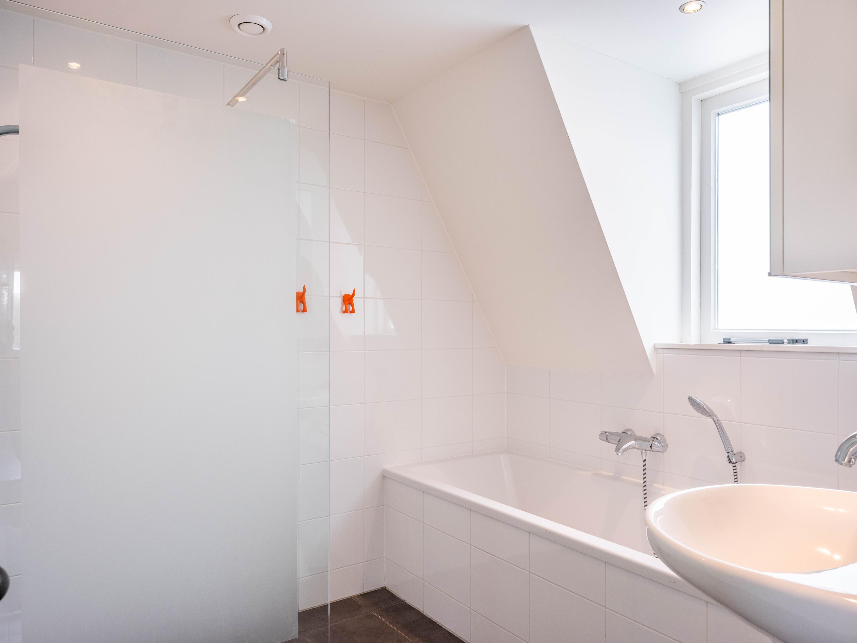 De tweede verdieping is via een vaste trap bereikbaar en beschikt, dankzij een groot raam, over een ruime, lichte overloop. Op deze verdieping bevinden zich nog twee slaapkamers en een derde badkamer met douche, toilet, en wastafel.