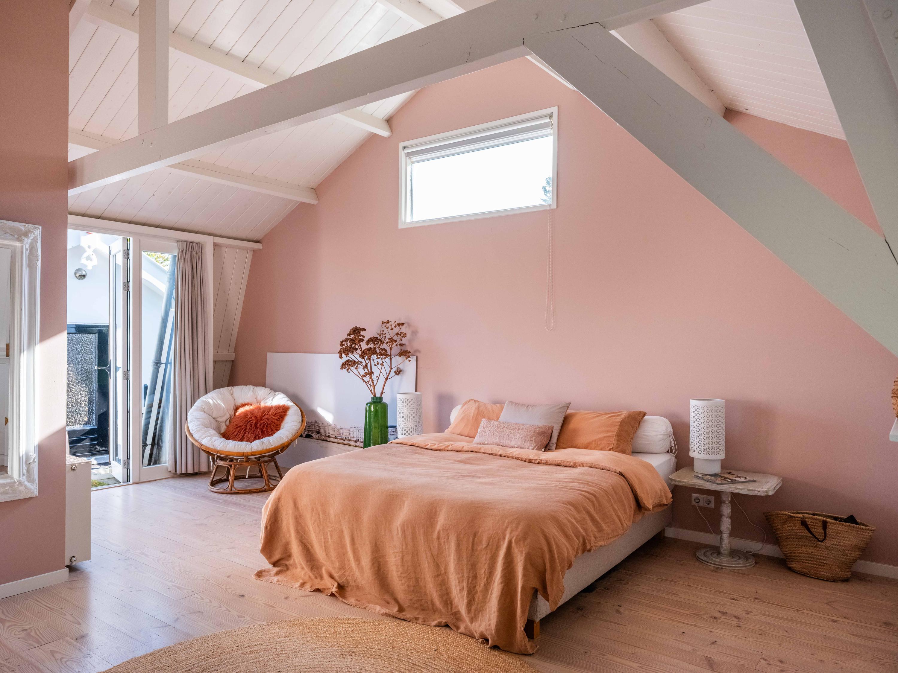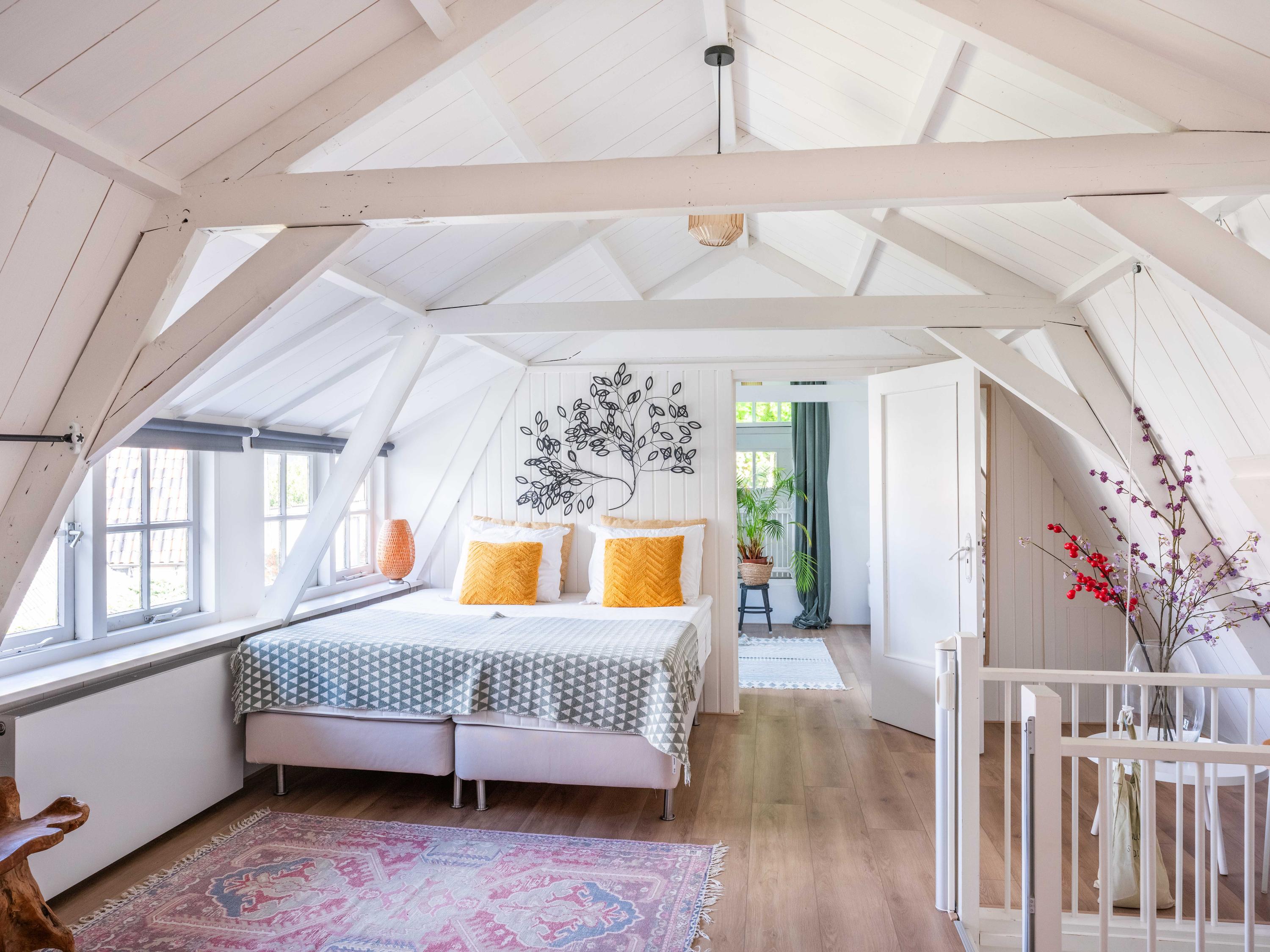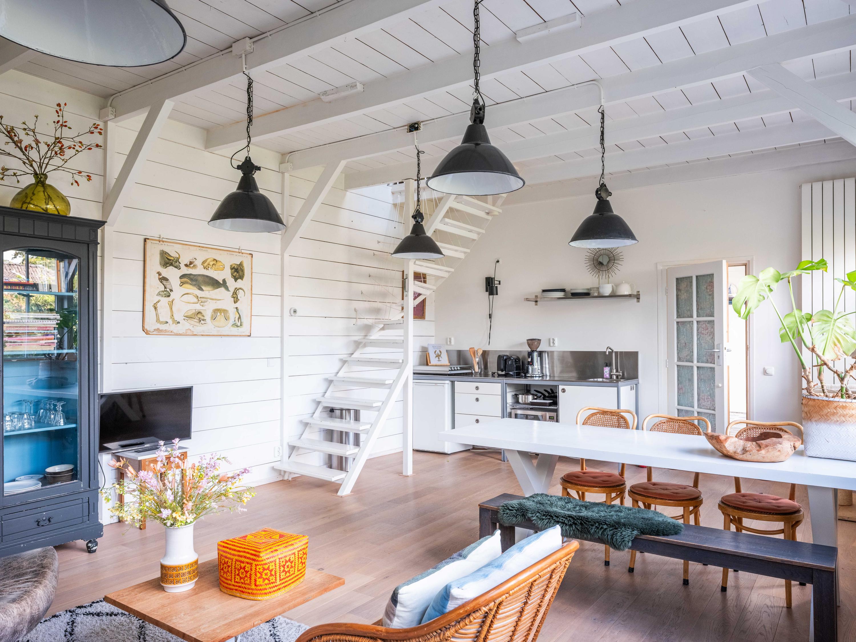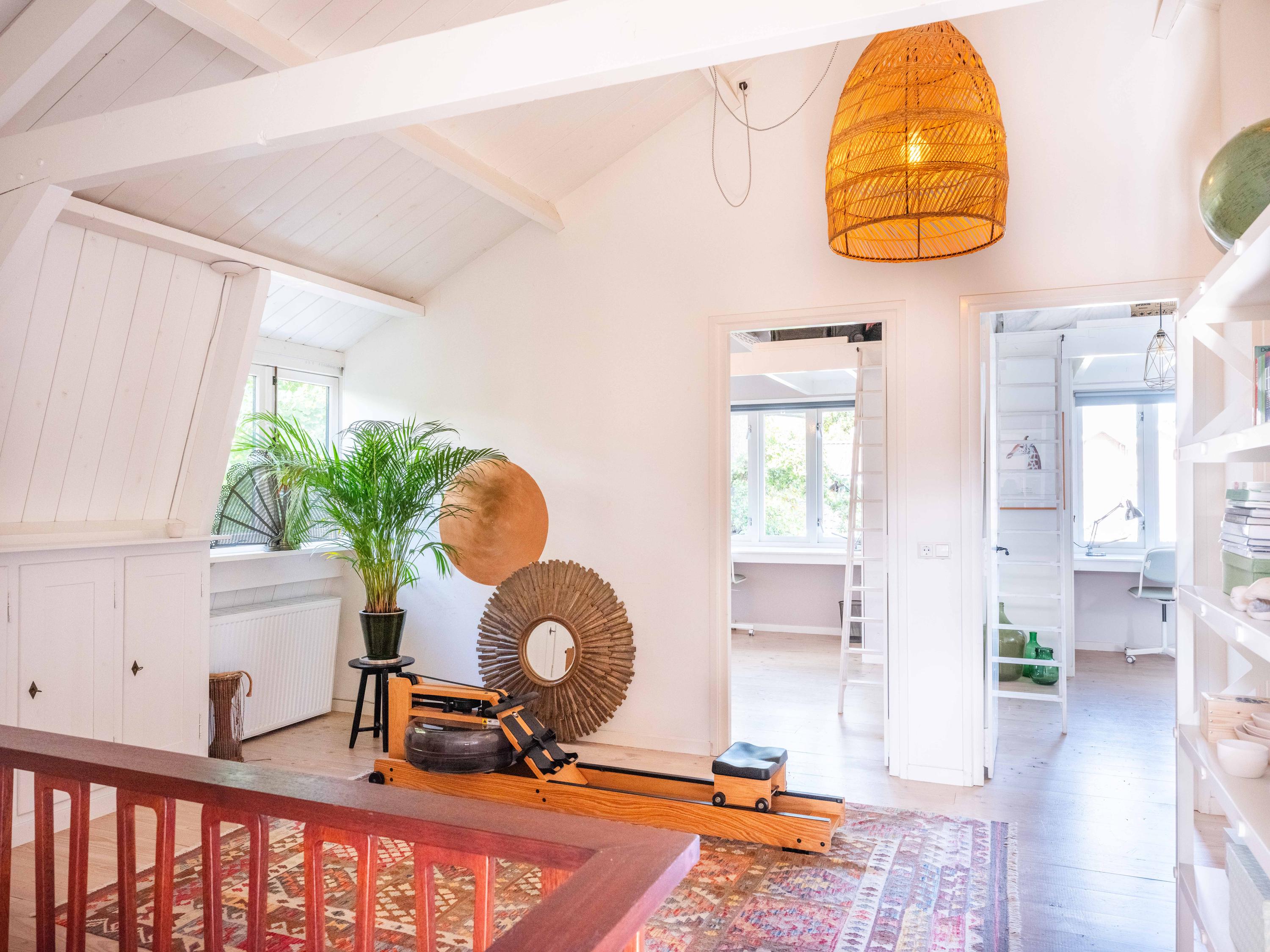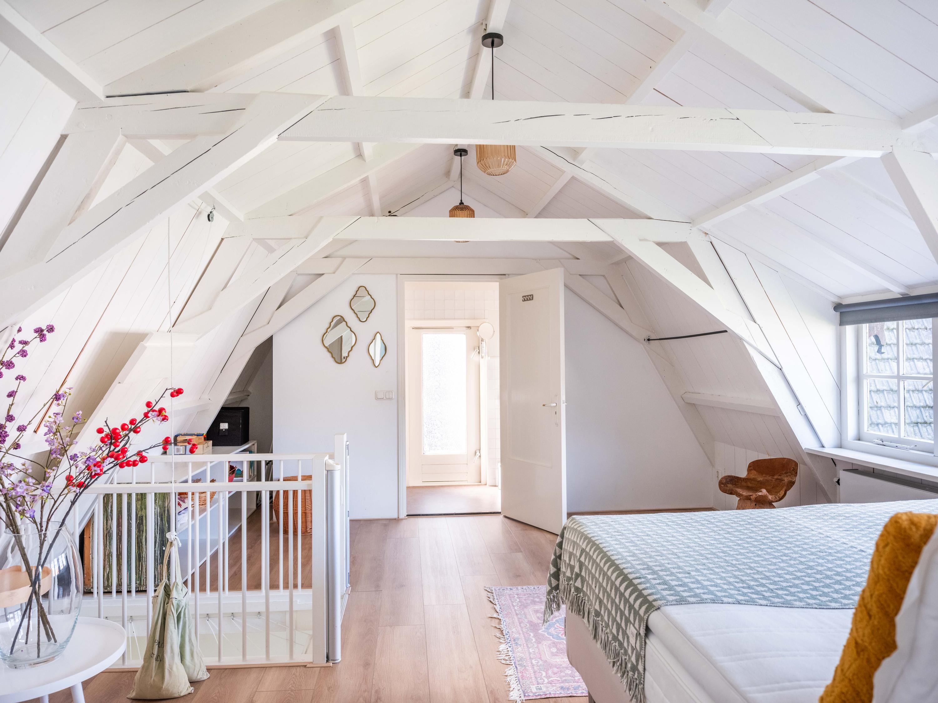 Aan de andere zijde van de woning bevindt zich het voormalige atelier, thans in gebruik als bijhuis met keukentje en slaapgelegenheid. Met ca. 80 m² vloeroppervlak en een eigen toegang is dit een heerlijk lichte ruimte, ideaal te gebruiken als atelier, kantoor aan huis, praktijkruimte of bijvoorbeeld als kangoeroewoning of verblijf voor een au-pair.