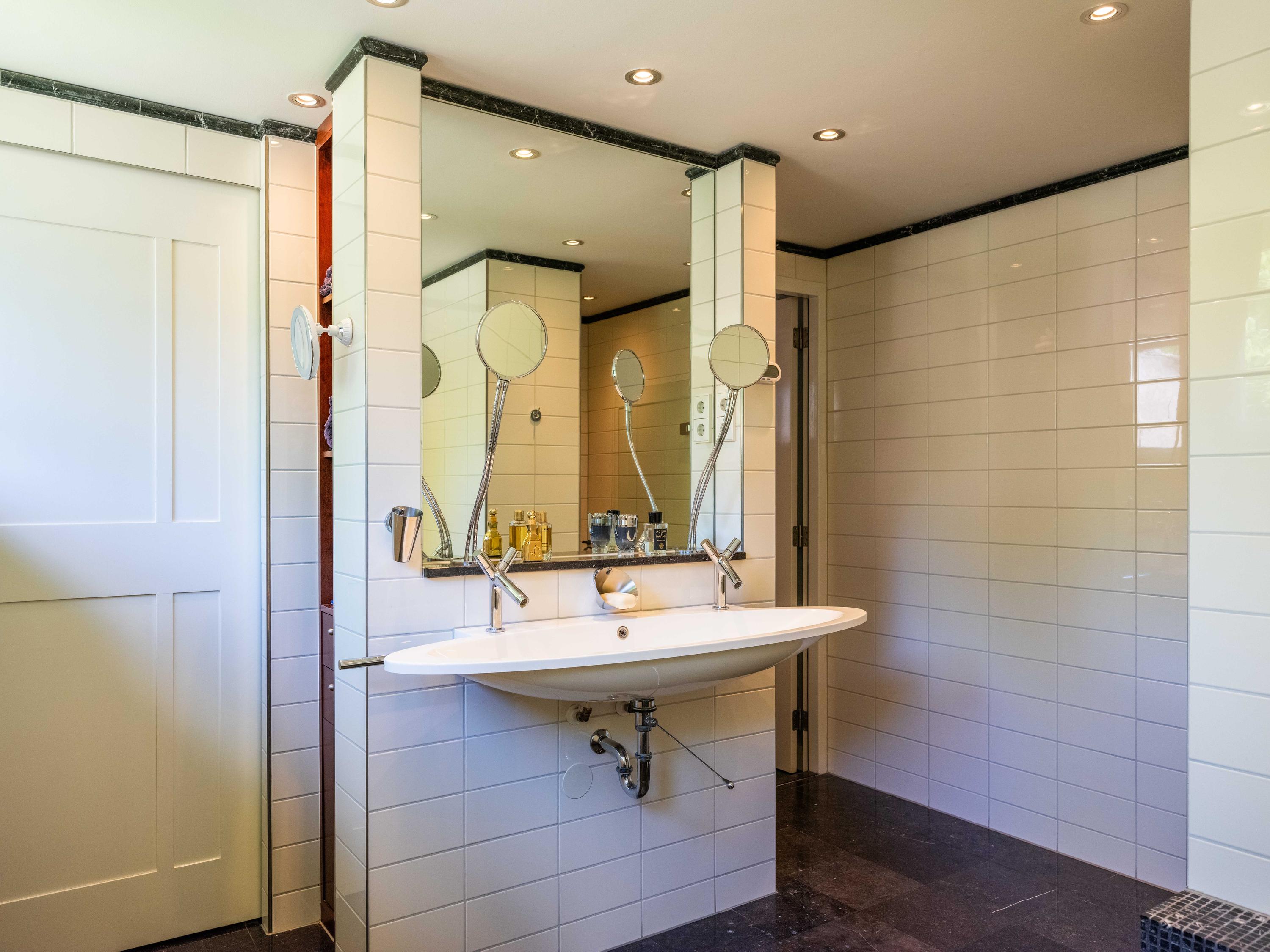 Tevens aan de overloop is nog de tweede kleinere badkamer met wastafel en douche te vinden.