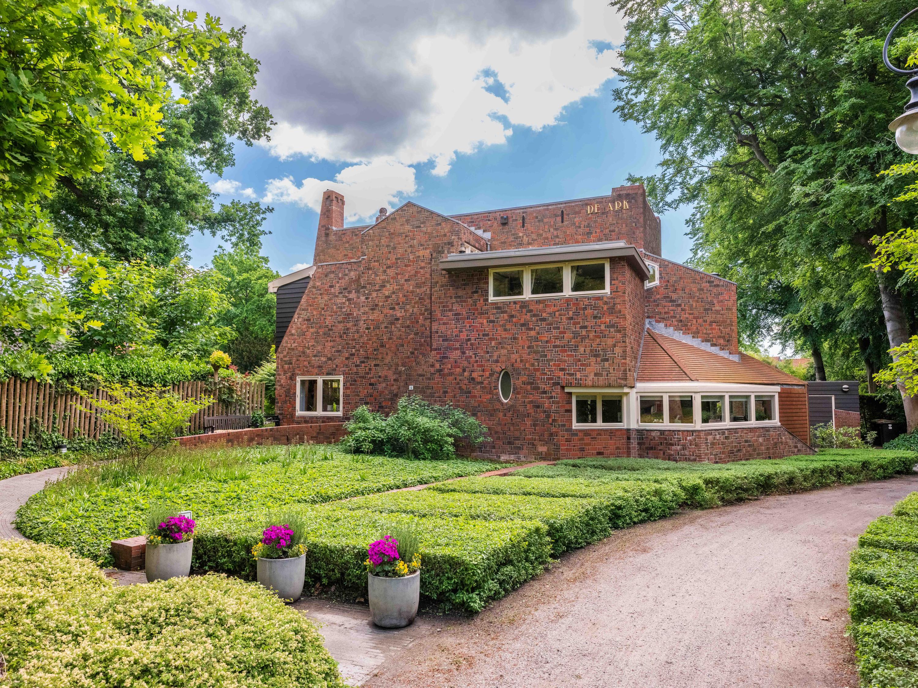 Bij het entree van het park vanaf de Studler van Surcklaan wordt u verwelkomt door het "toegangshuisje" nu in gebruik als kantoor en behorende bij de villa die wij hier te koop aanbieden! De villa en het bijhuisje zijn gelegen in een prachtige parkachtige tuin met aan de de achterzijde een geheel omsloten en privacyvolle achtertuin.