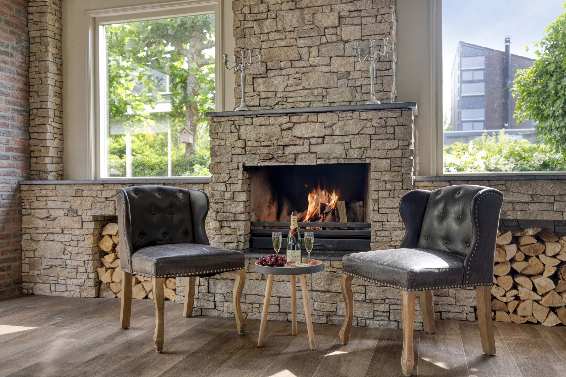 - Ruime living, keuken en eetkamer met sfeervolle veranda met openhaard.
