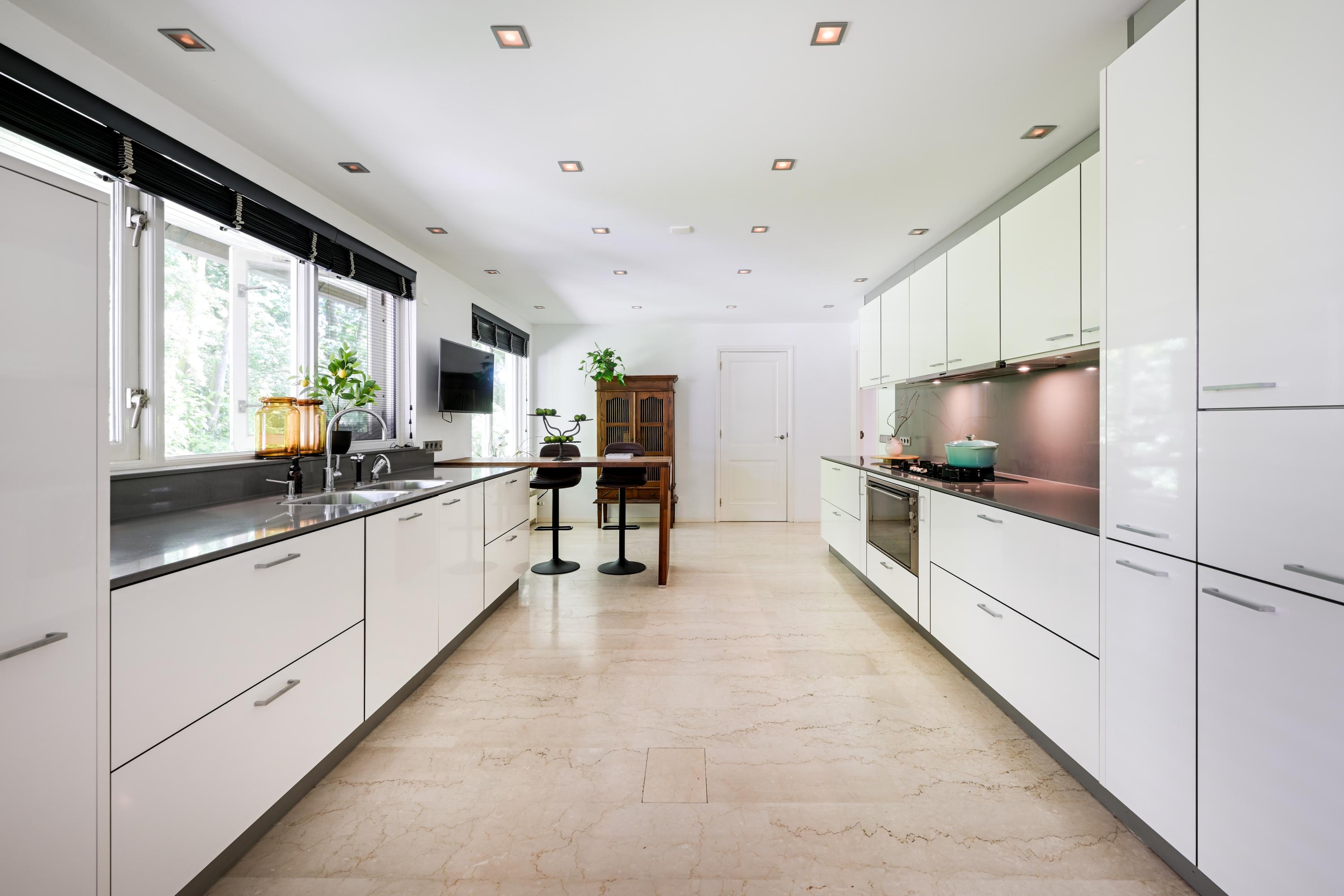 De begane grond is volledig voorzien van marmeren vloeren met vloerverwarming en extra radiatoren.