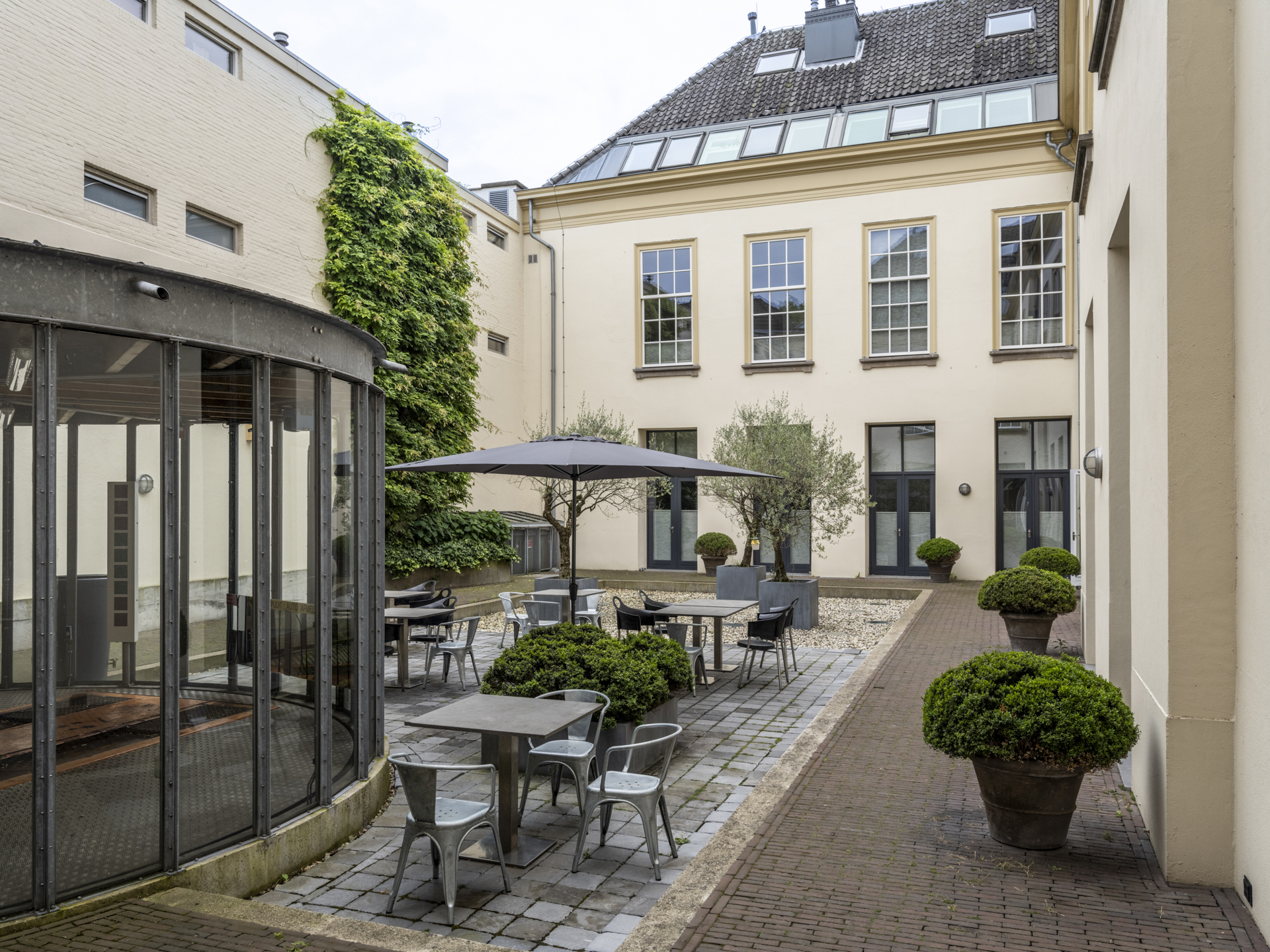 De sfeervolle gemeenschappelijke binnentuin is uitsluitend bestemd voor gebruik door bewoners en biedt een zeer rustig en uniek gelegen privé-terras midden in de bruisende binnenstad!