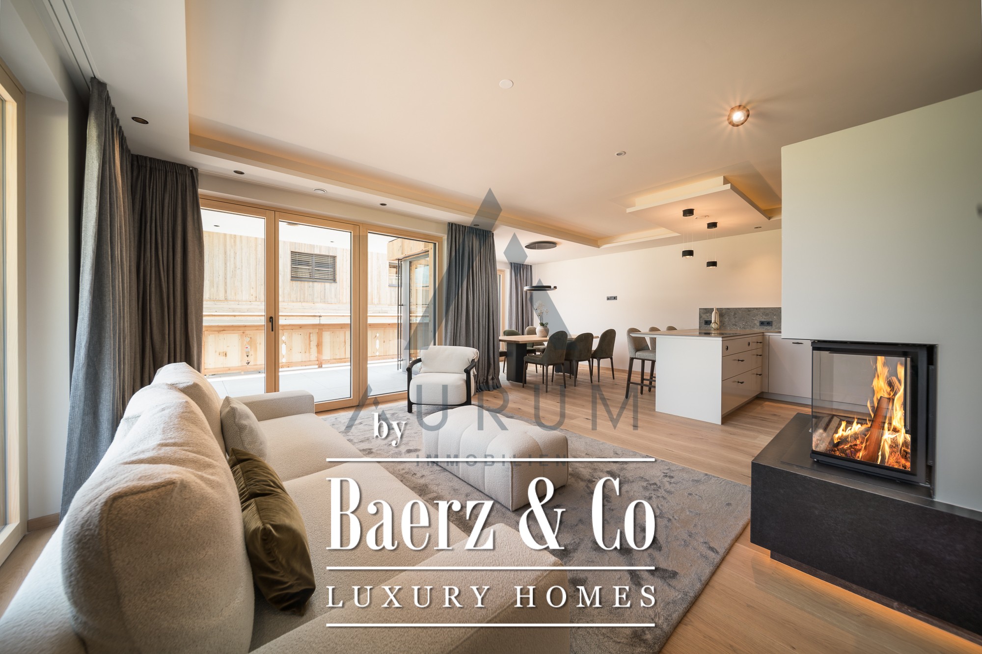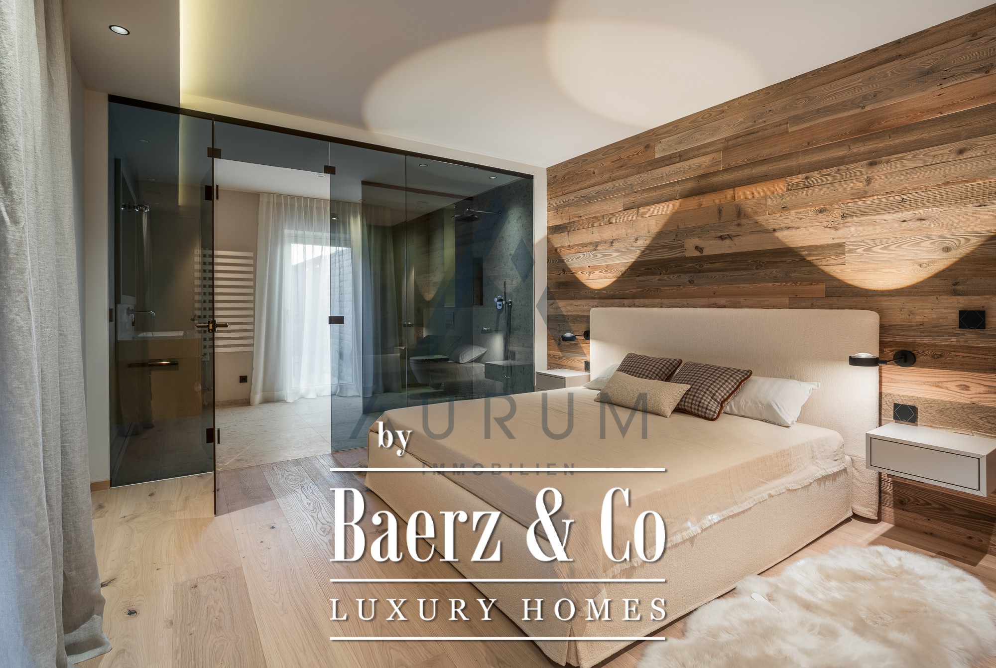 Binnen de 123 m² woonoppervlak harmoniëren twee slaapkamers en twee badkamers met royale leefruimtes en een sauna, waardoor een ruimtelijk gevoel ontstaat versterkt door natuurlijke materialen en zorgvuldige indeling. Vloerverwarming biedt het hele jaar door comfort; het Loxone BUS-systeem en elektrische zonwering zorgen voor hedendaagse efficiëntie. Een gastentoilet, stijlvolle lifttoegang en kelderberging dragen bij aan een vloeiende dagelijkse woonervaring.