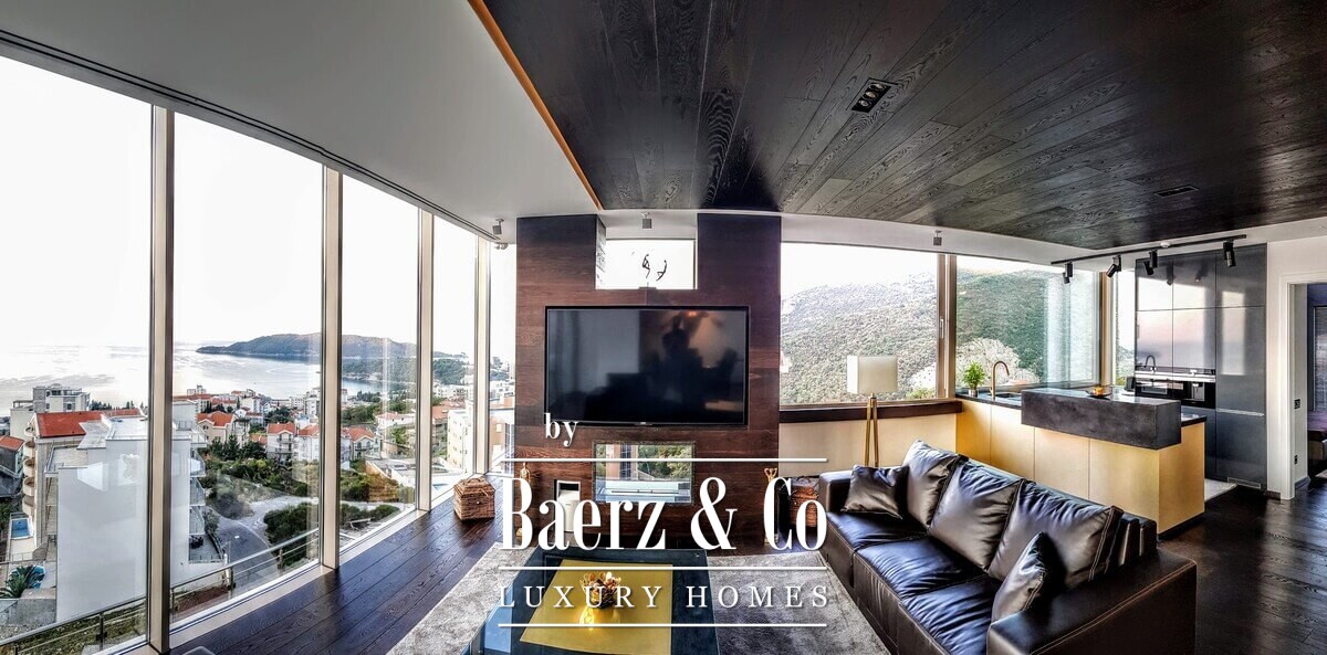 A true oasis above Adriatic coast with 360-degree panorama view.It is located in modern luxury complex with pool, sauna and gym.