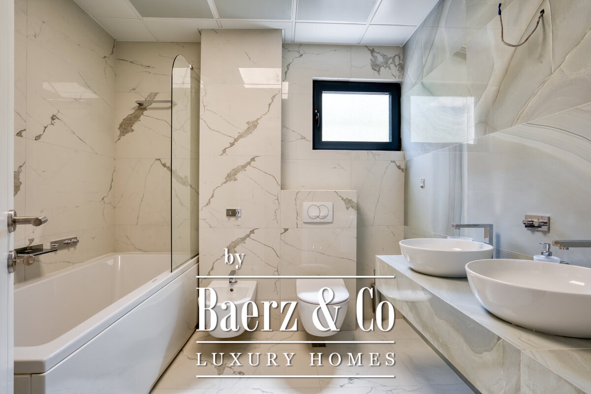 The complex has its own parking lot for all units. All buildings are built in accordance with high construction standards and the highest quality materials, which include first-class ceramics from the Italian manufacturer Florim, Villeroy Boch sanitary ware, Dornbracht and Hansgrohe faucets, parquet, aluminum exterior joinery, interior doors of top quality and design. The exterior facade is made of Maljat type stone, which is one of the best quality according to its characteristics, infinity/overflow type swimming pools, yards paved with natural stone.