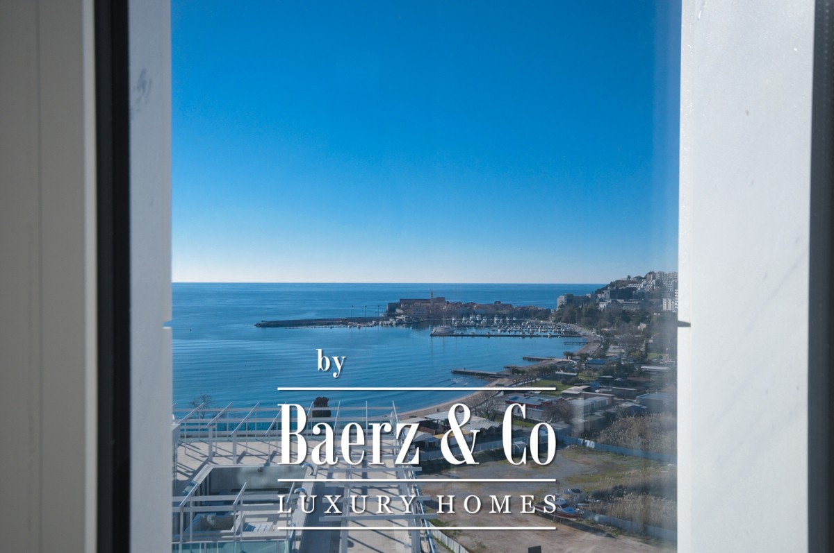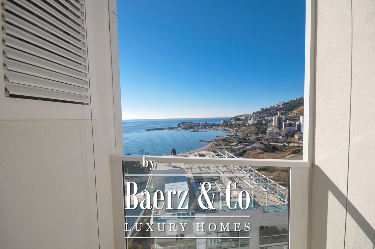 This premium spacious apartment is located on floor 13 of modern building,It has exceptional views towards Budva Old Town and the sea. Apartment is not furnished, it has 2 bedrooms, 2 bathrooms and access to terrace from both bedrooms.