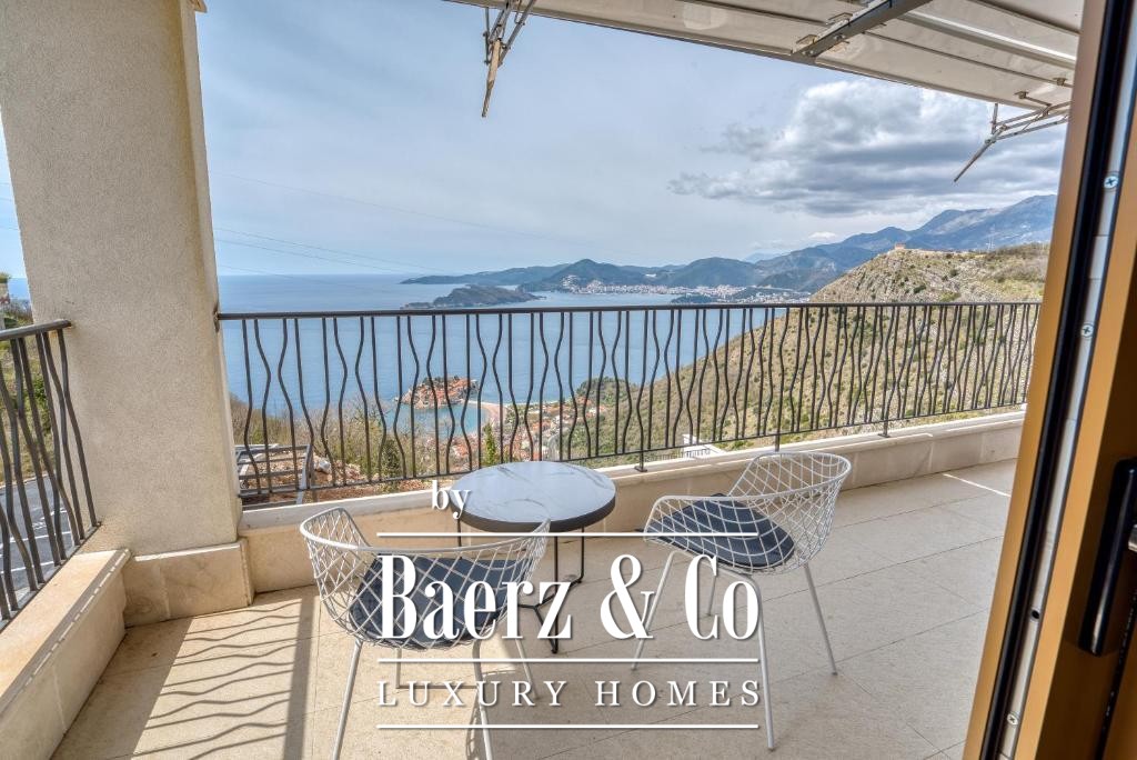 Het complex bestaat uit drie gebouwen en biedt de bewoners toegang tot een zwembad en een eigen parkeerplaats. Alles is verbonden via een geasfalteerde weg met de hoofdwegen van de regio. Het appartement beschikt over 112 m² woonruimte met twee slaapkamers en twee badkamers en bevindt zich op de tweede verdieping voor een verhoogd uitzicht. De terrassen zijn georiënteerd op zowel de zee als de omliggende bergen, waardoor elk moment wordt ondergedompeld in mediterraan licht. De indeling is doordacht: een hal leidt naar de woonkamer met geïntegreerde keuken en eetgedeelte; een harmonieus en functioneel geheel. Dit luxe appartement in Budva wordt volledig gemeubileerd en instapklaar aangeboden.