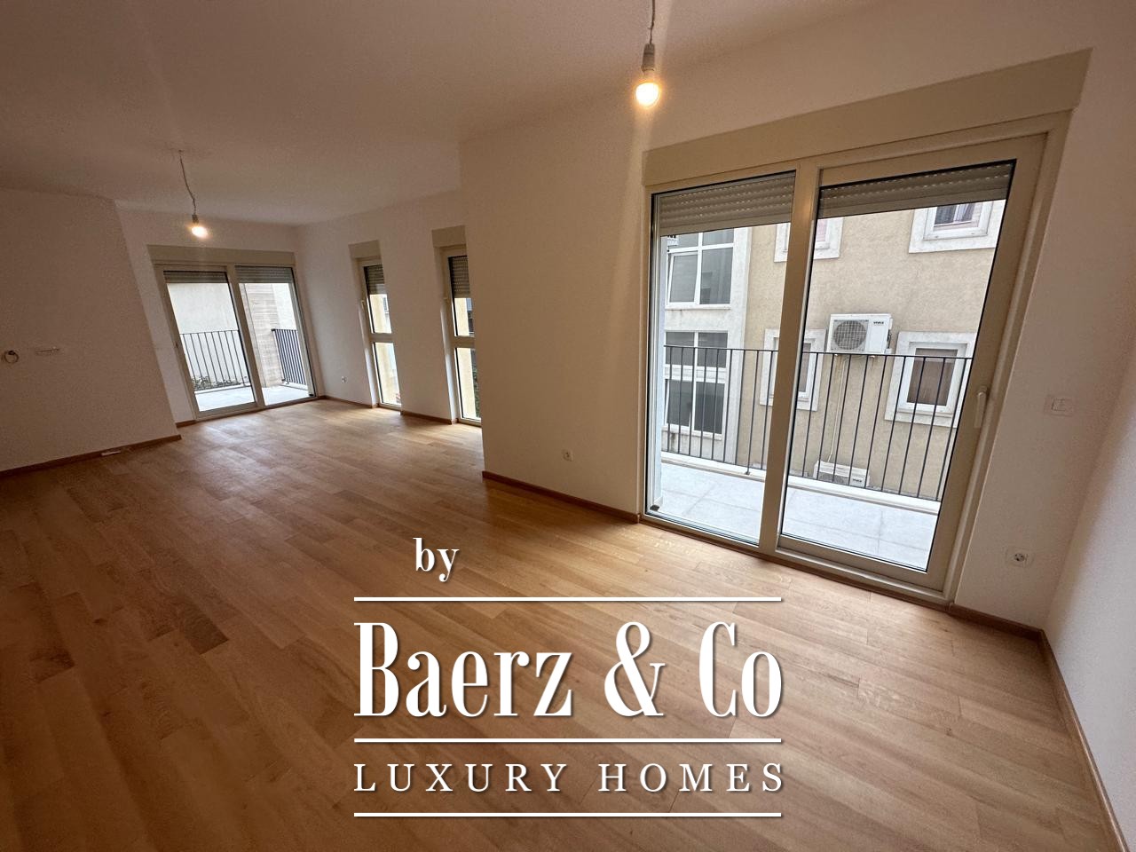 Appartement Budva Center plaatst u in het hart van de Montenegrijnse Adriatische kust, op slechts 150 meter van zee en strand. Deze residentie is gelegen in een eigentijds gebouw met zes verdiepingen, waarvan de oplevering eind 2026 wordt verwacht, en combineert stijl en locatie die geliefd zijn bij internationale kopers. De doordachte indeling van 87 m² omvat een hal, een open woonkamer met keuken en eetgedeelte, twee slaapkamers, een berging, een badkamer, een apart toilet en twee terrassen. Bij oplevering zijn de vloeren afgewerkt, voorzien van elegante tegels, een uitgeruste badkamer en airconditioning—voor direct wooncomfort.