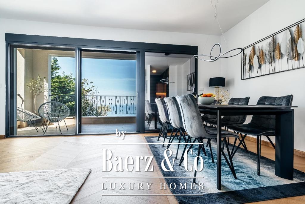 De doordachte indeling omvat een hal, woonkamer met open keuken en eetgedeelte, drie slaapkamers, twee badkamers en een terras gericht op panoramisch zee- en bergzicht. Elke ruimte is volledig gemeubileerd en direct instapklaar. Bewoners van het complex hebben toegang tot een gedeeld zwembad en een eigen restaurant, wat het gevoel van gemeenschap en comfort versterkt.