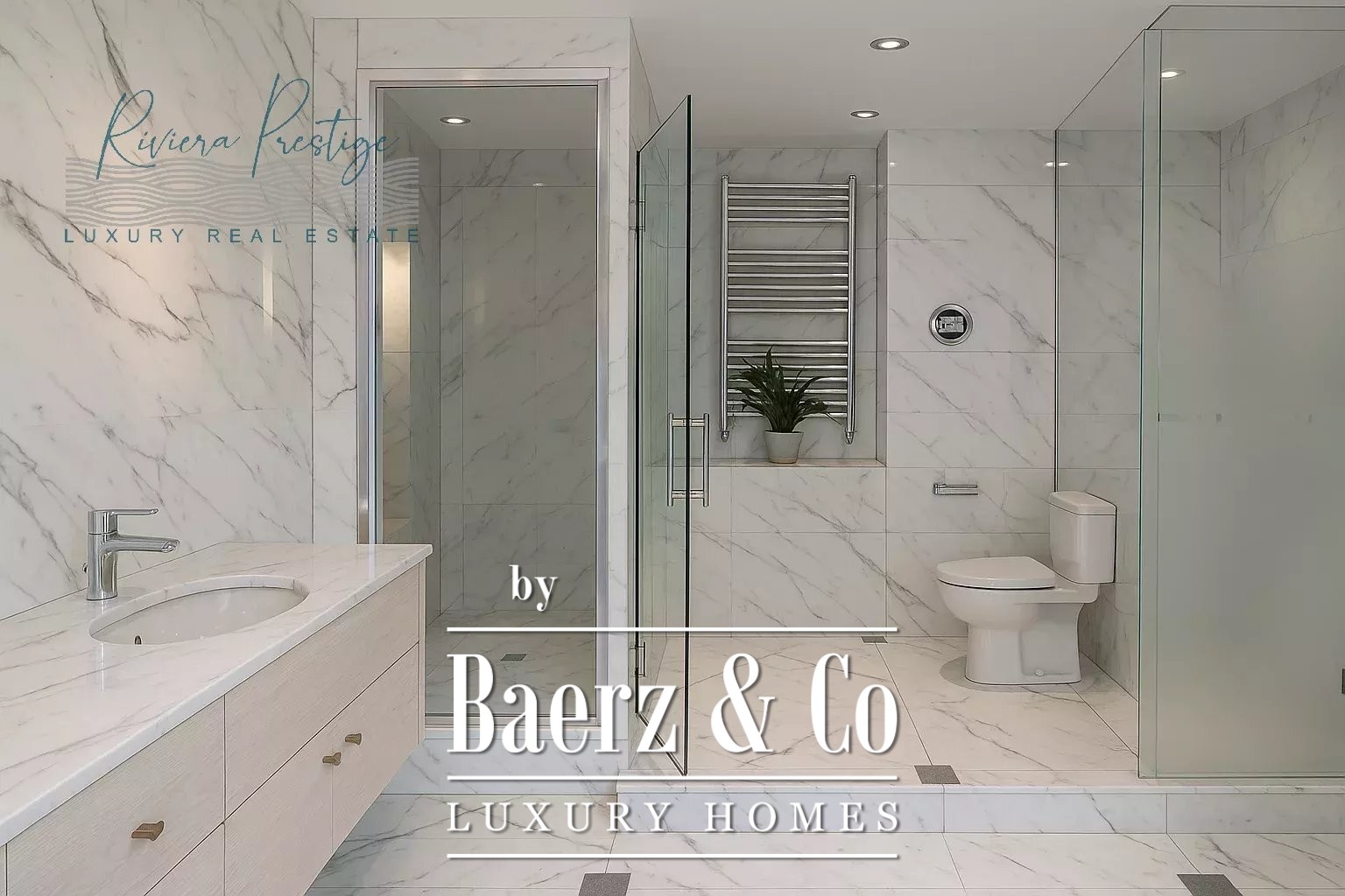 Achter het panoramische terras biedt de indeling een zorgvuldige balans tussen privacy en openheid. De hoofdsuite van 22 m² biedt een serene retraite met hammam-douche, apart toilet en kleedruimte. Twee extra slaapkamers, van respectievelijk 24 m² en 12 m², worden aangevuld door een badkamer, gastentoilet en een doordacht ingerichte keuken. Daarnaast is er een wasruimte met de mogelijkheid een extra doucheruimte toe te voegen, wat flexibiliteit geeft bij veranderende woonwensen.