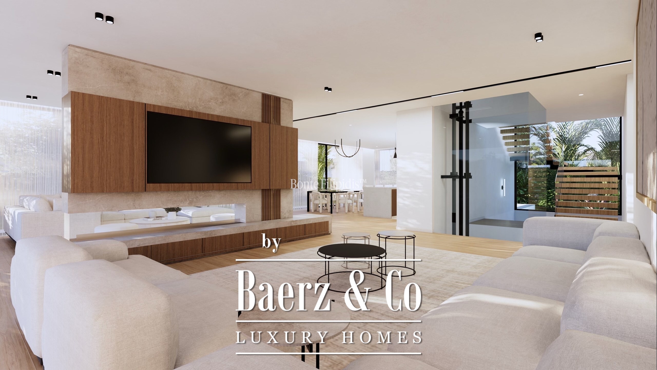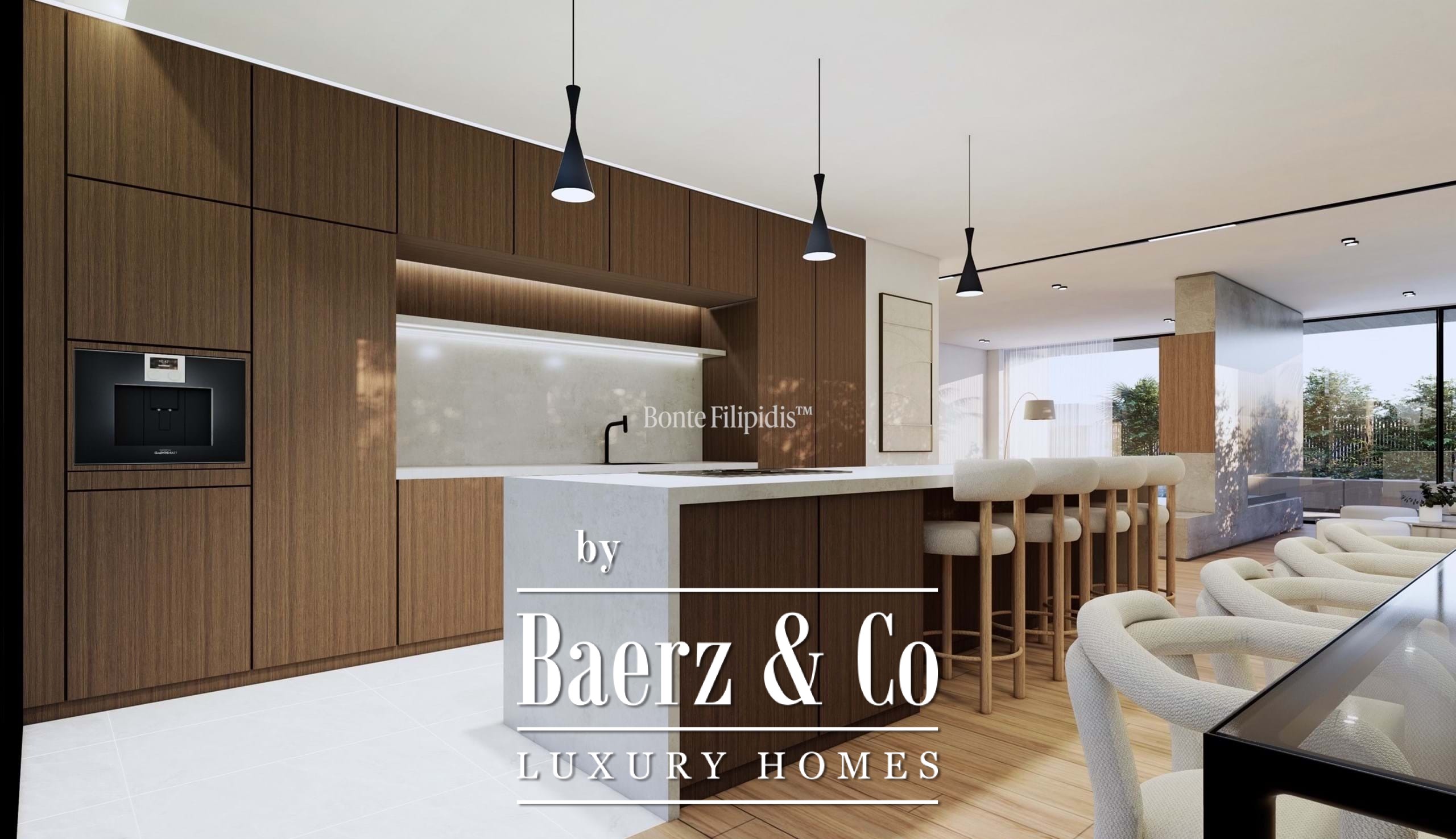 De villa is uitgerust met technologische voorzieningen zoals vloerverwarming, VRF/VRV-airconditioning, geïntegreerd Sonos-geluidssysteem, domoticasysteem, camerabewaking, oplaadpunt voor elektrische auto’s en een ethernetnetwerk. Havwoods eiken vloeren en een travertin gevel omlijsten de leefruimtes; de badkamers zijn afgewerkt met Laufen en Dornbracht.
