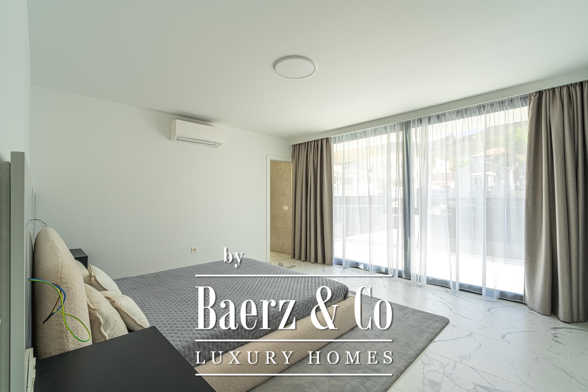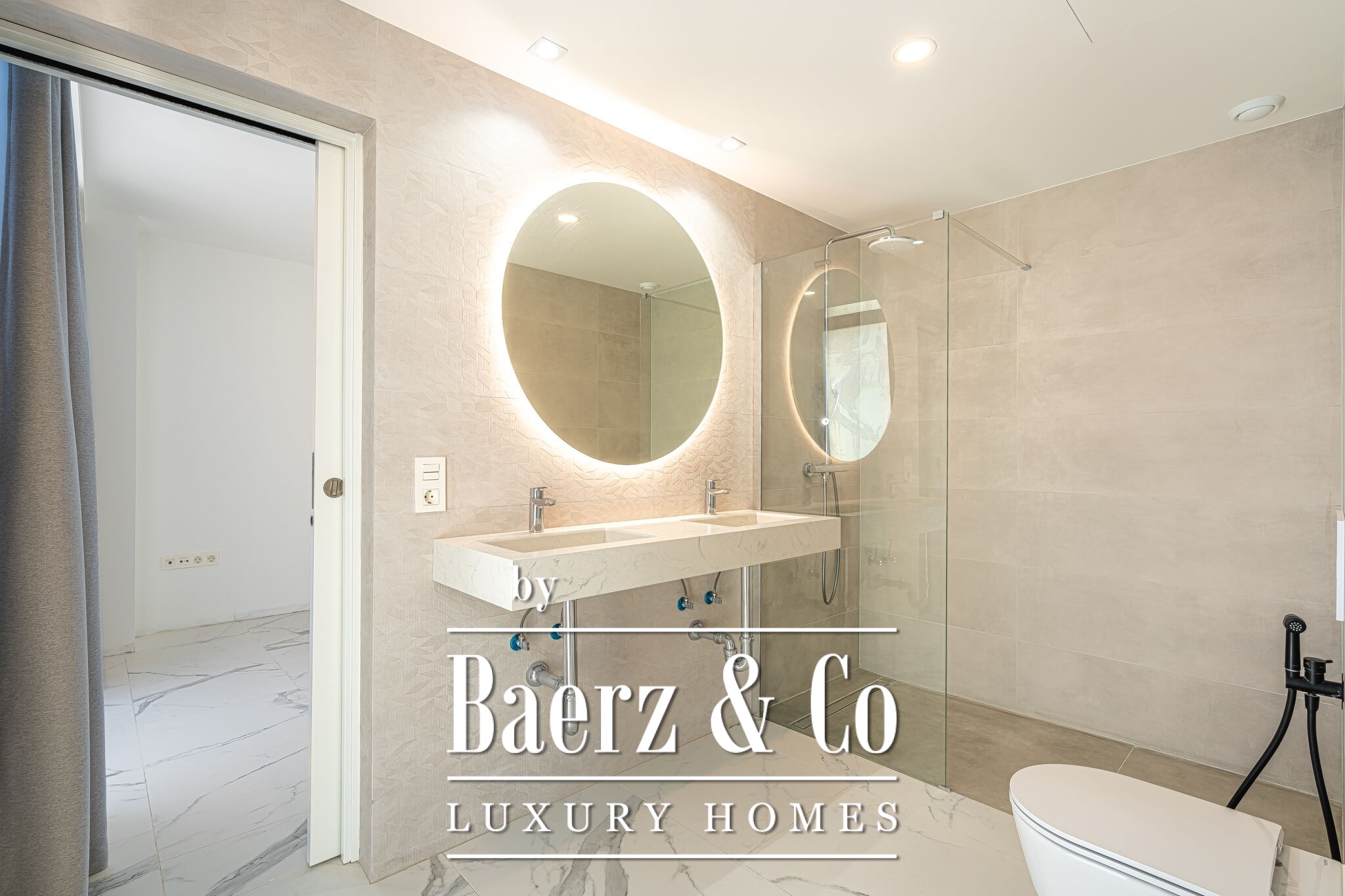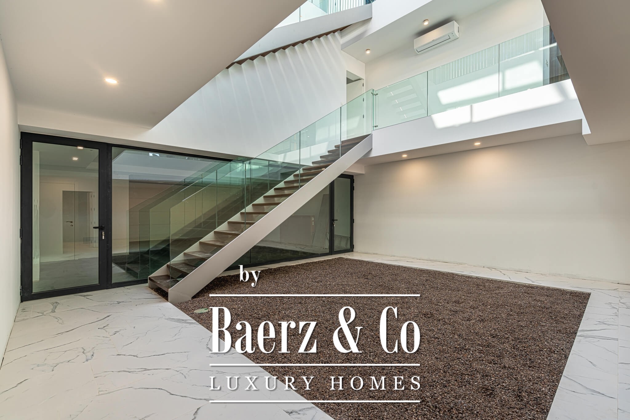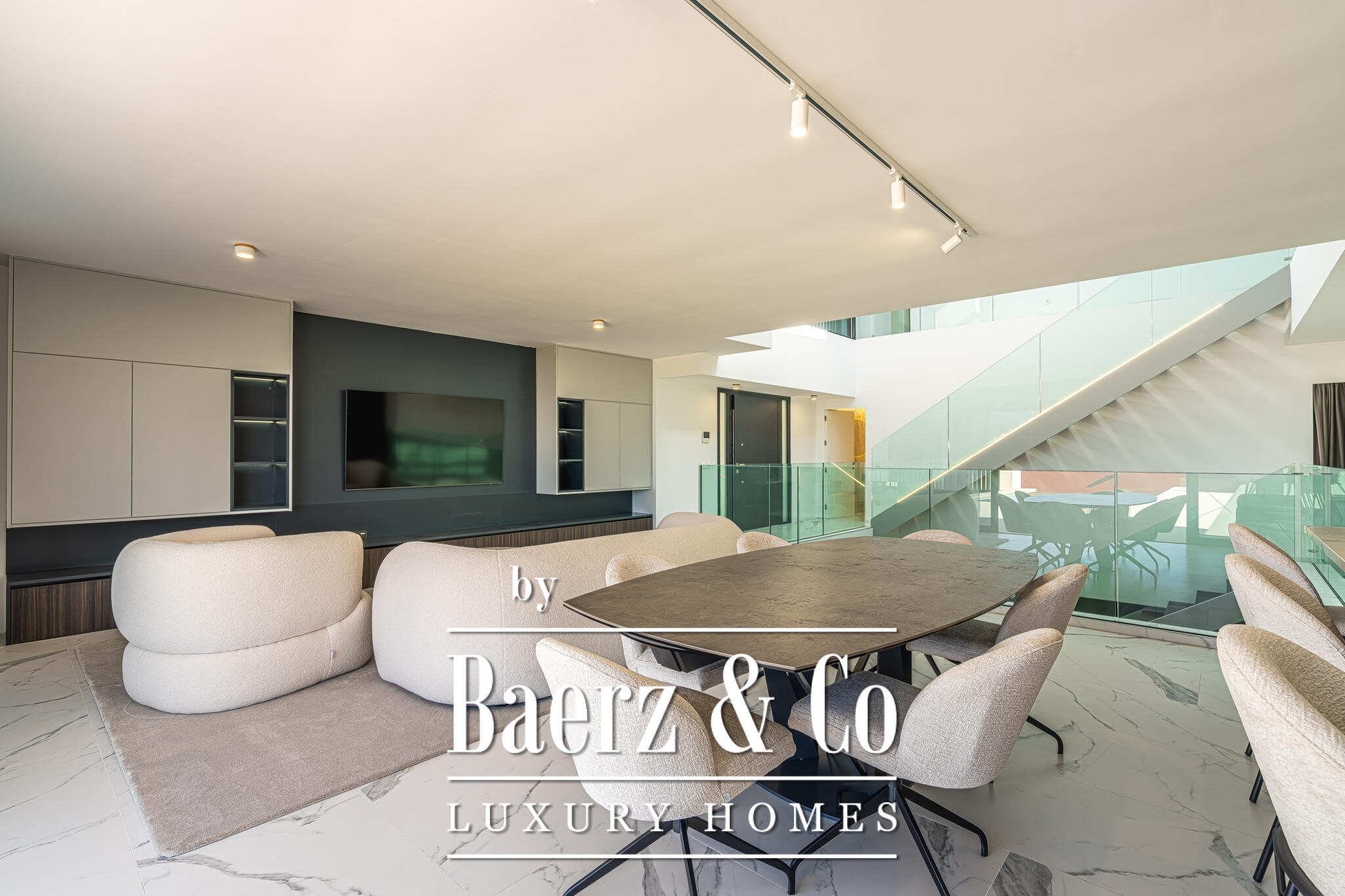 Deze prachtige villa van twee verdiepingen maakt indruk met zijn eigentijdse architectuur, rechte lijnen, duidelijke voorgevels en vertegenwoordigt modern wonen op een droomlocatie. Het comfort en het moderne, lichtdoorstroomde interieur geven een gevoel van luxe op het hoogste niveau. Dankzij de gunstige ligging en het landschap heeft het een adembenemend uitzicht.