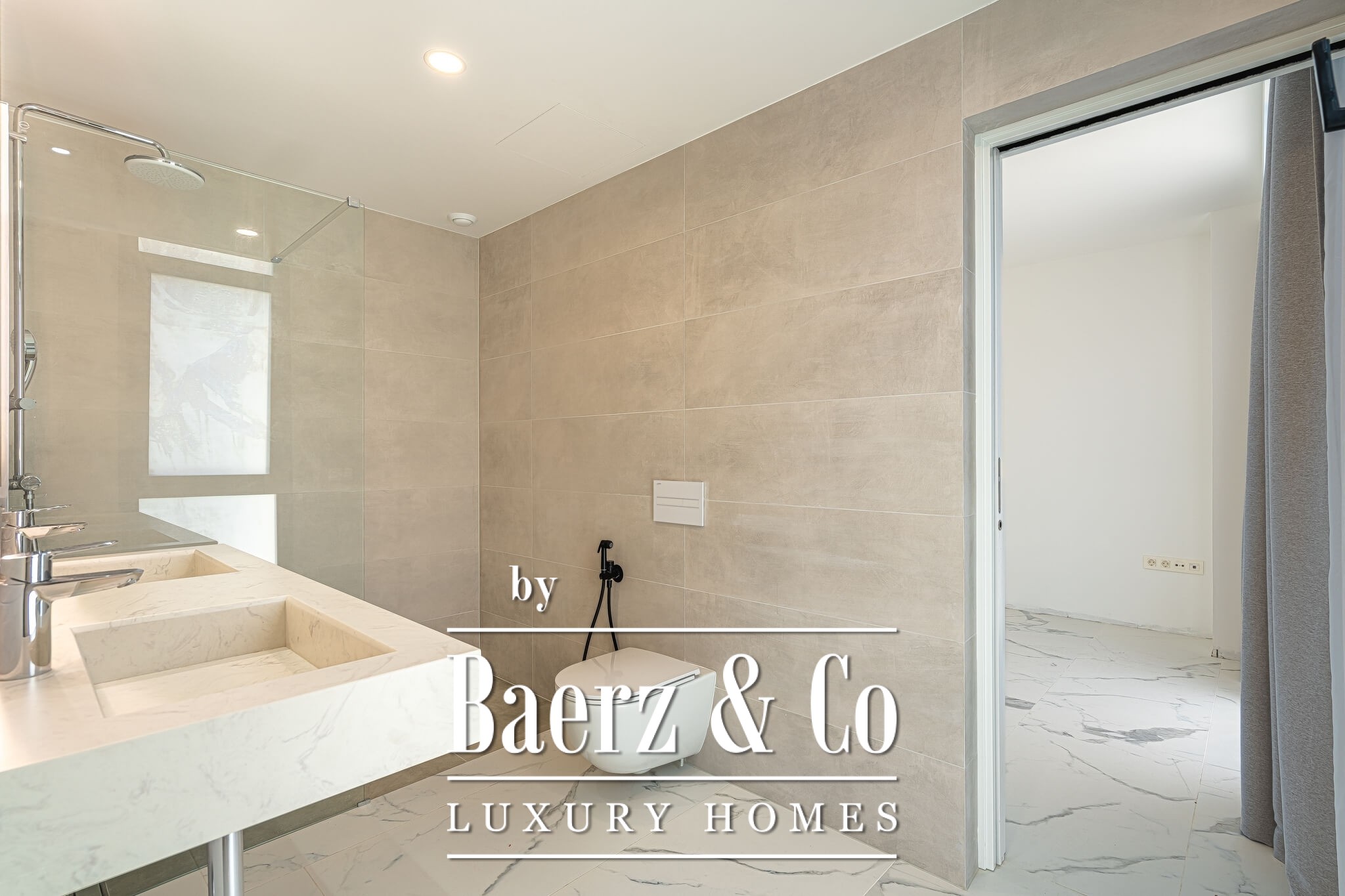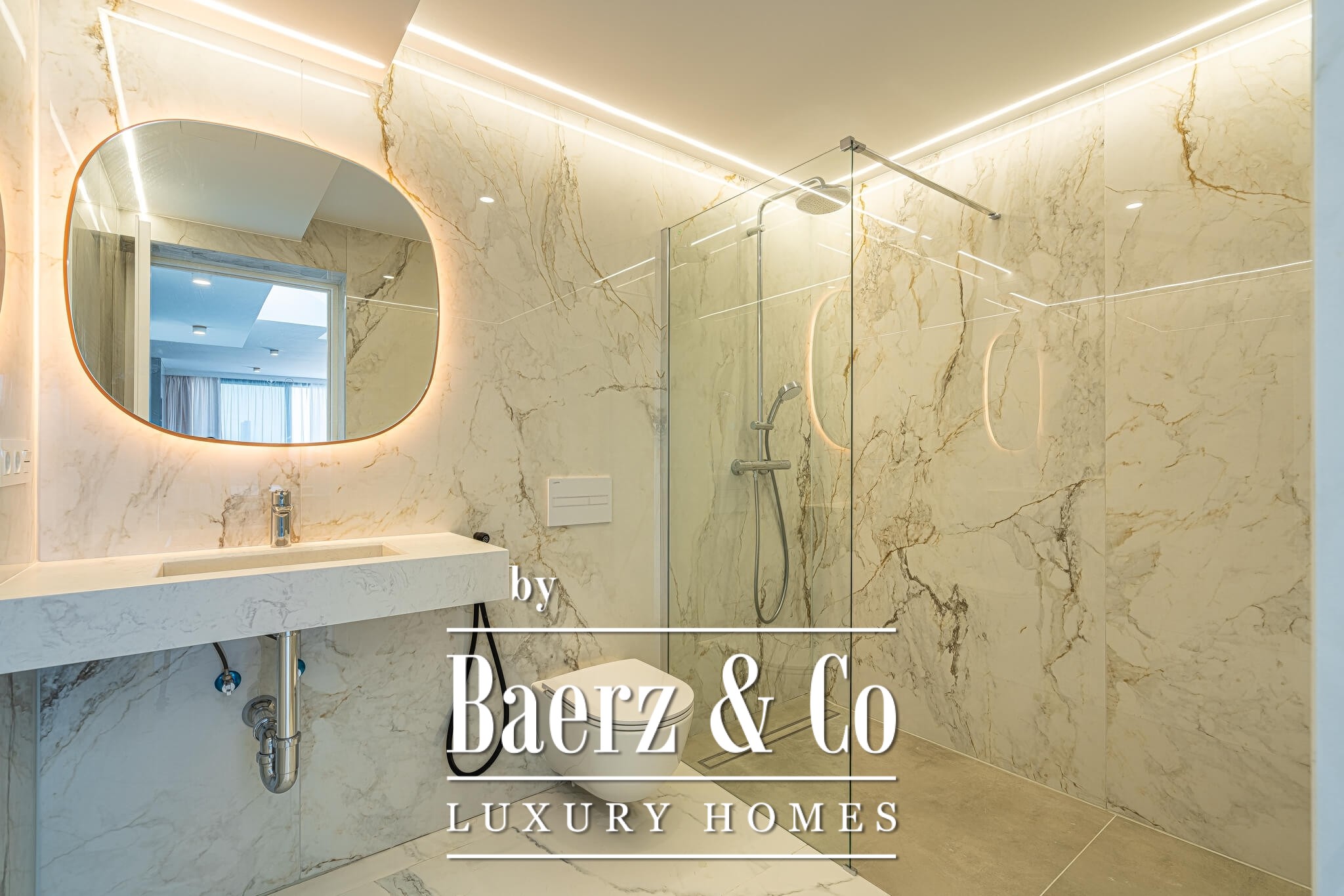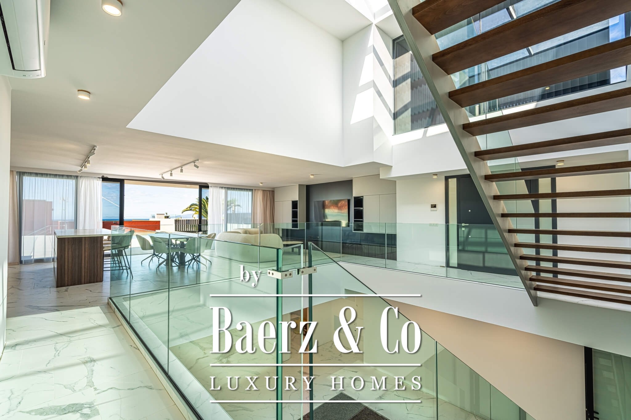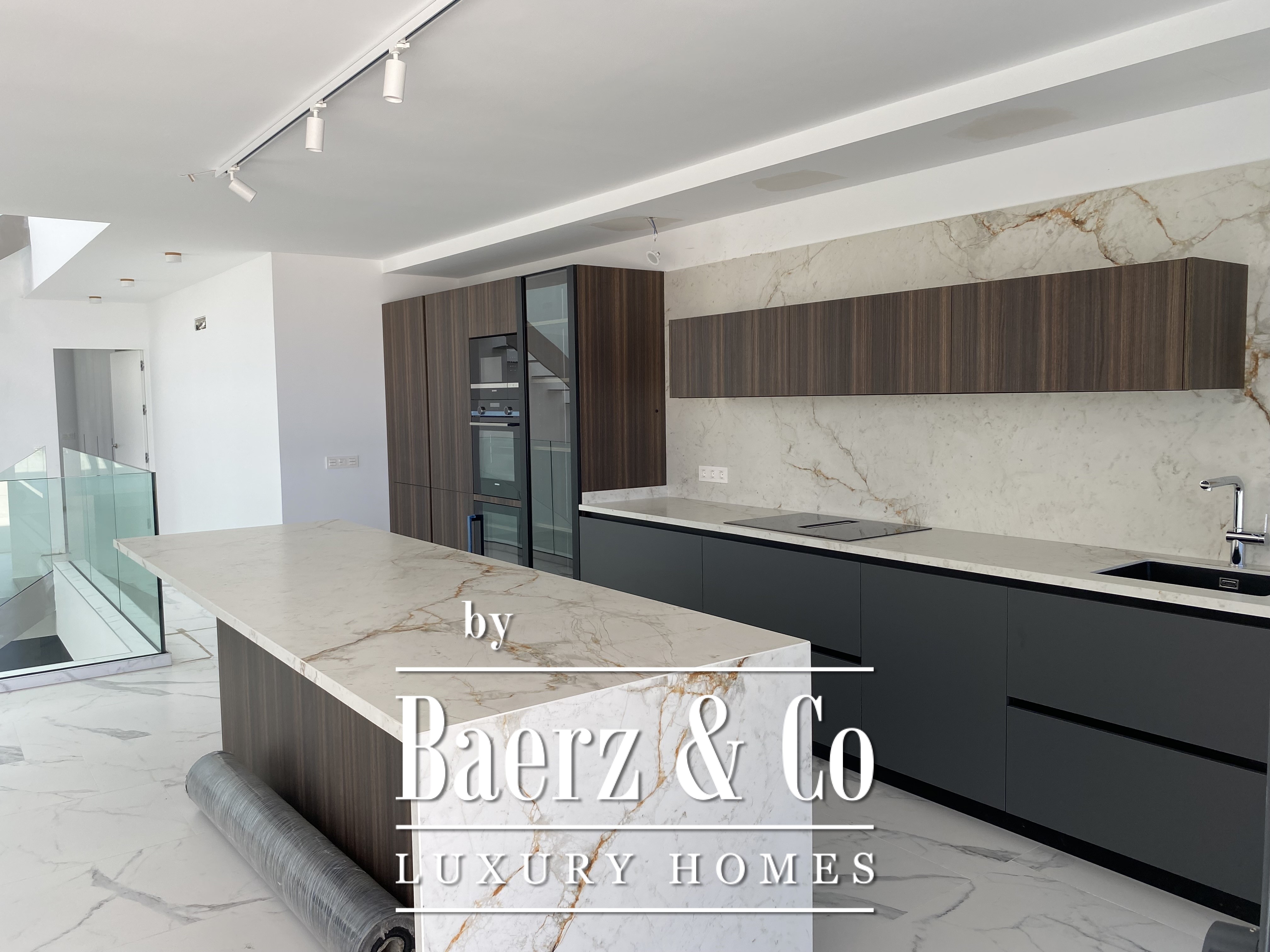 Deze prachtige villa van twee verdiepingen maakt indruk met zijn eigentijdse architectuur, rechte lijnen, duidelijke voorgevels en vertegenwoordigt modern wonen op een droomlocatie. Het comfort en het moderne, lichtdoorstroomde interieur geven een gevoel van luxe op het hoogste niveau. Dankzij de gunstige ligging en het landschap heeft het een adembenemend uitzicht.