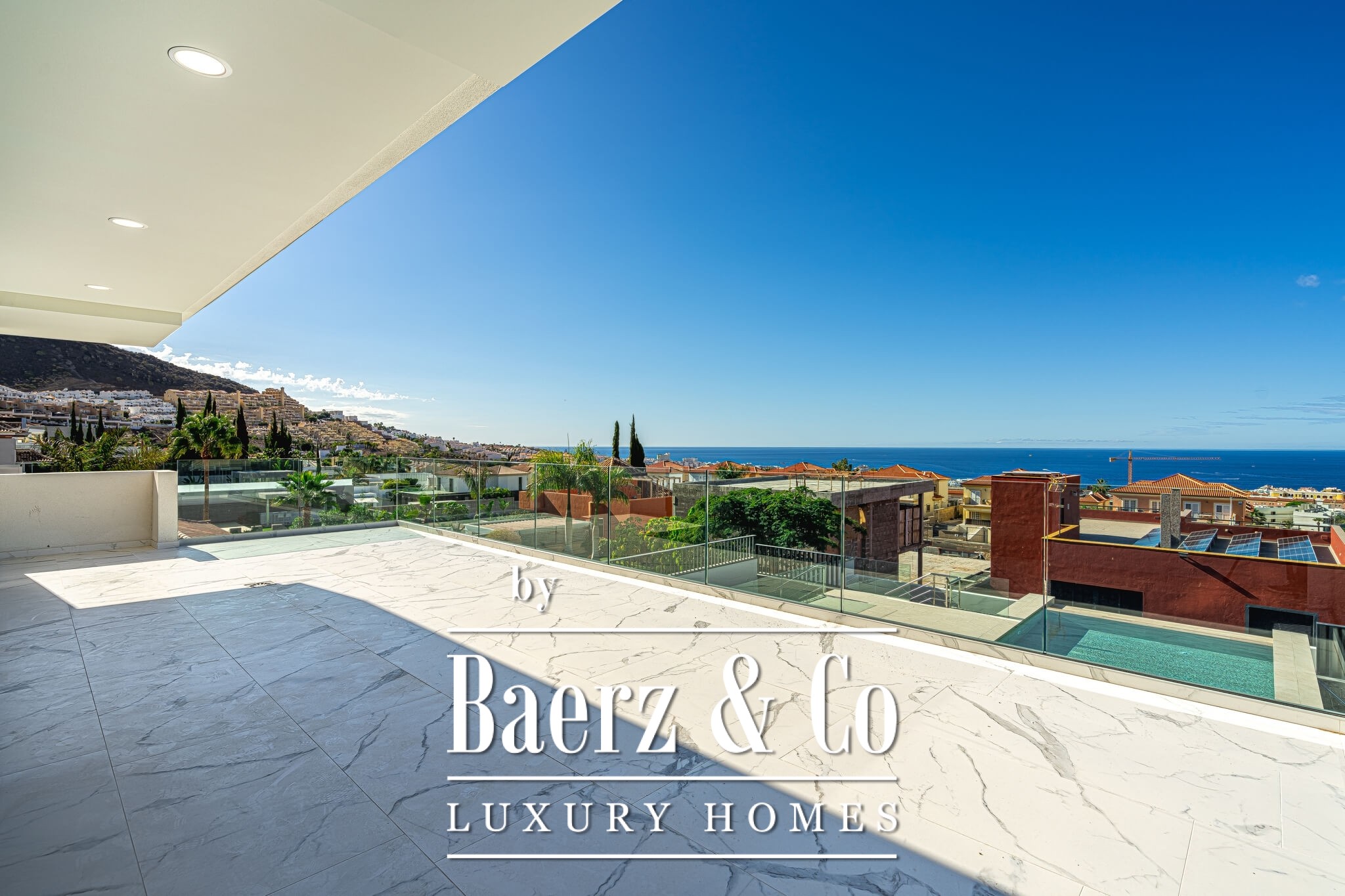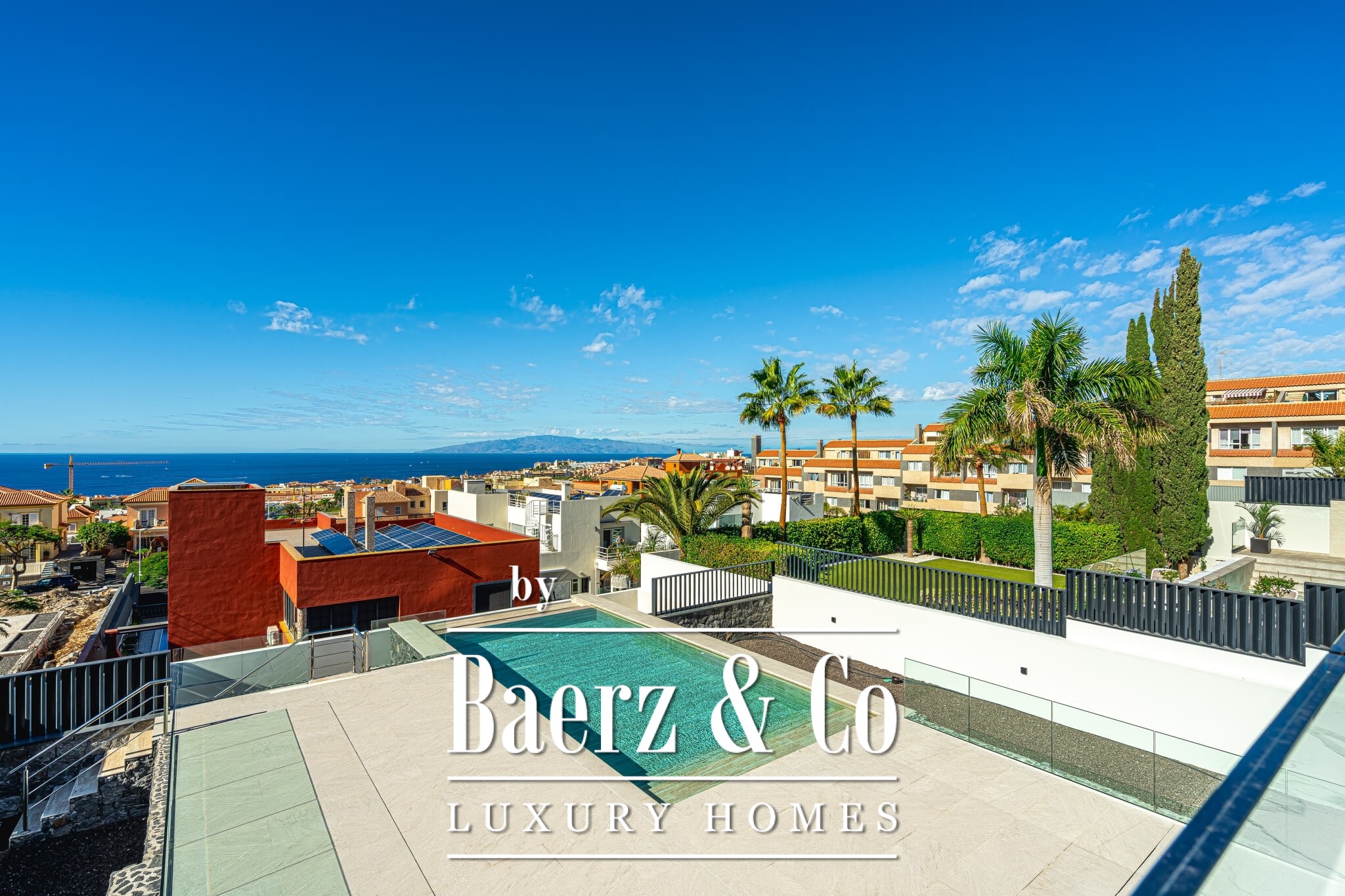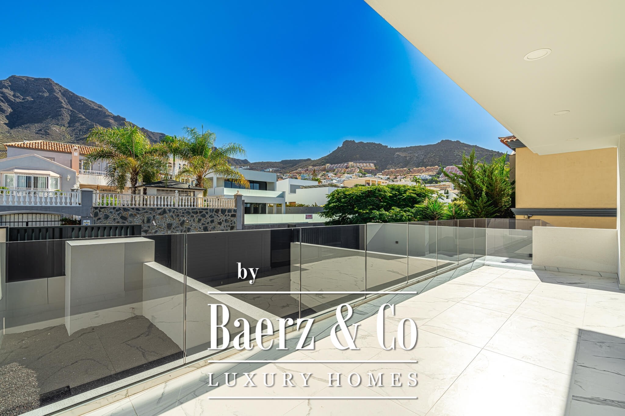 Spectaculaire nieuw gebouwde vrijstaande villa met 5 slaapkamers en 5 badkamers te koop in de mooie omgeving van El Madroñal, in het zuiden van Tenerife.