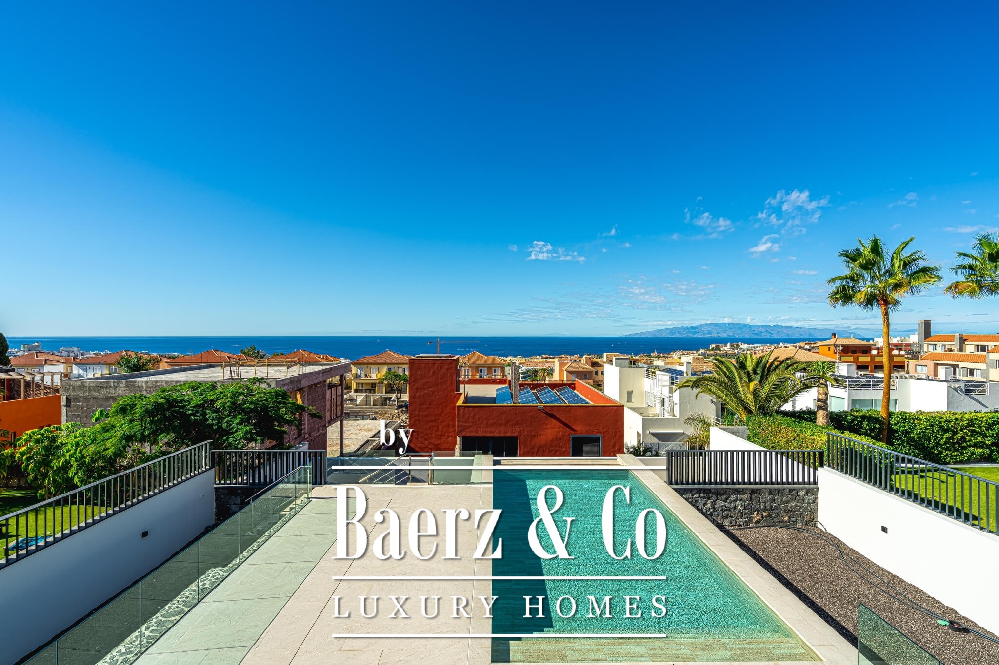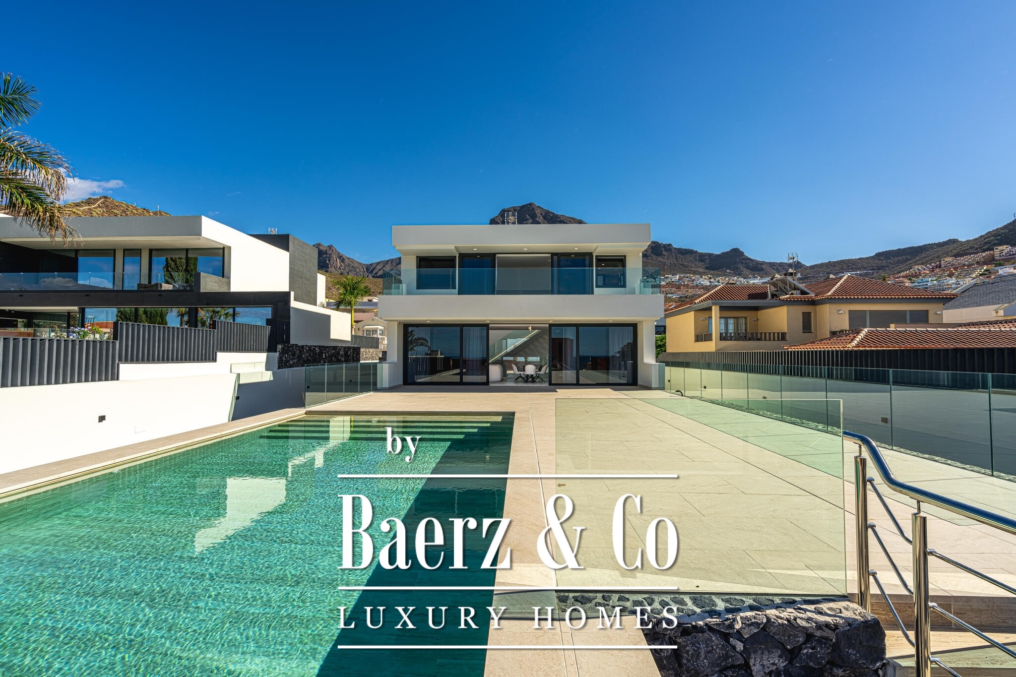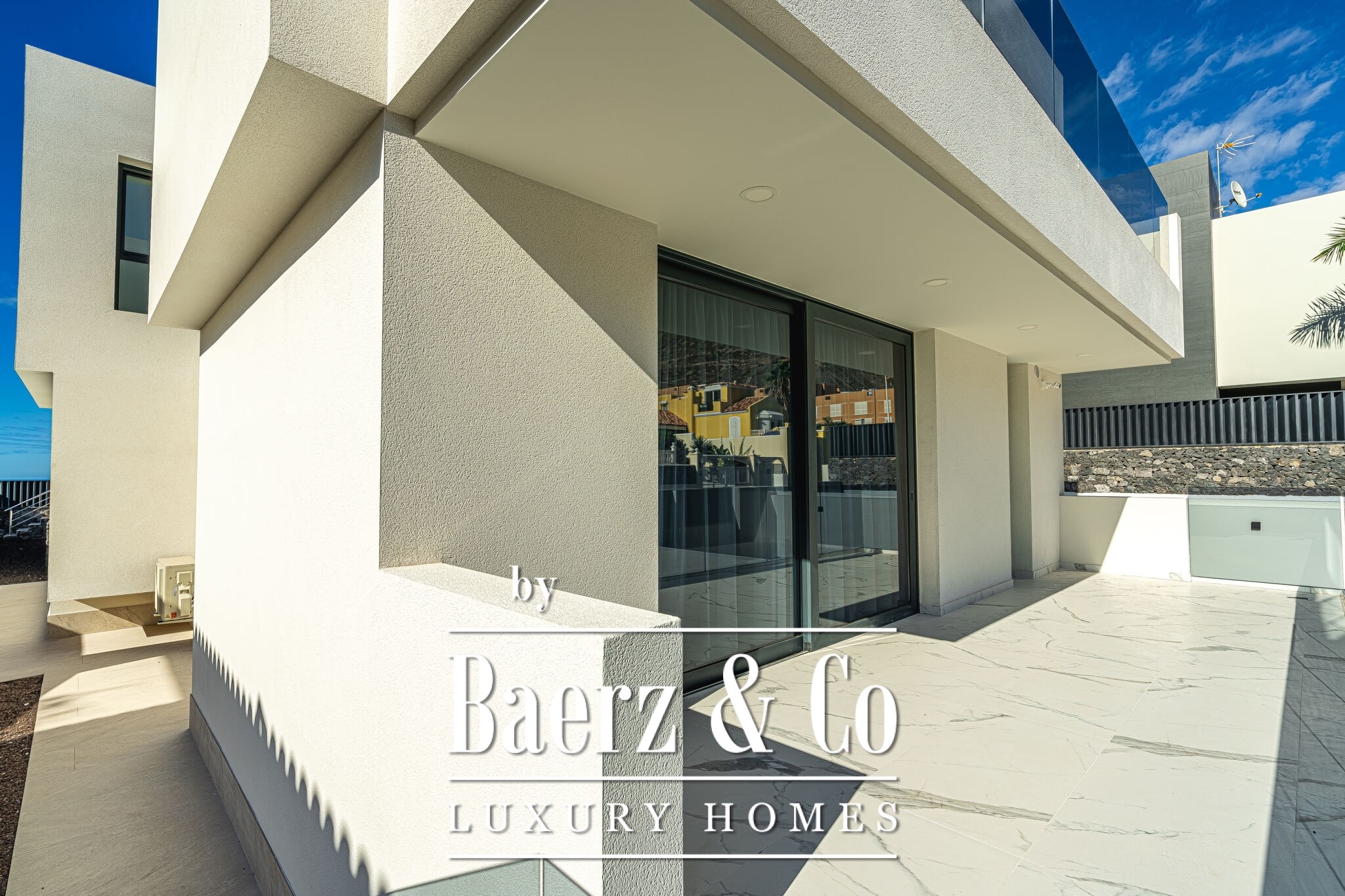 Spectaculaire nieuw gebouwde vrijstaande villa met 5 slaapkamers en 5 badkamers te koop in de mooie omgeving van El Madroñal, in het zuiden van Tenerife.