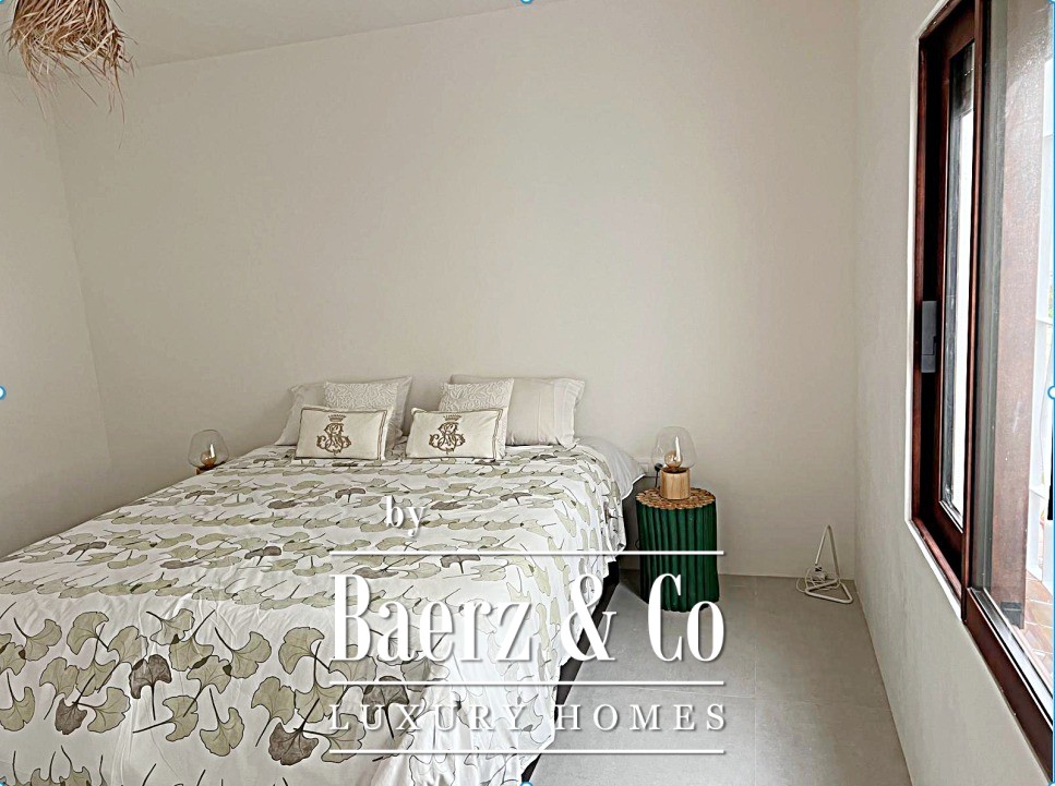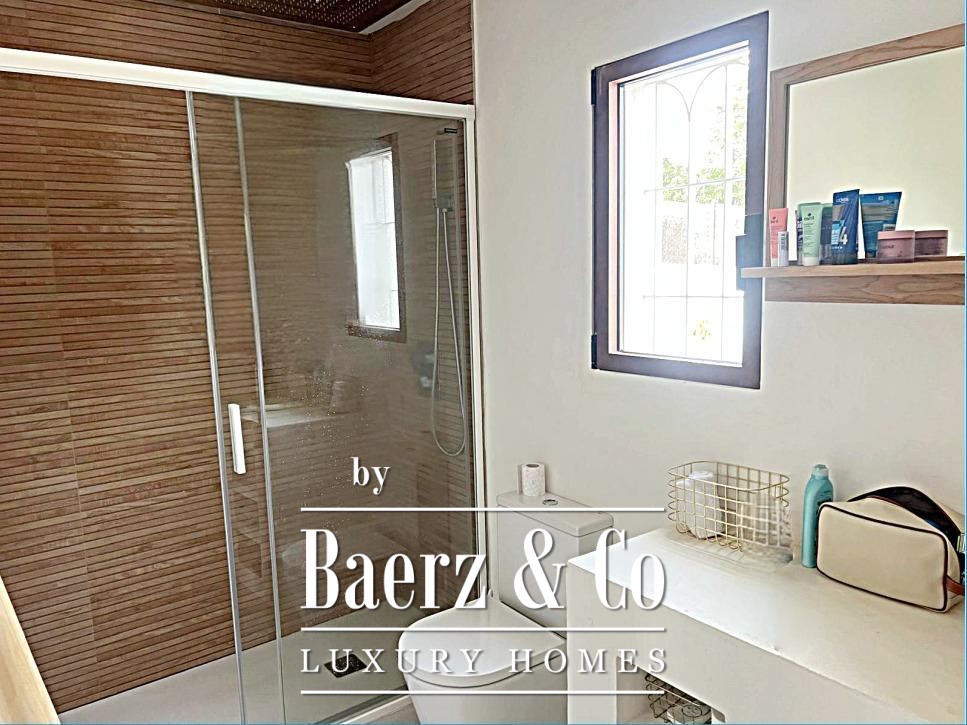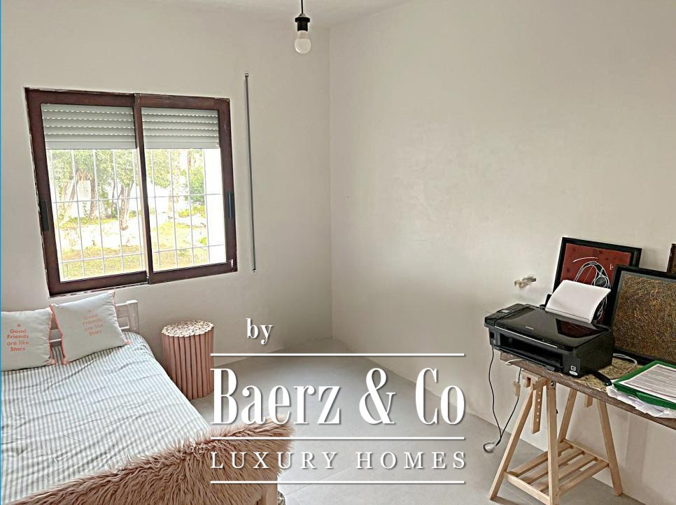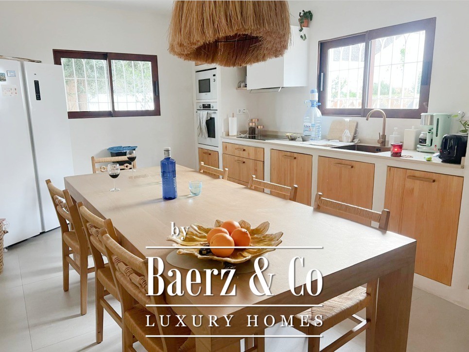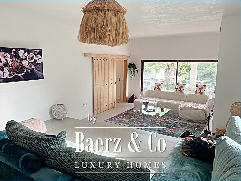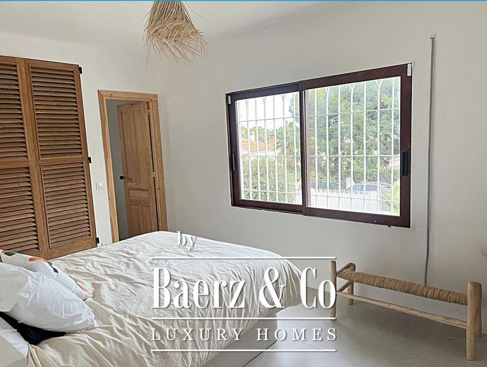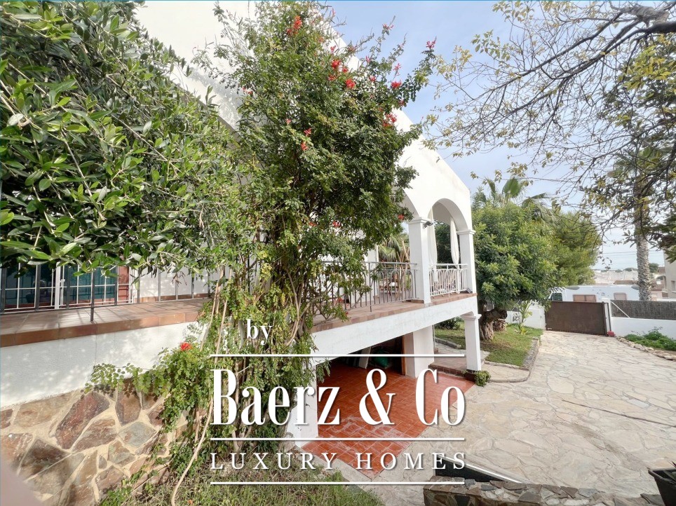 Ibiza-Style Villa Cunit biedt een subliem gerenoveerde, gelijkvloerse woning waar het mediterrane licht het dagritme bepaalt. Deze woning beschikt over 141 m² gebruiksoppervlakte en een totaal bebouwd oppervlak van 347 m², ontworpen voor een vloeiende indeling op één lichte woonlaag en gelegen boven een garage van 147 m² met ruimte voor twee tot drie auto's. De witgekalkte muren, open Amerikaanse keuken en een haard dragen bij aan een ingetogen vorm van luxe. De royale living grenst via een brede schuifpui aan een oostelijk georiënteerd terras, uitkijkend op het 10 x 4,75 meter zwembad waar het zonlicht het verloop van de dag volgt. Extra ramen op het zuiden en westen garanderen lichtinval in het hele huis.