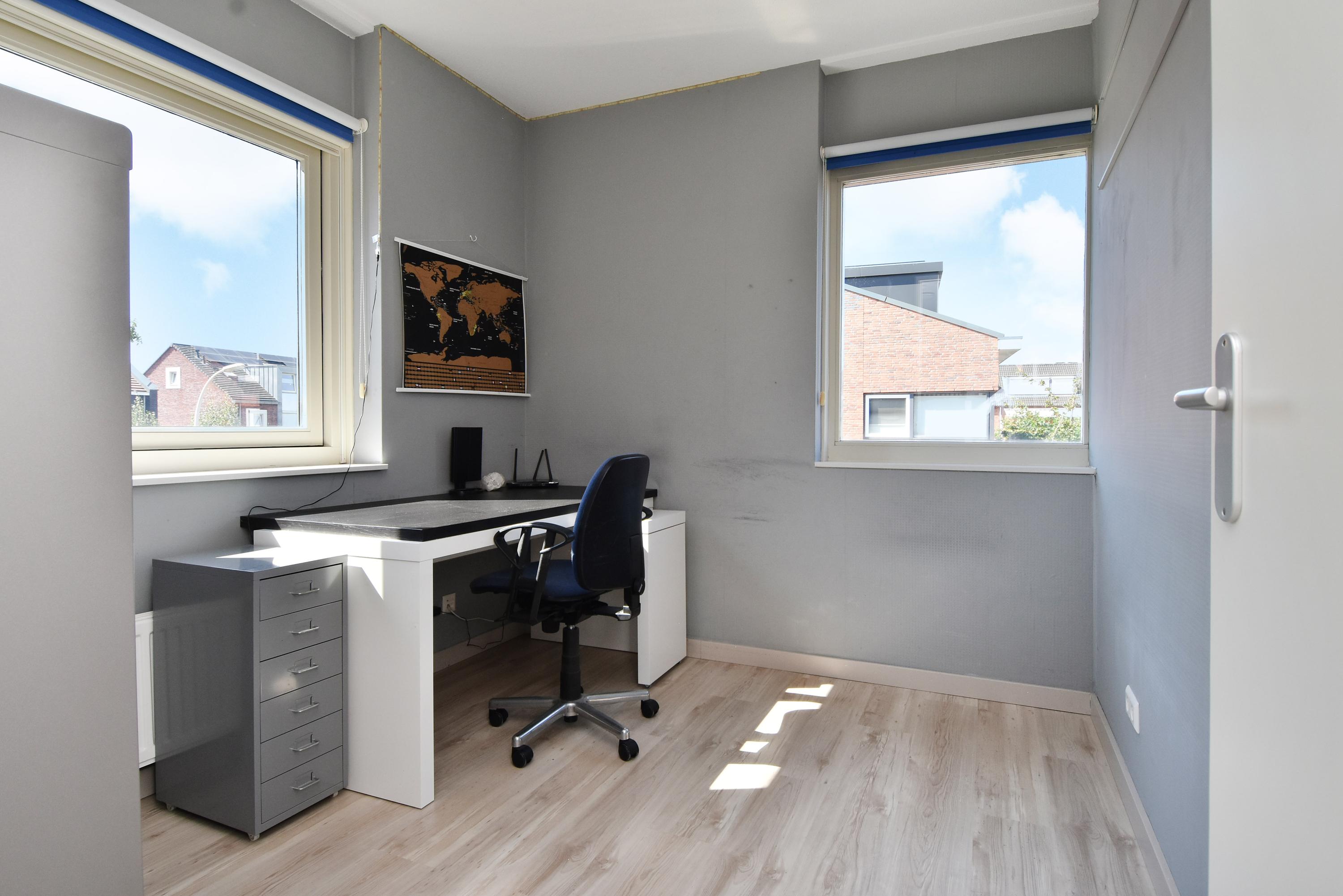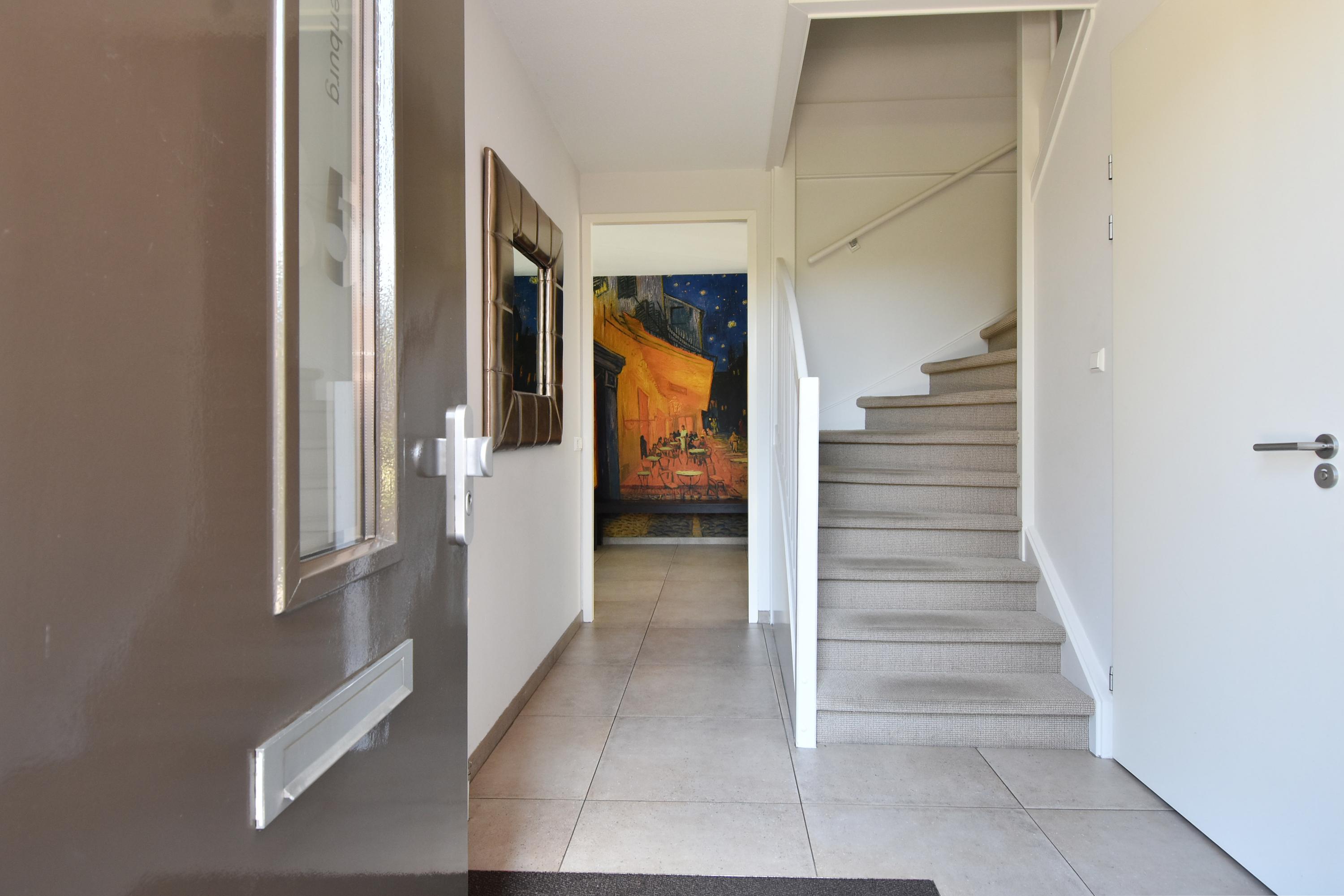 Op de eerste verdieping vind je maar liefst vijf volwaardige slaapkamers, waarvan één momenteel als kastenkamer wordt gebruikt. De moderne badkamer met dubbele wastafel en twee inloopdouches zorgt voor comfort en gemak, terwijl een apart toilet extra praktisch is voor een groot gezin.
