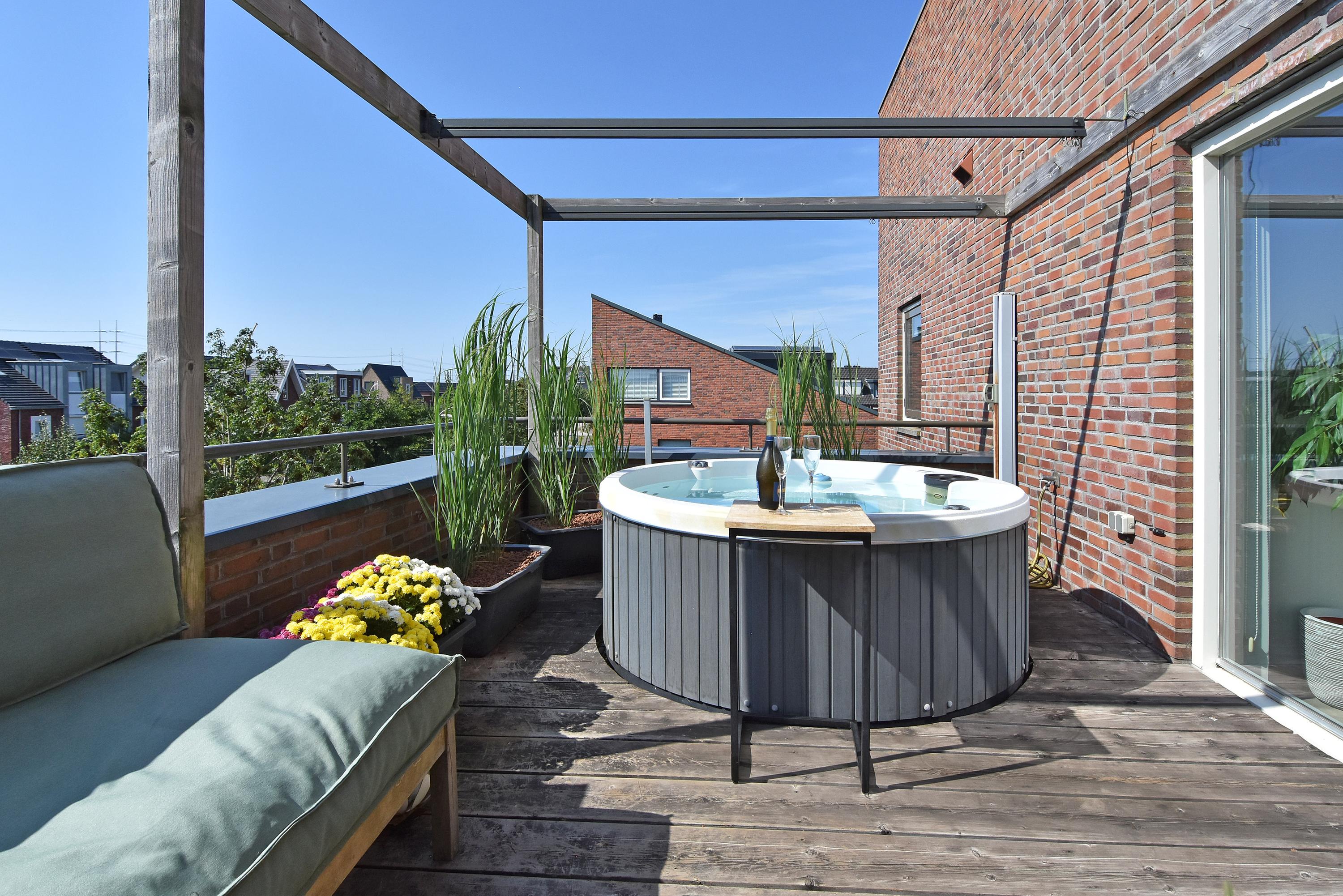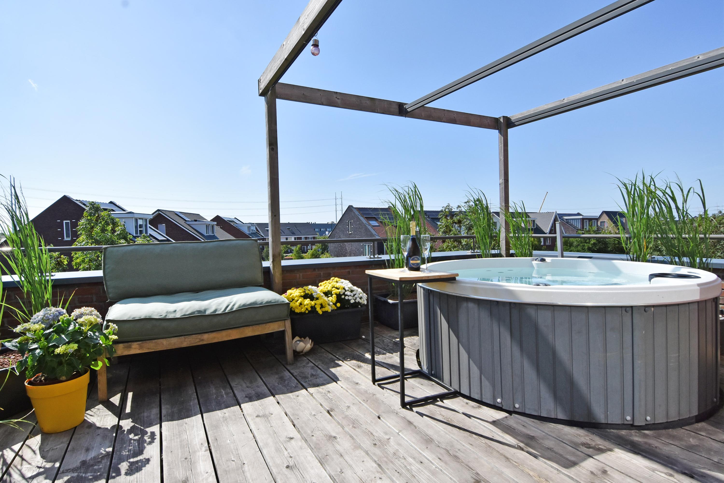 Er is bovendien een royaal dakterras op het zuidwesten, waar je de hele dag door van de zon kunt genieten met volop privacy en de huidige eigenaar heeft hier een jacuzzi.