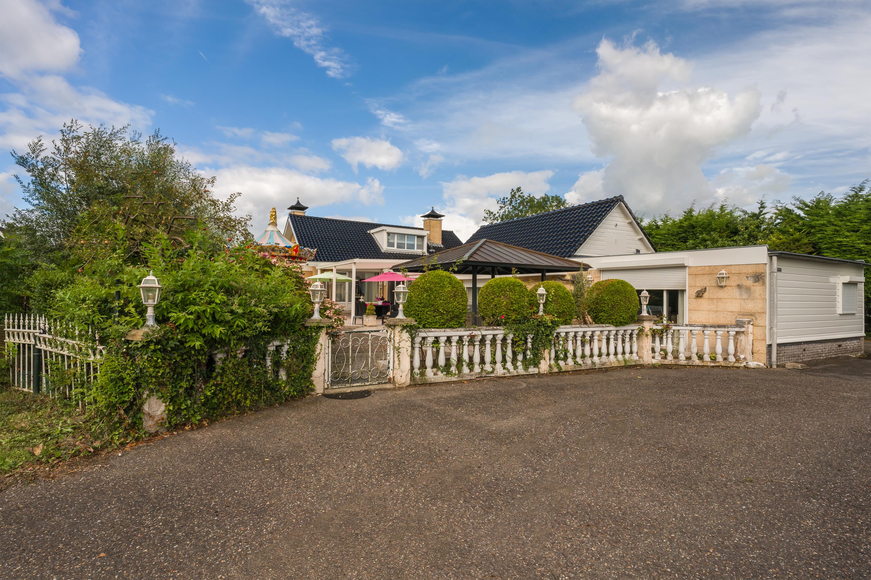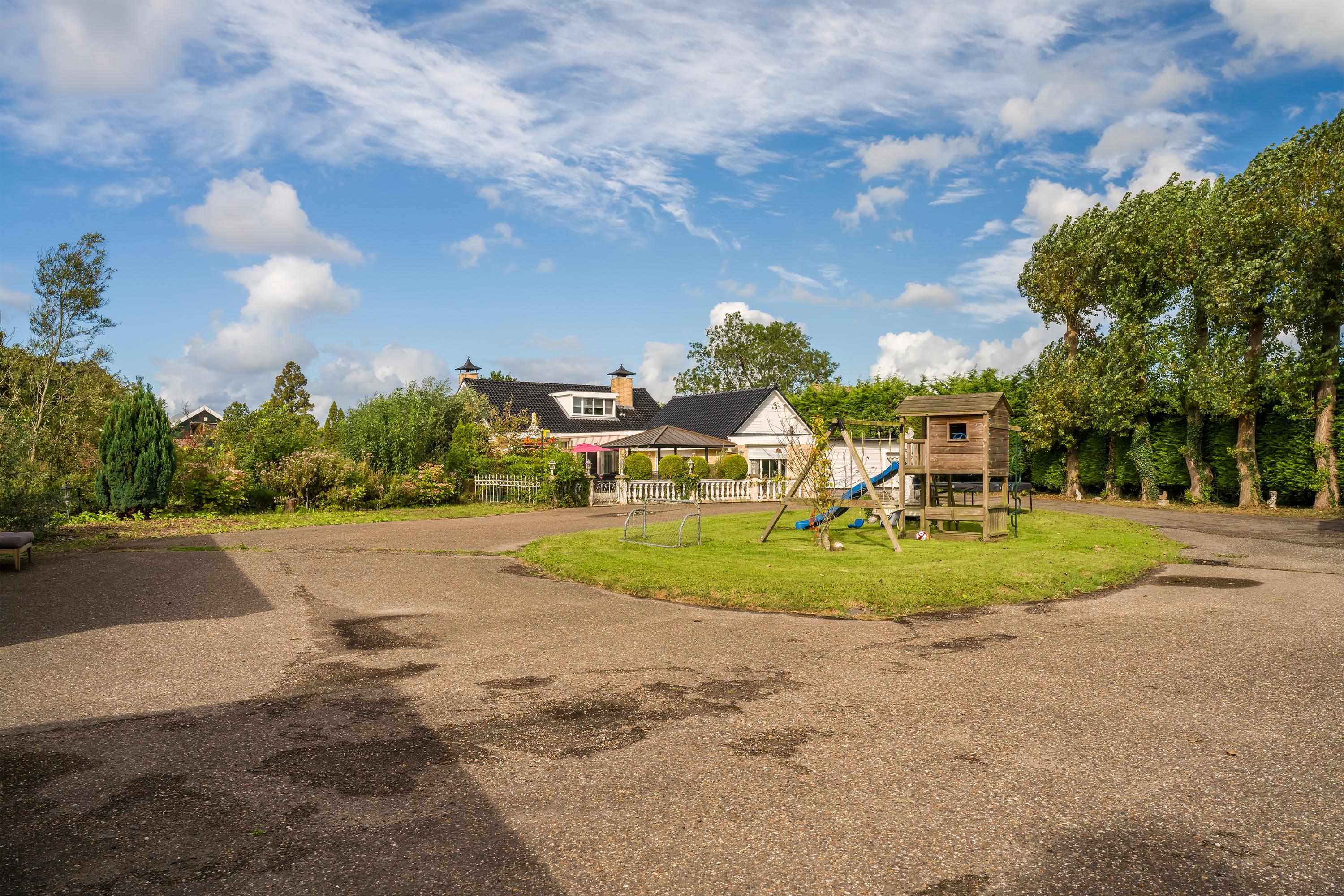 Een prachtig afgesloten privé domein ligt verscholen achter deze -slim op de kavel gesitueerde - vrijstaande woning met guesthouse. Het geheel geeft een grootse vibe, zodra je komt aanrijden. Je oog valt op de witte ijzeren hekken die het groene perceel accentueren, als je de poort benadert. Je reis vervolgt over de asfalt oprit, om achter op het erf te draaien en te parkeren op de rotonde. Vanaf hier kijk je naar de Amerikaans aandoende bungalow met onderheid terras, naar het ruime guesthouse, naar de bedrijfsruimte en de dierenverblijven, waar ooit flamingo's het Noord Hollandse landschap sierden.