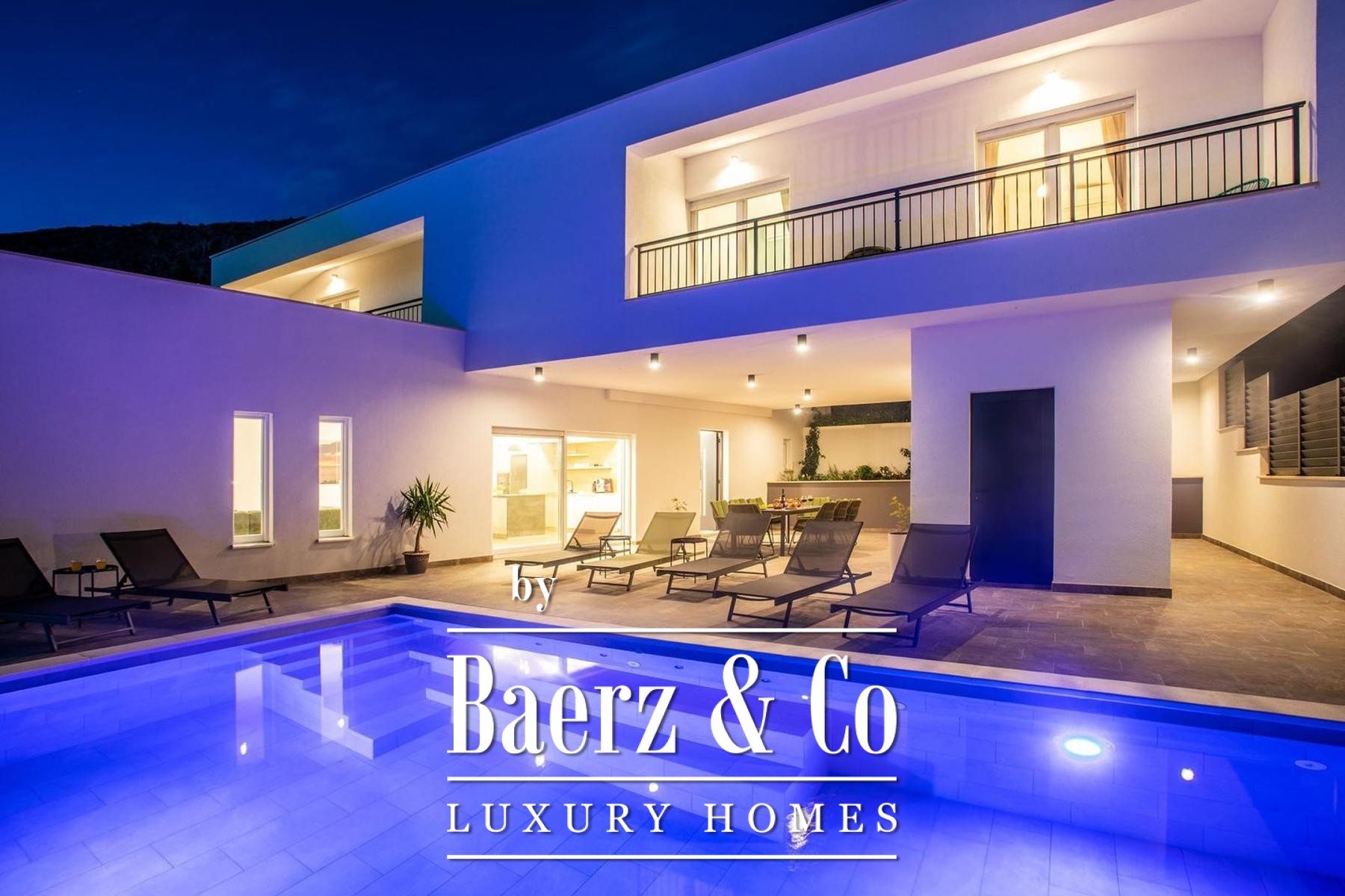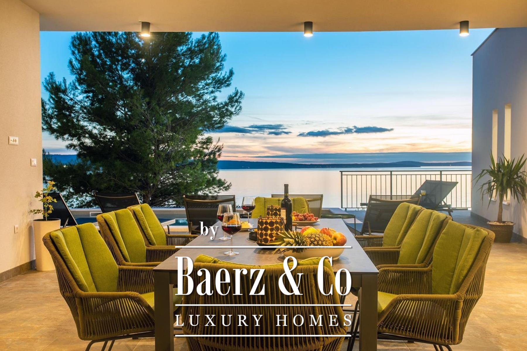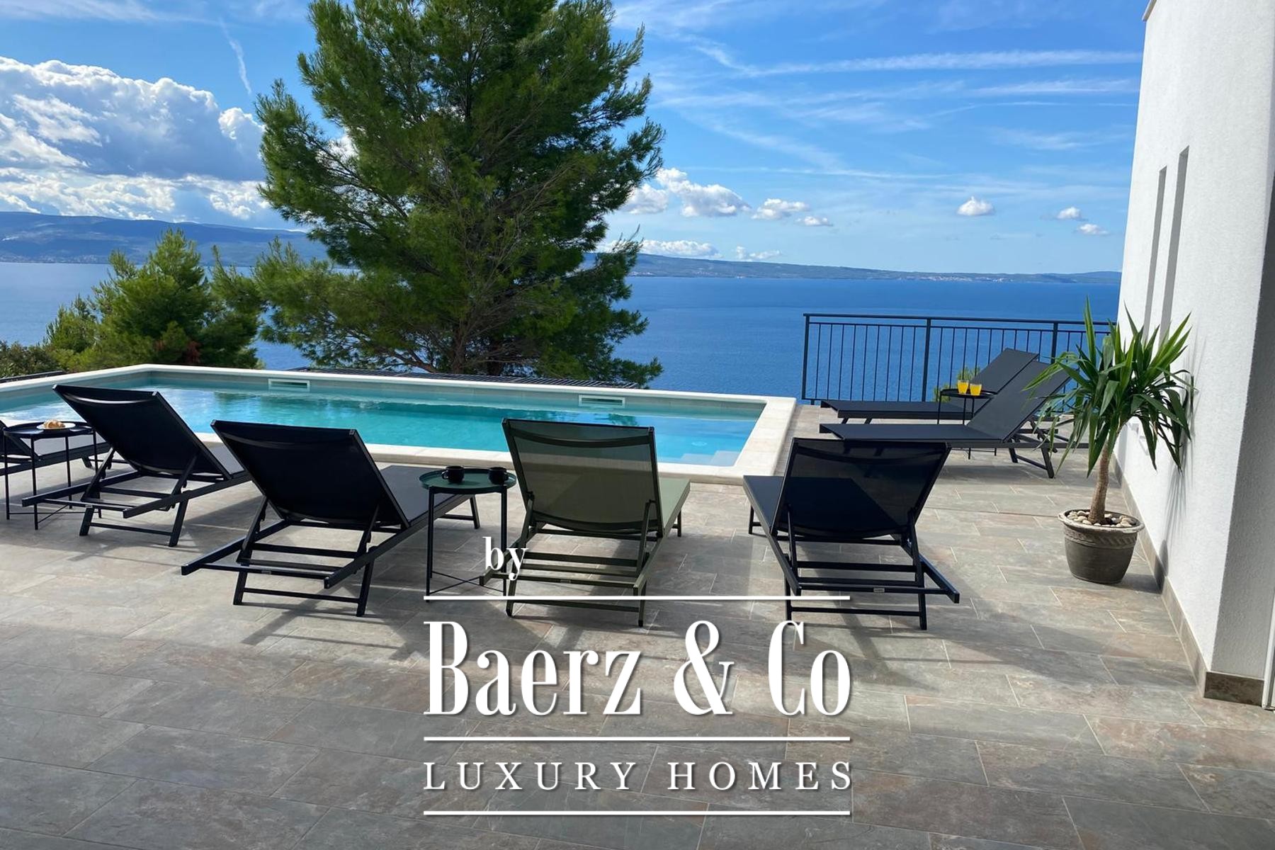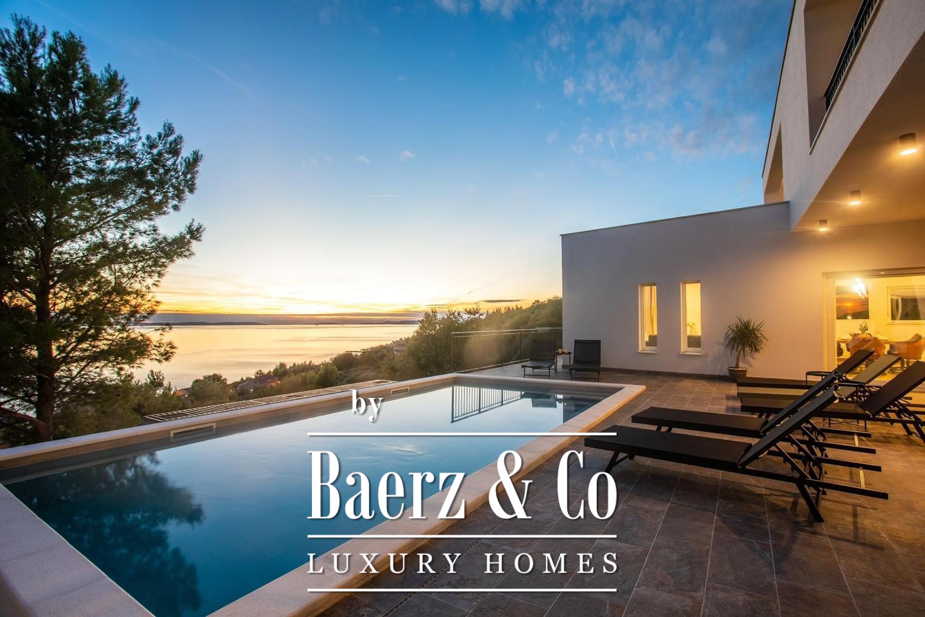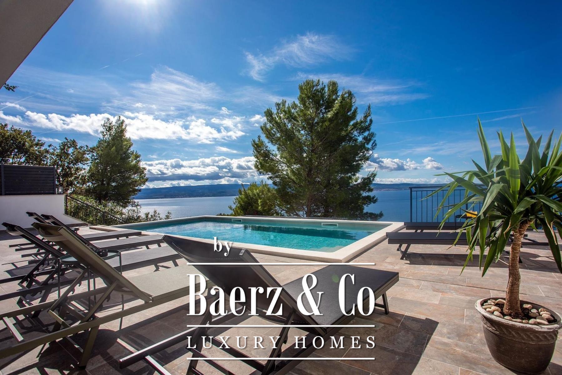 A modern luxury villa, newly built, located in Dugi Rat - Jesenice, just 300 meters in a straight line (1.4 km via a wide asphalt road) from the Adriatic Highway. Set on a plot of 814 m², this property stands out for its contemporary architecture, spectacular panoramic views of the sea and islands, and complete privacy - the villa is fully shielded from view and isolated from external noise, offering peace, comfort, and discretion.The total net usable area is 275 m², including 196 m² of enclosed living space, 110 m² of covered terraces, and an additional 40 m² sun deck by the pool.