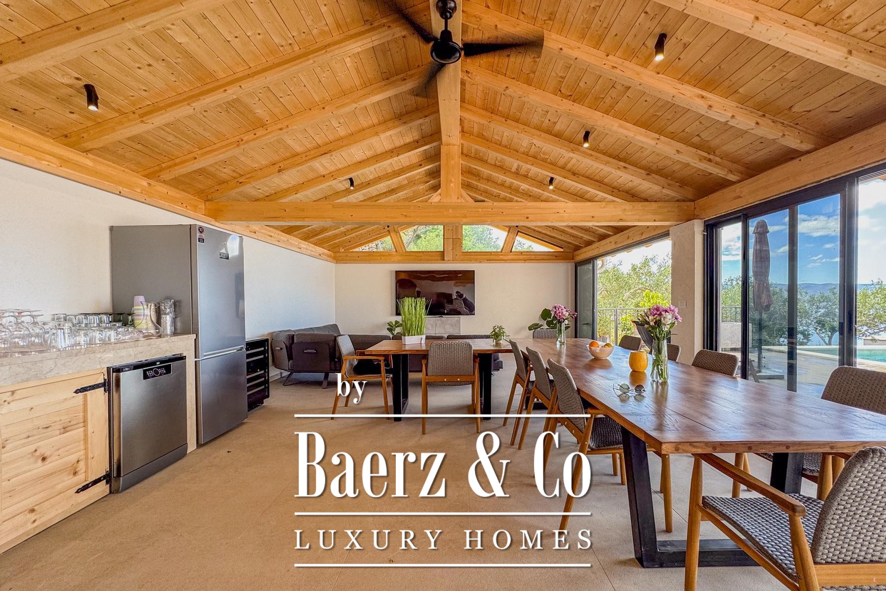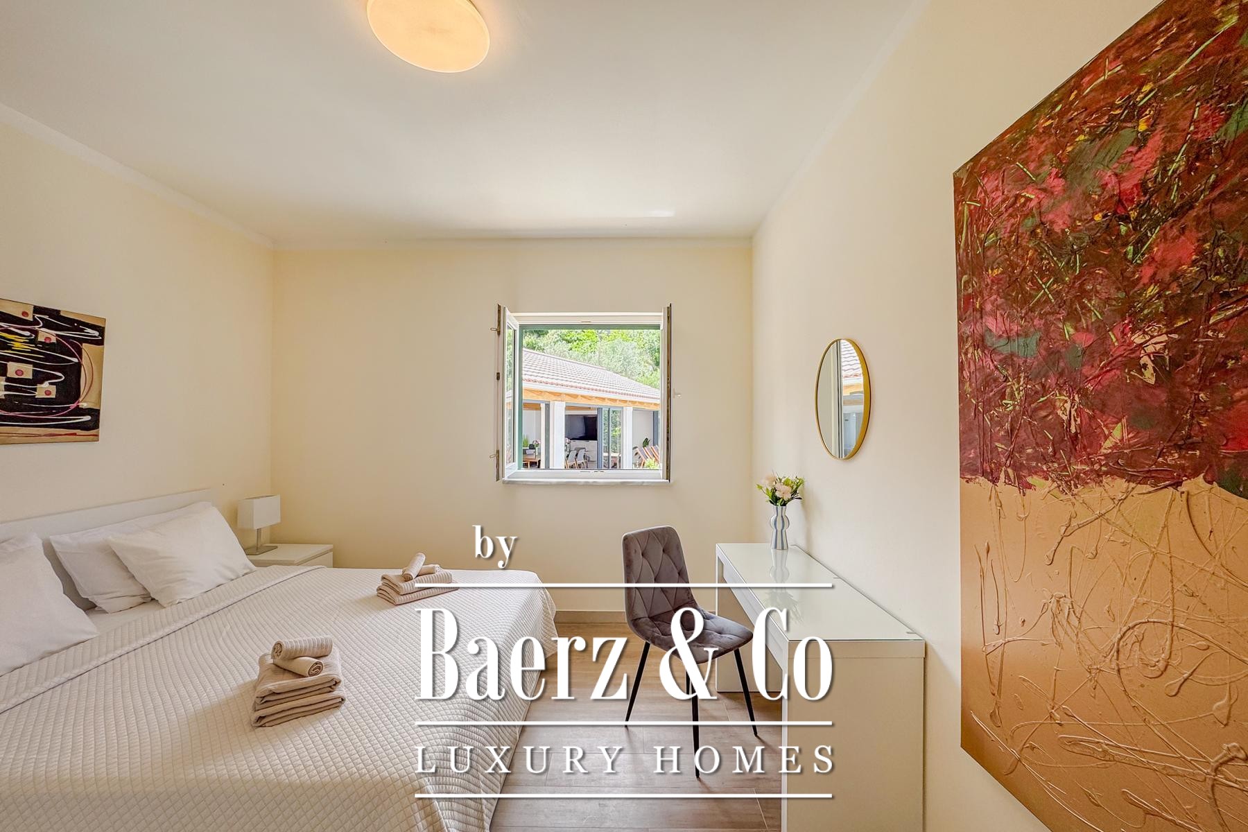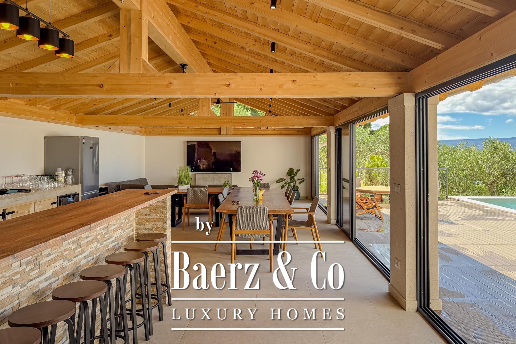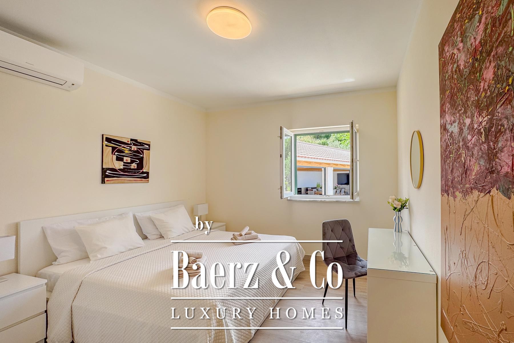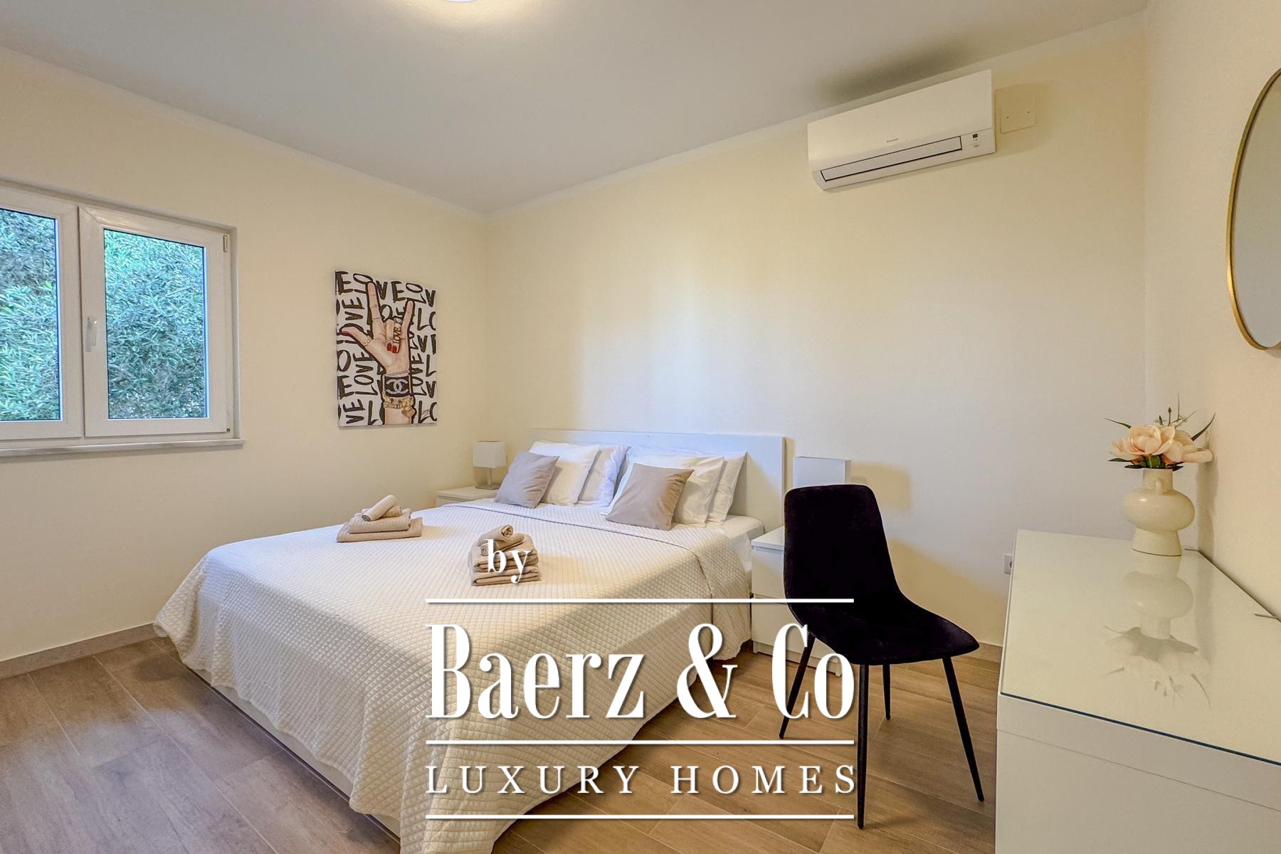Binnen is Villa Jesenice stijlvol verdeeld over twee verdiepingen en een galerij, met een zee aan natuurlijk licht in alle ruimtes. De villa beschikt over vijf ruime slaapkamers en vijf moderne badkamers, en heeft een open leefruimte met keuken en eetgedeelte die uitnodigt tot comfort en gezellig samenzijn.