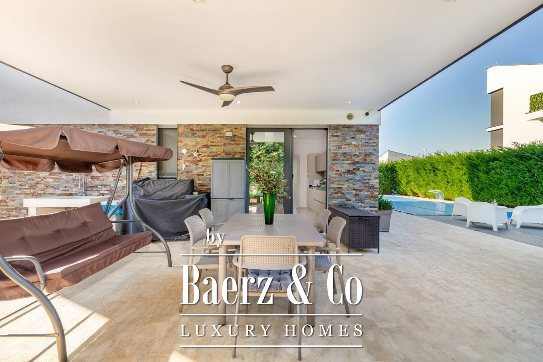 so the property is fully adapted for people with disabilities. On the first floor there are 4 fully equipped bedrooms with their own bathrooms. All furniture (beds, wardrobes, doors) is made to measure, of Italian design and quality. In addition, the property contains another room that serves as a storage room/wardrobe for the current owners, but is destined for a bedroom.The villa has access to the roof terrace, from which an enchanting view of the sea and the beautiful Brijuni Islands permeates. Also, the villa has built-in solar panels.Mosquito nets have been installed throughout the property along with remote control electric blind lifters.Heating through floor heating, heat pump, fain-coil system in every room. An alarm system is installed for the entire villa, cameras outside.A truly complete property, ready for a peaceful life or as an ideal way of investment and tourism.I am available for additional information.