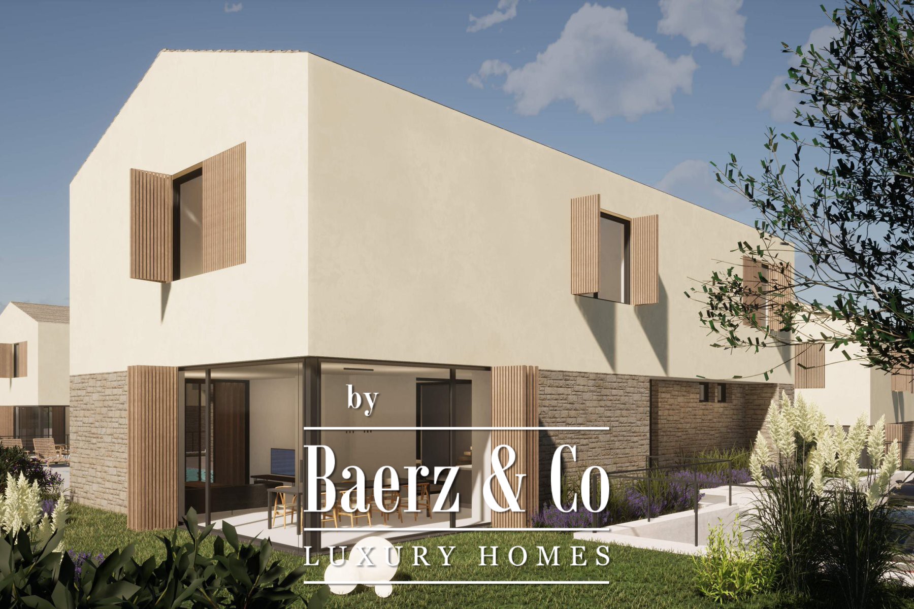 and a high-quality kitchen with a large bar, so that a larger group of people can enjoy a perfect vacation. In a separate part, there is a wellness area with an indoor pool and a sauna. Upstairs there is another large terrace, three bedrooms with their own bathrooms, a luxurious home theater and a superbly equipped gym with a bathroom oriented towards the sun deck on the ground floor. Here, the emphasis is on relaxing and socializing outdoors, so the outdoor pool with sunbeds is particularly prominent. Between the living room and the kitchen there is a recessed and covered terrace, and on the north side a terrace with a barbecue covered by a wooden pergola. Both terraces are in direct connection with the sunbathing area, wellness and living room. Completion of construction and moving in is planned for the spring of 2024. Other information on request.