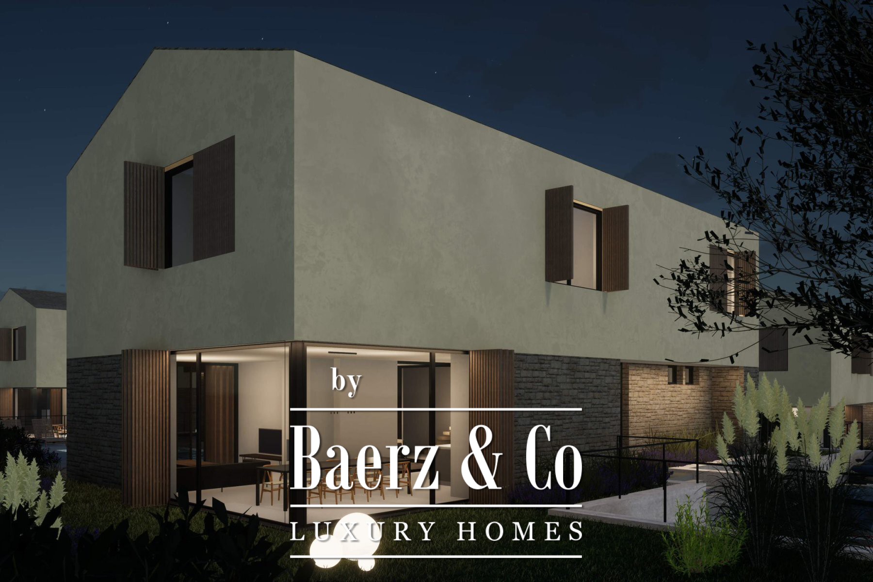 Istria, Gračišće - for sale an exclusive, luxurious villa with an area of 390 m3 on a plot of land of 898 m2 with an indoor and outdoor pool, which will be built according to the highest standards. It is located in the interior of Istria, in the quiet town of Batulj, not far from the town of Žminj. The villa was designed to represent a combination of traditional and modern architecture, its idyllic landscape and peace and 312 square meters of meticulously arranged interior is all that is needed for a superb vacation and complete privacy. It will be fully furnished with quality and luxurious furniture. There are three identical villas in the project. All three villas are designed as holiday villas for larger families or groups of friends. On the ground floor, a spacious living room has been designed, which has a direct connection to the dining room