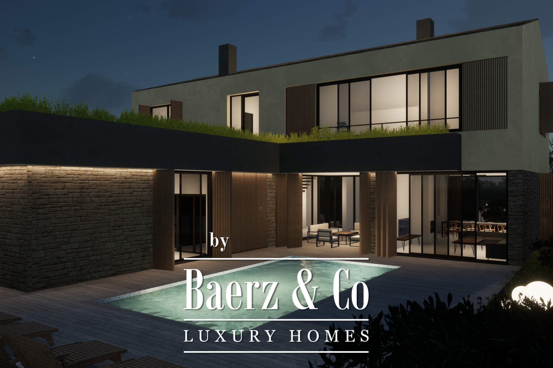 and a high-quality kitchen with a large bar, so that a larger group of people can enjoy a perfect vacation. In a separate part, there is a wellness area with an indoor pool and a sauna. Upstairs there is another large terrace, three bedrooms with their own bathrooms, a luxurious home theater and a superbly equipped gym with a bathroom oriented towards the sun deck on the ground floor. Here, the emphasis is on relaxing and socializing outdoors, so the outdoor pool with sunbeds is particularly prominent. Between the living room and the kitchen there is a recessed and covered terrace, and on the north side a terrace with a barbecue covered by a wooden pergola. Both terraces are in direct connection with the sunbathing area, wellness and living room. For heating and cooling purposes, ceiling air conditioning units, air/air heat pumps will be installed. Completion of construction and moving in is planned for the spring of 2024. Other information on request.