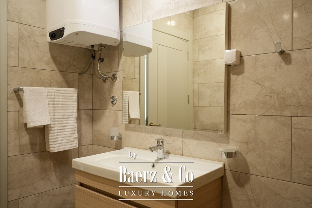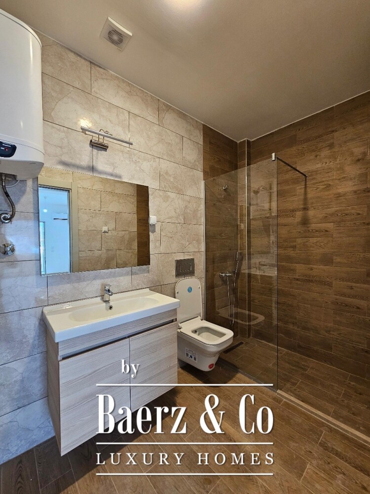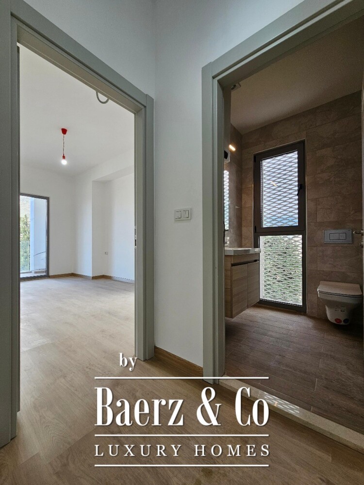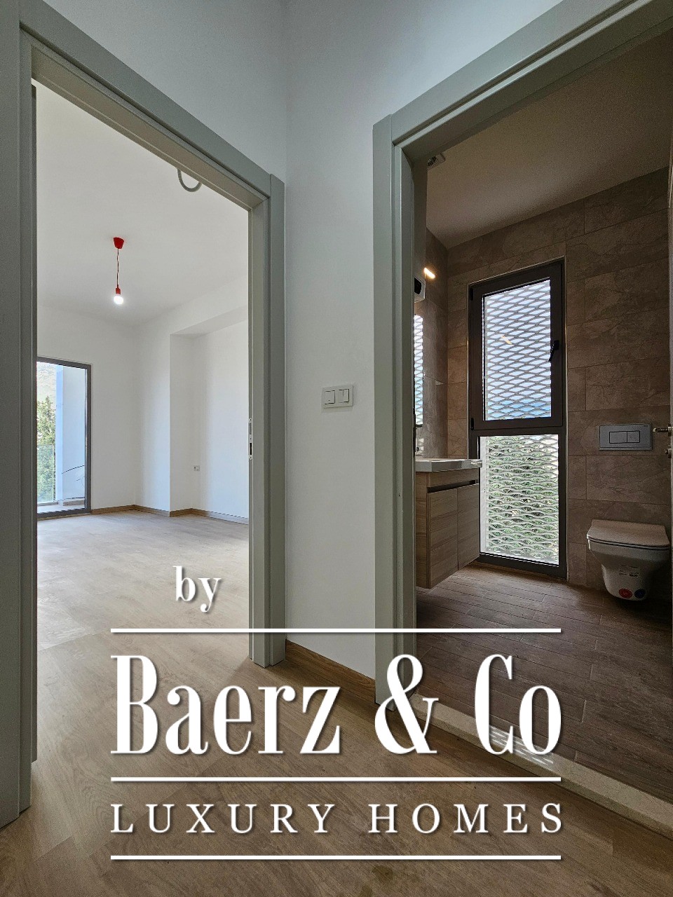 Het appartement wordt opgeleverd met afgewerkte vloeren en betegeling, een volledig ingerichte badkamer en airconditioning, wat direct wooncomfort garandeert. Bewoners kunnen gebruikmaken van een gemeenschappelijk zwembad en een kinderspeelplaats binnen het project; privé parkeergelegenheid in de garage is beschikbaar voor € 25.000. De bereikbaarheid is uitstekend via geasfalteerde wegen en de luchthavens van Tivat, Dubrovnik en Podgorica zijn eenvoudig te bereiken.