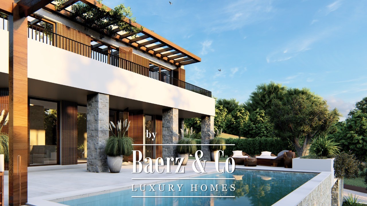 The villa itself has 330.75m2, while its plot has 769m2. It has a view of the sea and the mountains that surround it.