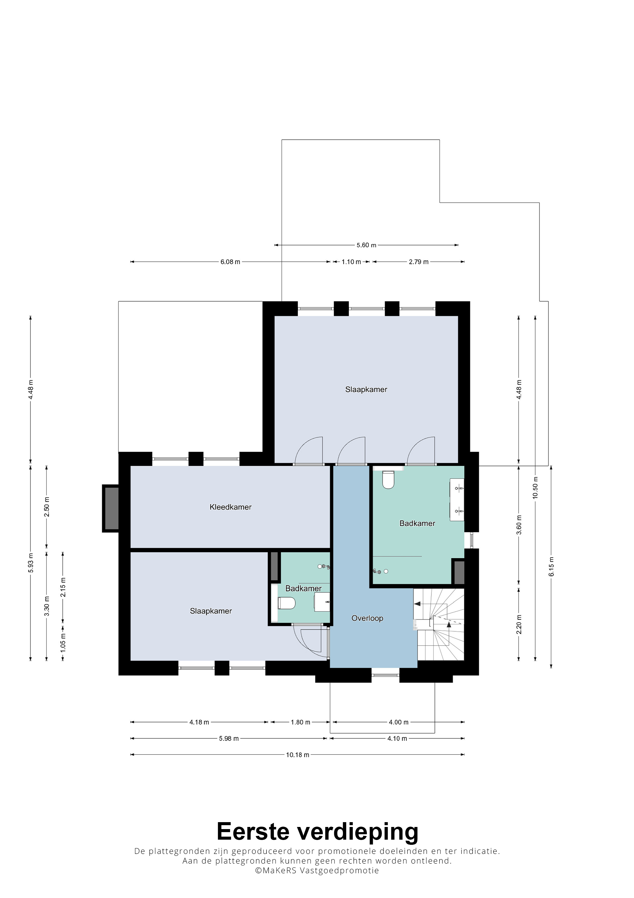 Via de overloop, met daglicht, kom je in de 2 ruime slaapkamers beide met een eigen badkamer.