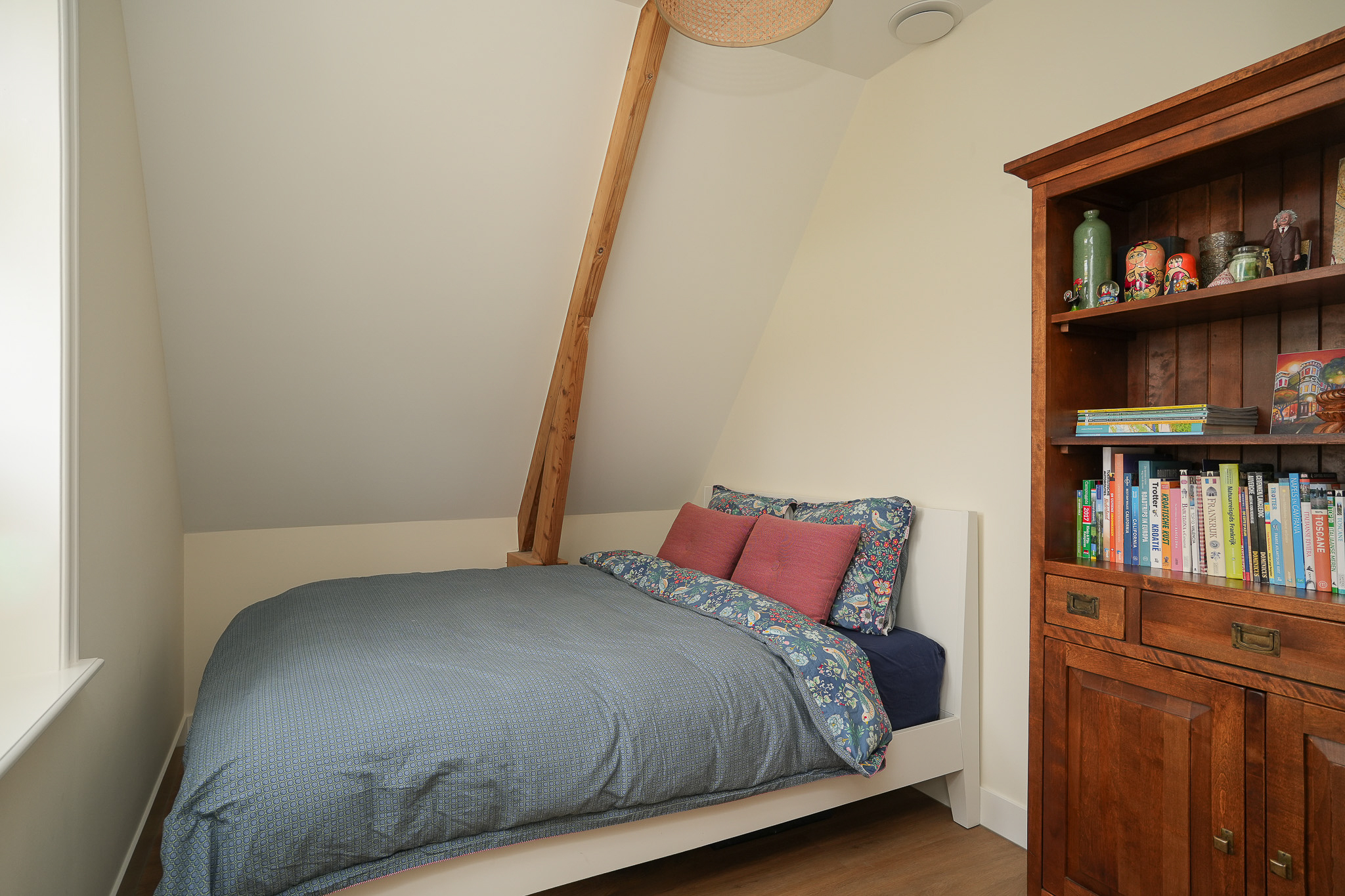 Aan de voorzijde van de woning ligt een tweede slaapkamer, eveneens prettig van formaat en met zicht op de Dorpsstraat.