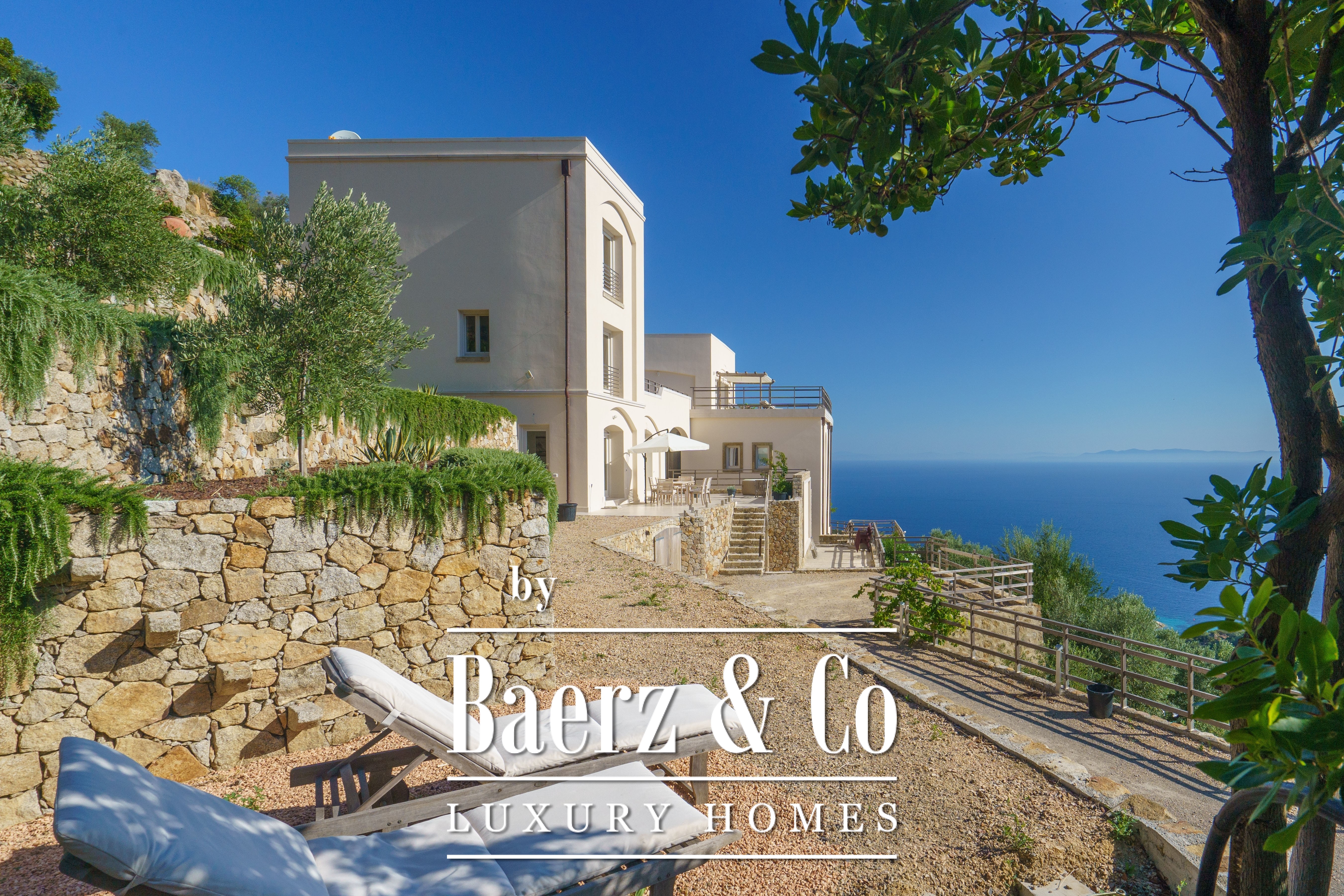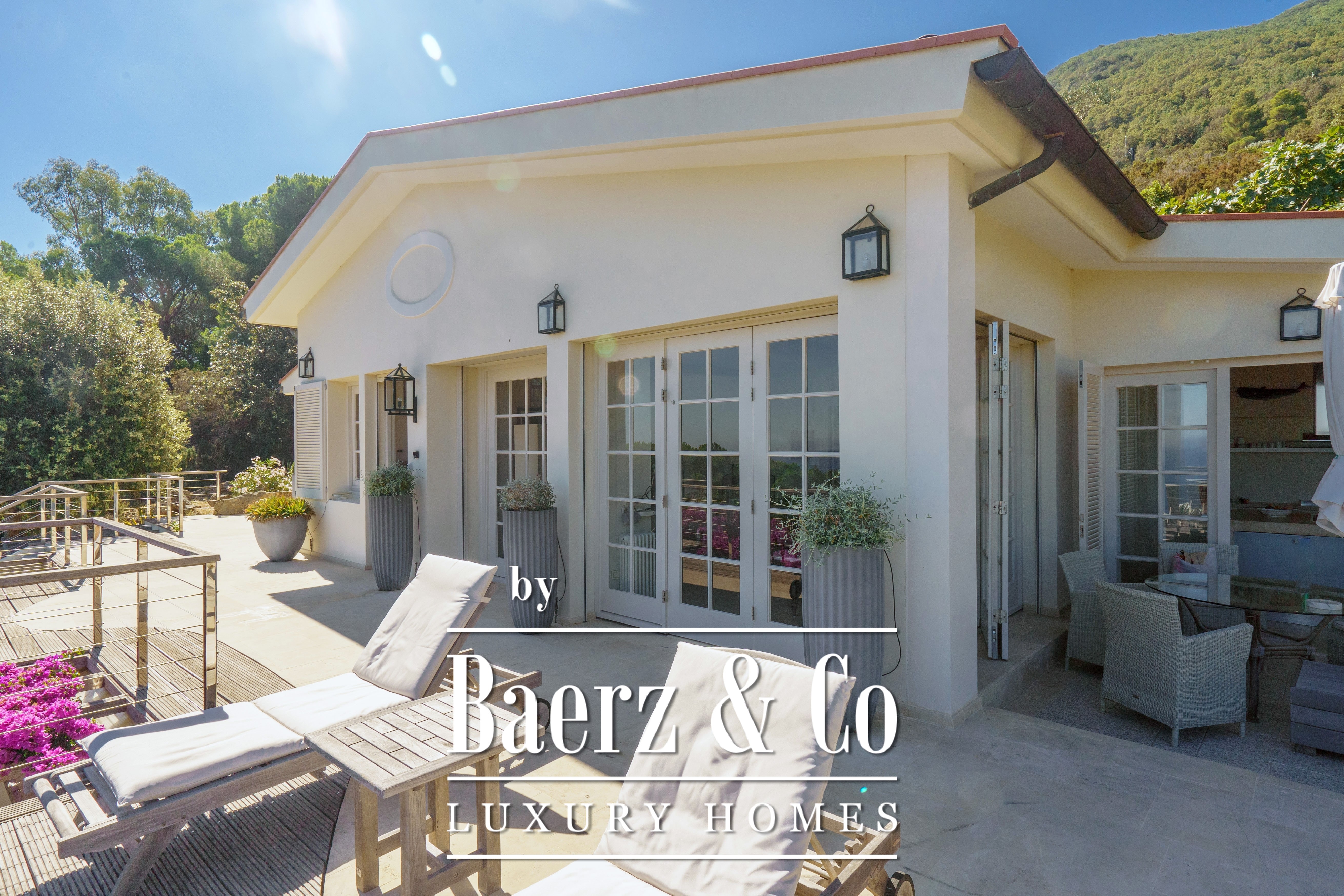 De villa ligt volledig in het groen (de dichtstbijzijnde buren zijn honderden meters verderop) en wordt omringd door terrastuinen vol mediterrane planten en kruidengeuren.