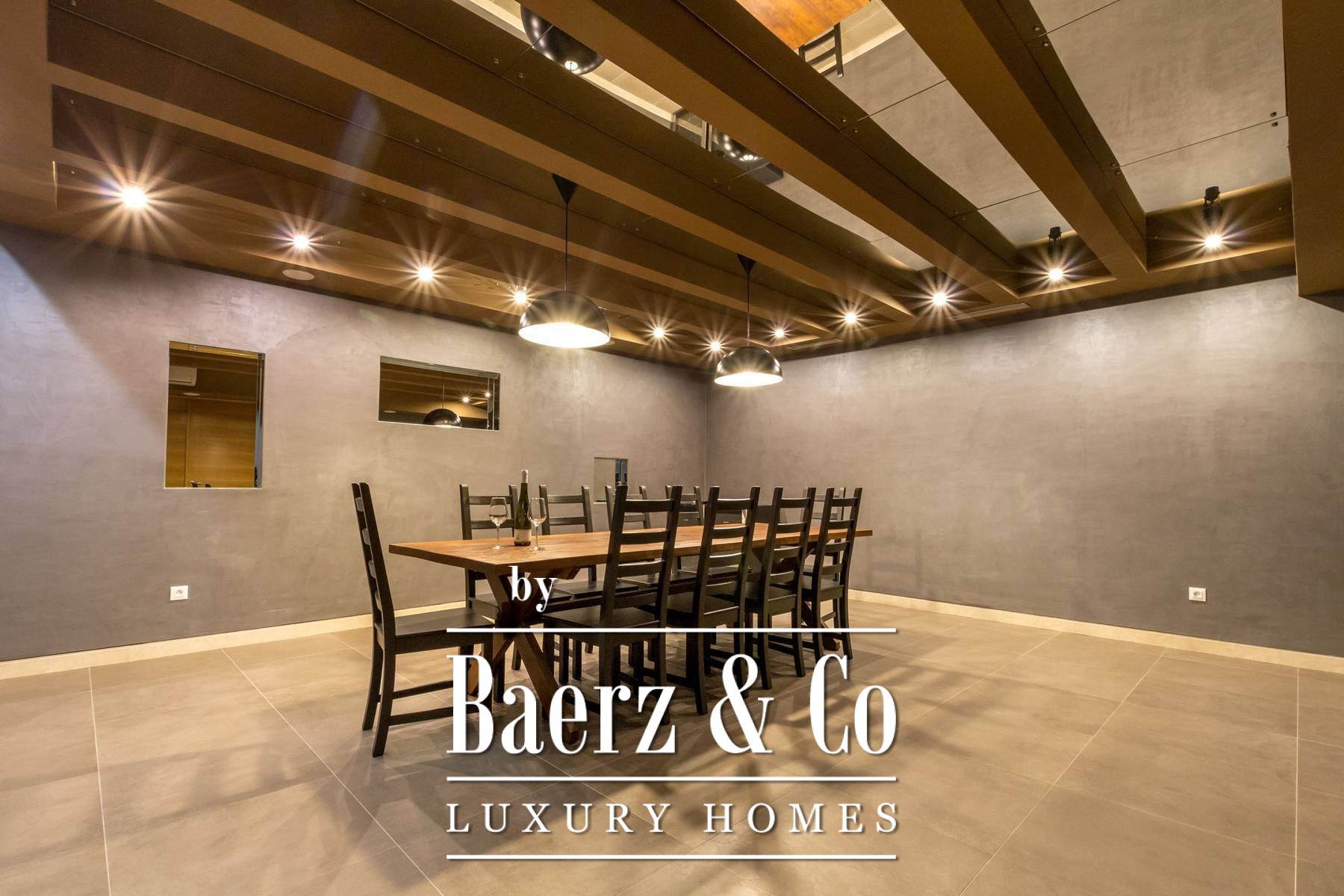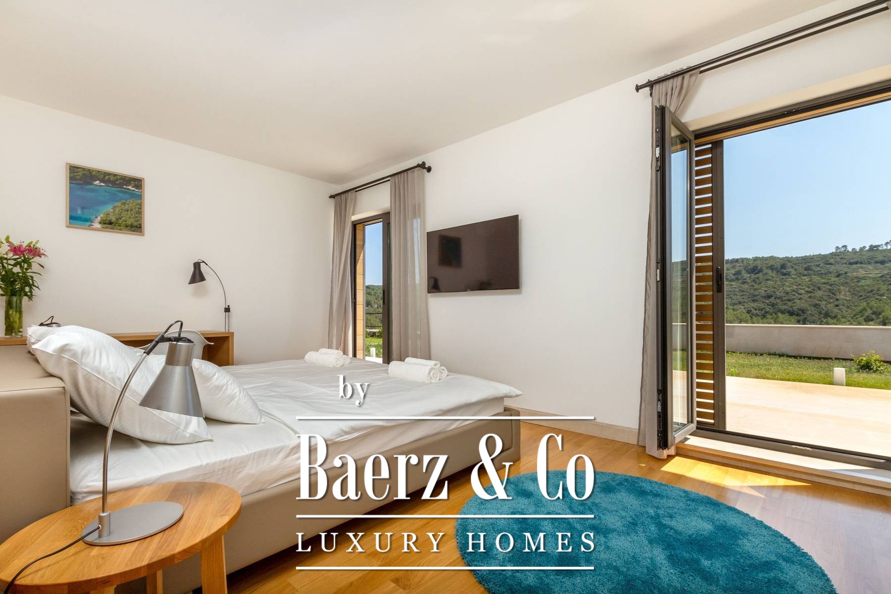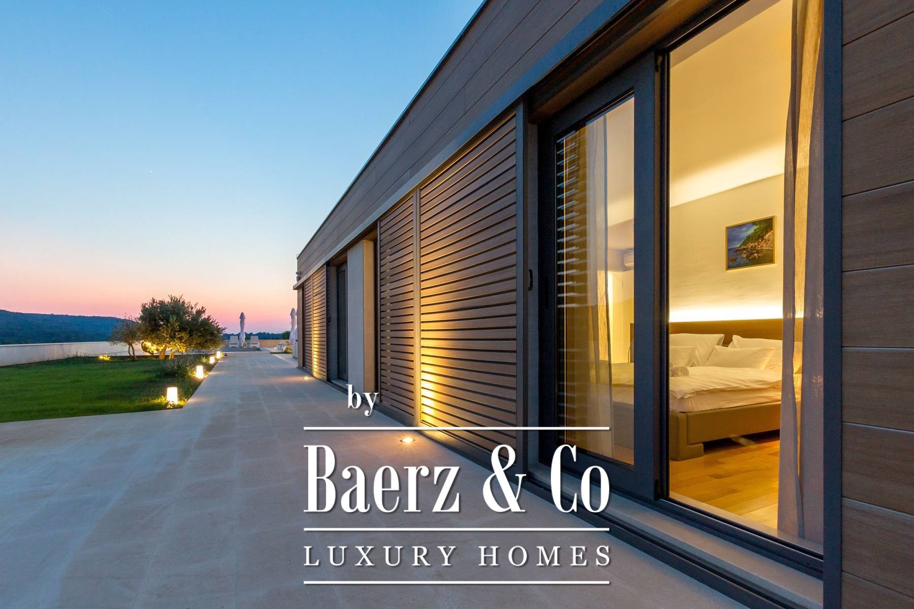 and three bedrooms, one of which has an attached bathroom. In the basement there is another room with a bathroom, a wine cellar, and a spa area (hot tub, massage table, gym and sauna).The outdoor space is refined with a barbecue, a lighted tennis court, a bowling alley and a detached garden house with a studio apartment. The facility is equipped with a high-end electronic locking system and a video surveillance system and an alarm for additional security.It is less than two kilometers from the beautiful Pokrivenik bay.