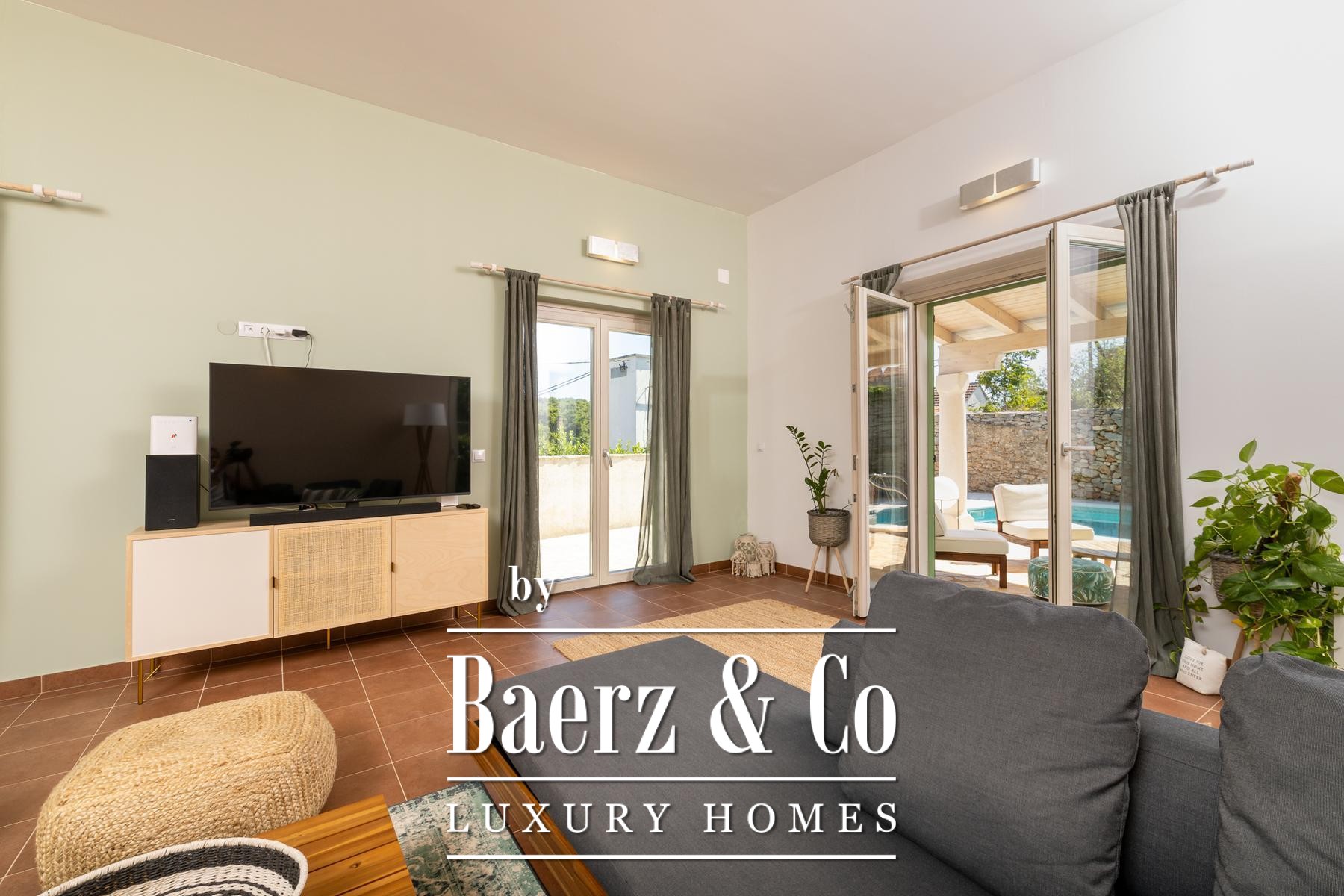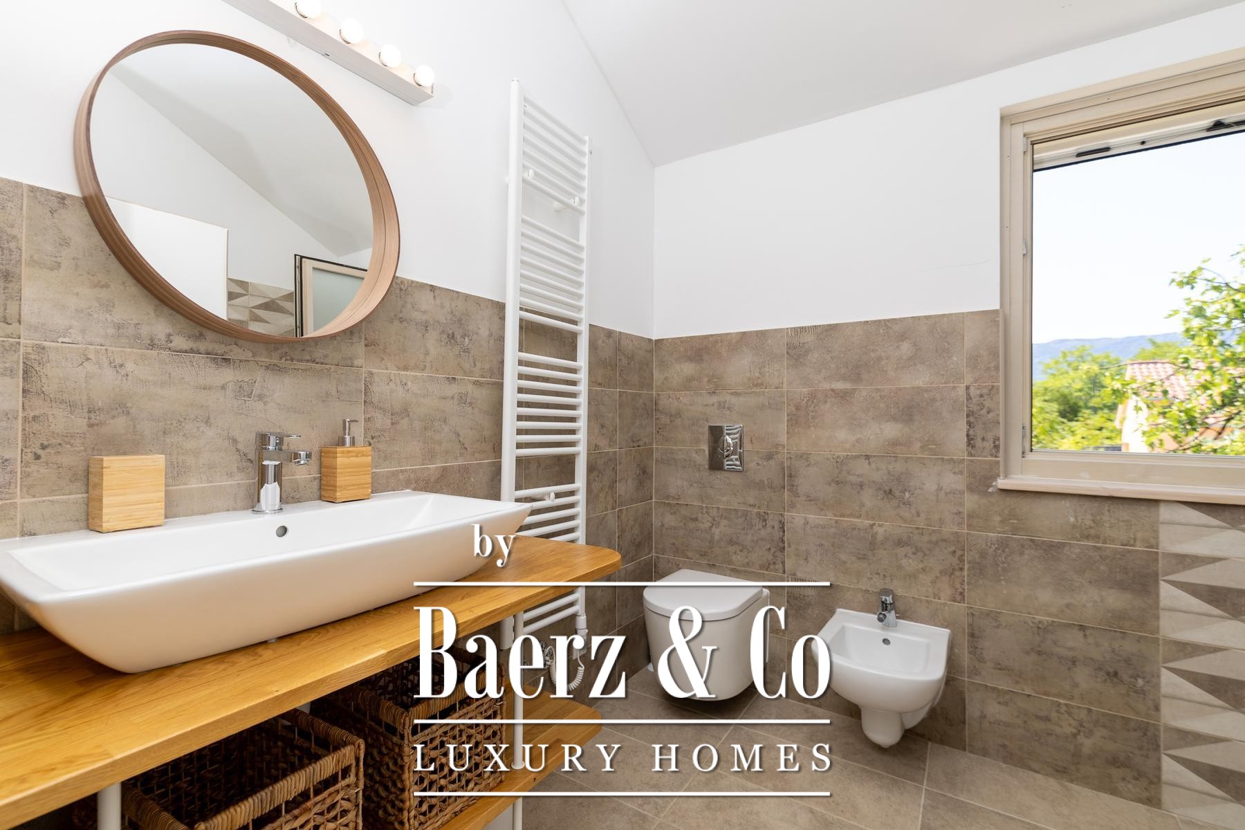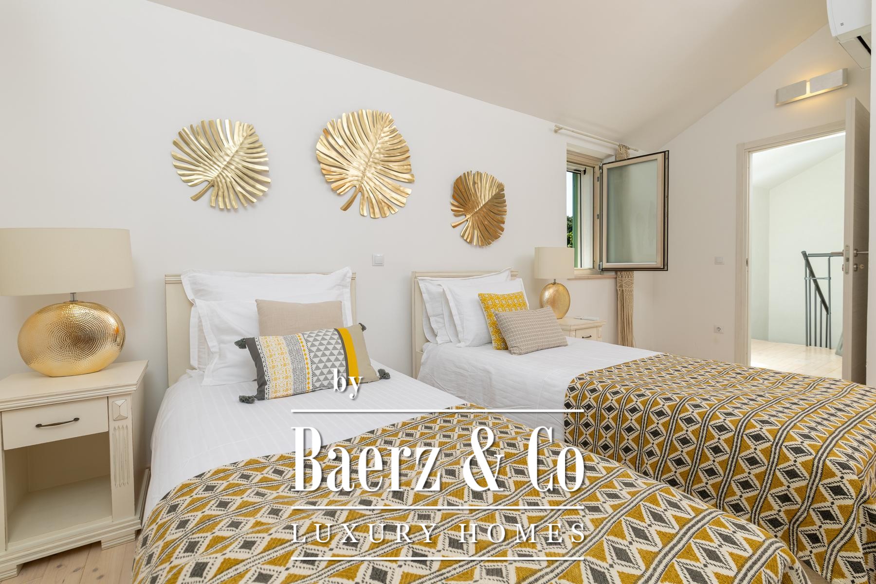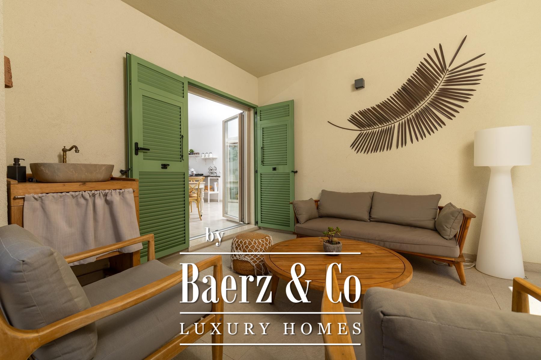 Vanuit de entree loopt u door naar een eigentijdse keuken en een extra zomerkeuken; samen met een royaal terras van 24 m² en een terras met zwembad vormt dit de ideale setting voor privé-bijeenkomsten of serene rust. Op de eerste verdieping zijn drie slaapkamers, elk met een eigen badkamer, een inloopkast en een flexibele studio, alle met toegang tot ruime terrassen.