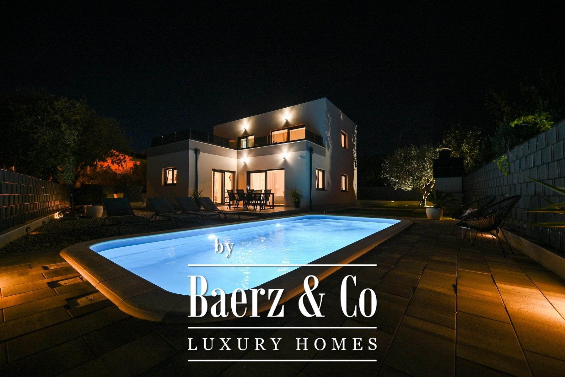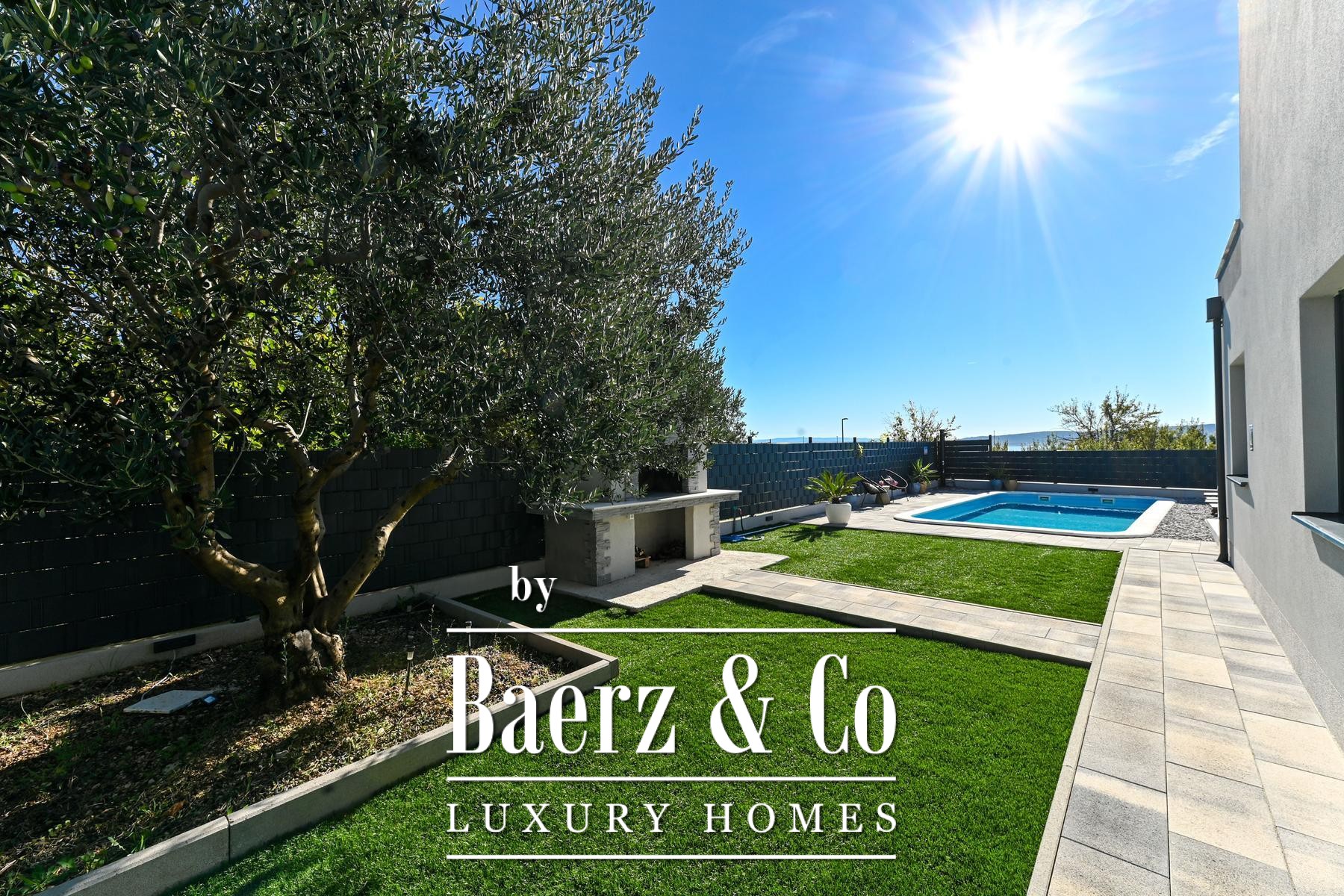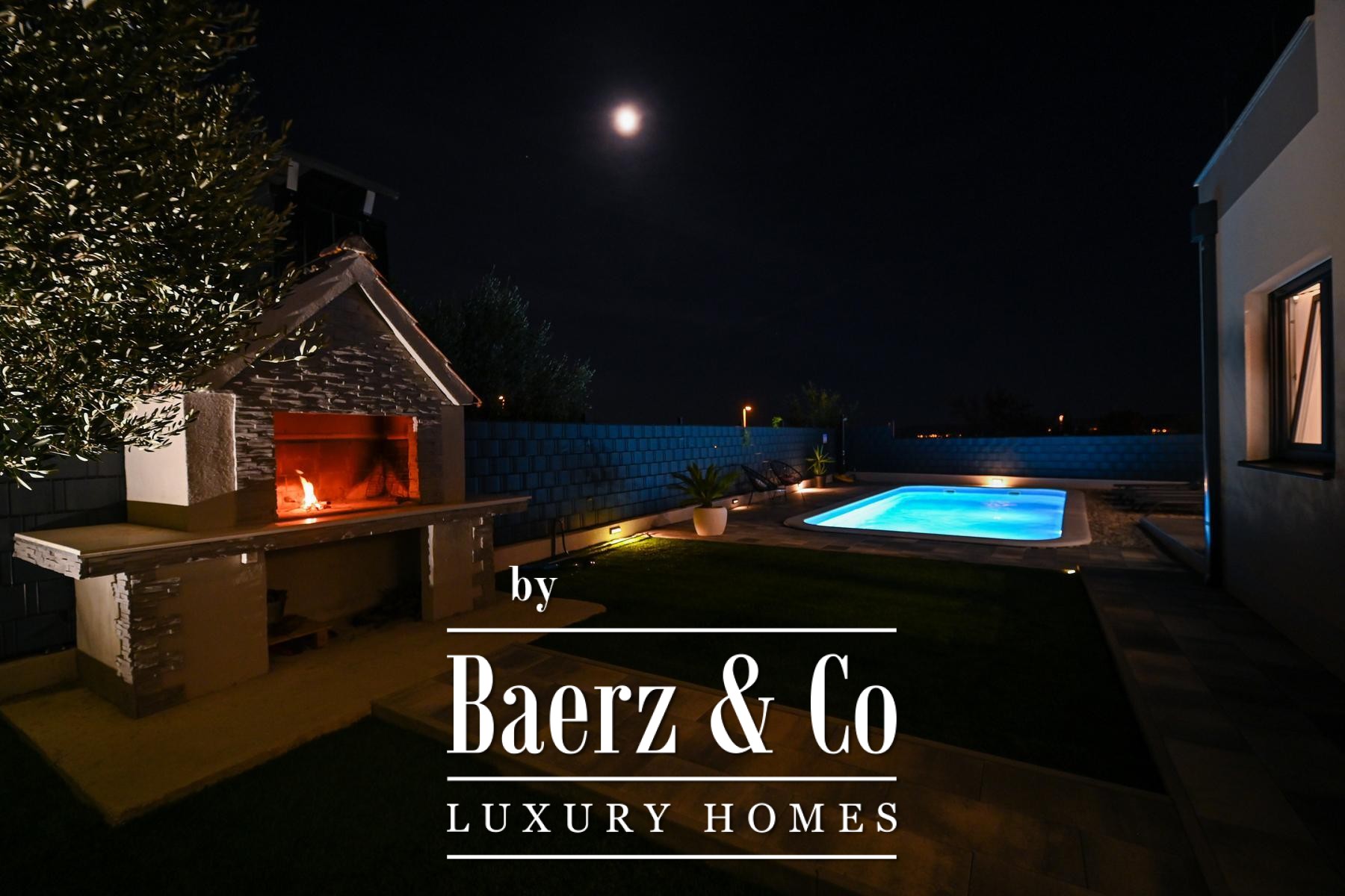 Buiten beschikt de volledig omheinde, fraai aangelegde tuin over een rustige zwembad, een zonneterras, een sociale ruimte en een barbecue, ontworpen voor zowel privacy als gezellige bijeenkomsten. De woning ligt op een gewilde, goed bereikbare locatie, met alle nodige voorzieningen binnen handbereik. Dit moderne huis in Kaštela verenigt doordachte architectuur en verfijnde buitenlevensstijl, waardoor het dagelijks leven aan de Adriatische kust nog aantrekkelijker wordt.