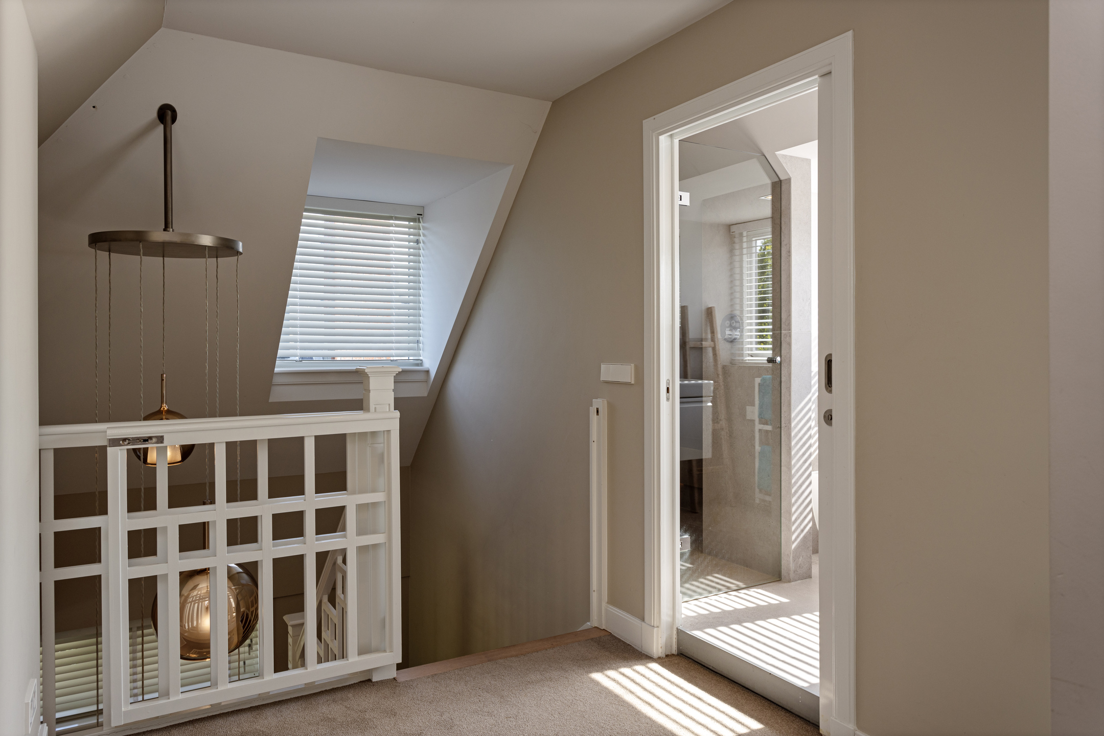 Vanaf de overloop zijn de 3 slaapkamers bereikbaar. De ouderslaapkamer heeft toegang tot de luxe badkamer en de 2 achterslaapkamers hebben toegang tot het grote balkon met fraai zicht op het water.