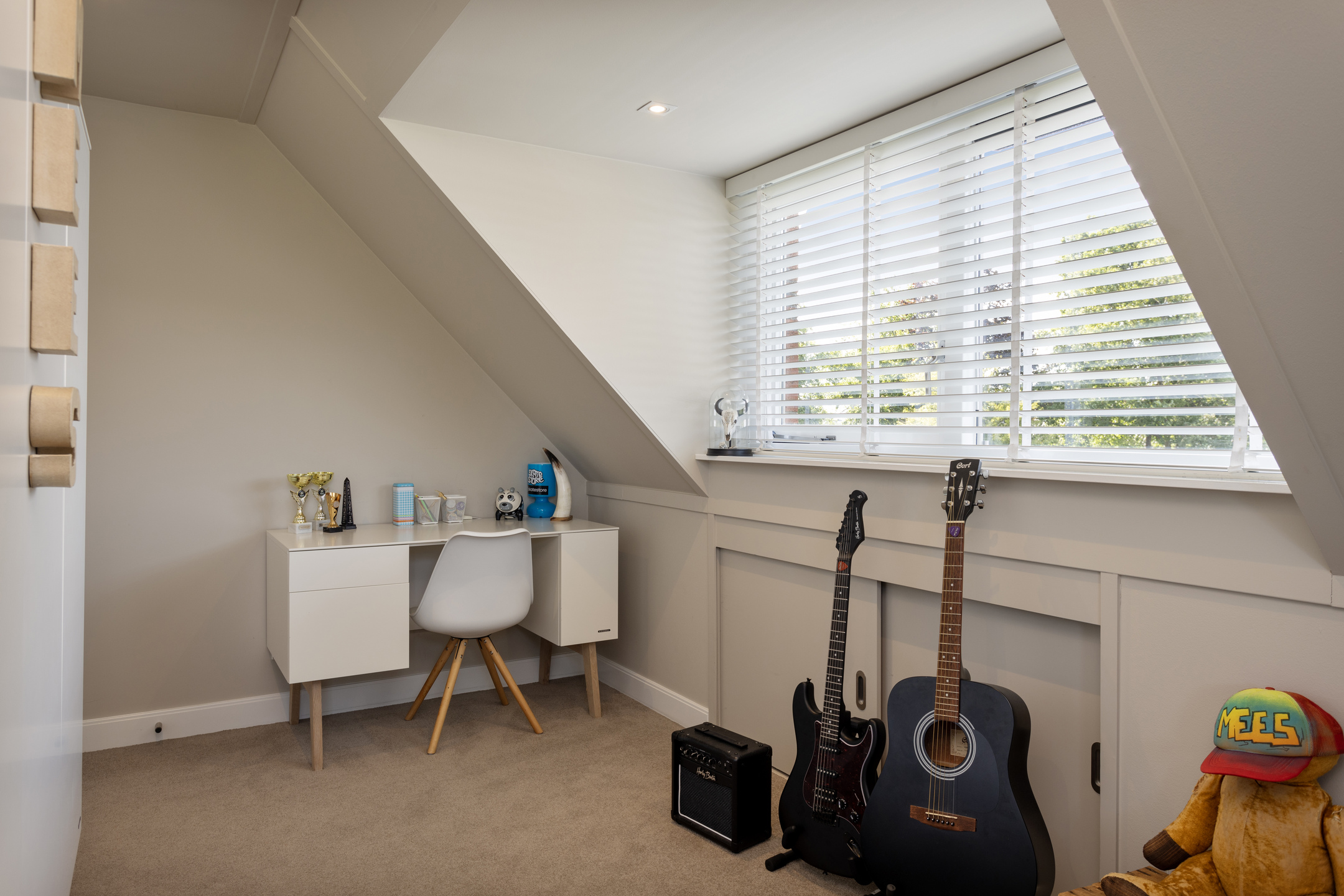 Alle kamers zijn voorzien van een dakkapel en kastruimte achter de knieschotten. Een dakkapel in het trapgat zorgt voor extra lichtinval op de overloop.