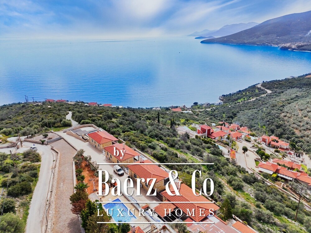 Vrijstaande woning North Kinouria is een ingetogen kustverblijf met 172 m² volledig ingerichte leefruimte op een privéperceel van 240 m². De woning werd in 2009 opgeleverd en ademt tijdloze elegantie dankzij de natuurstenen gevel, waarbij moderne specificaties en natuurlijke texturen samenkomen voor zowel esthetiek als extra isolatie. Onbelemmerd panoramisch zeezicht baant zich een weg richting de Argosaronische Golf, terwijl de kust zich op slechts 350 meter afstand bevindt.