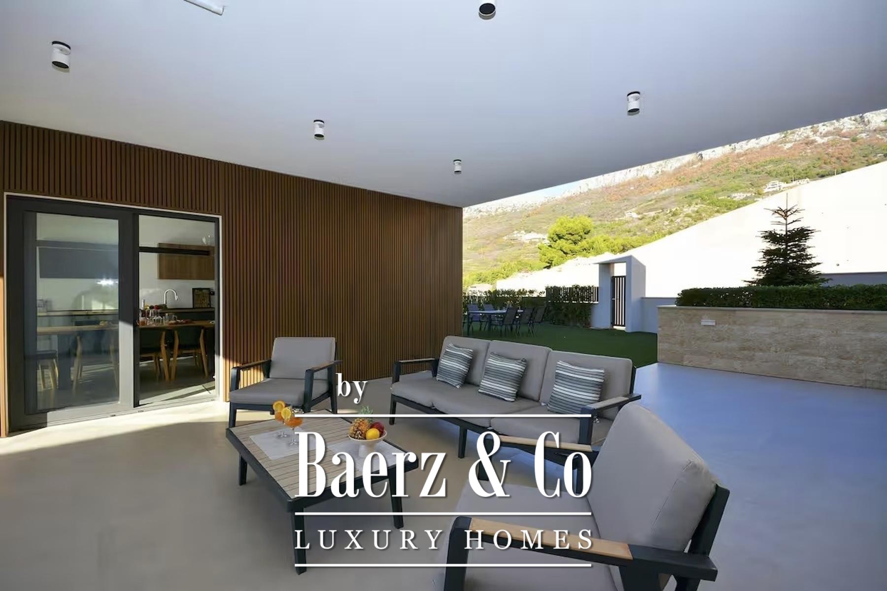Villa Klis boven Split ligt tegen een heuvel op slechts vijftien minuten van de Adriatische Zee en het stadscentrum, met een panoramisch uitzicht over zee en skyline. Deze villa boven Split biedt 250 m² verdeeld over drie niveaus, waarbij het zuidgerichte ontwerp en het open zicht het architectonische karakter bepalen.