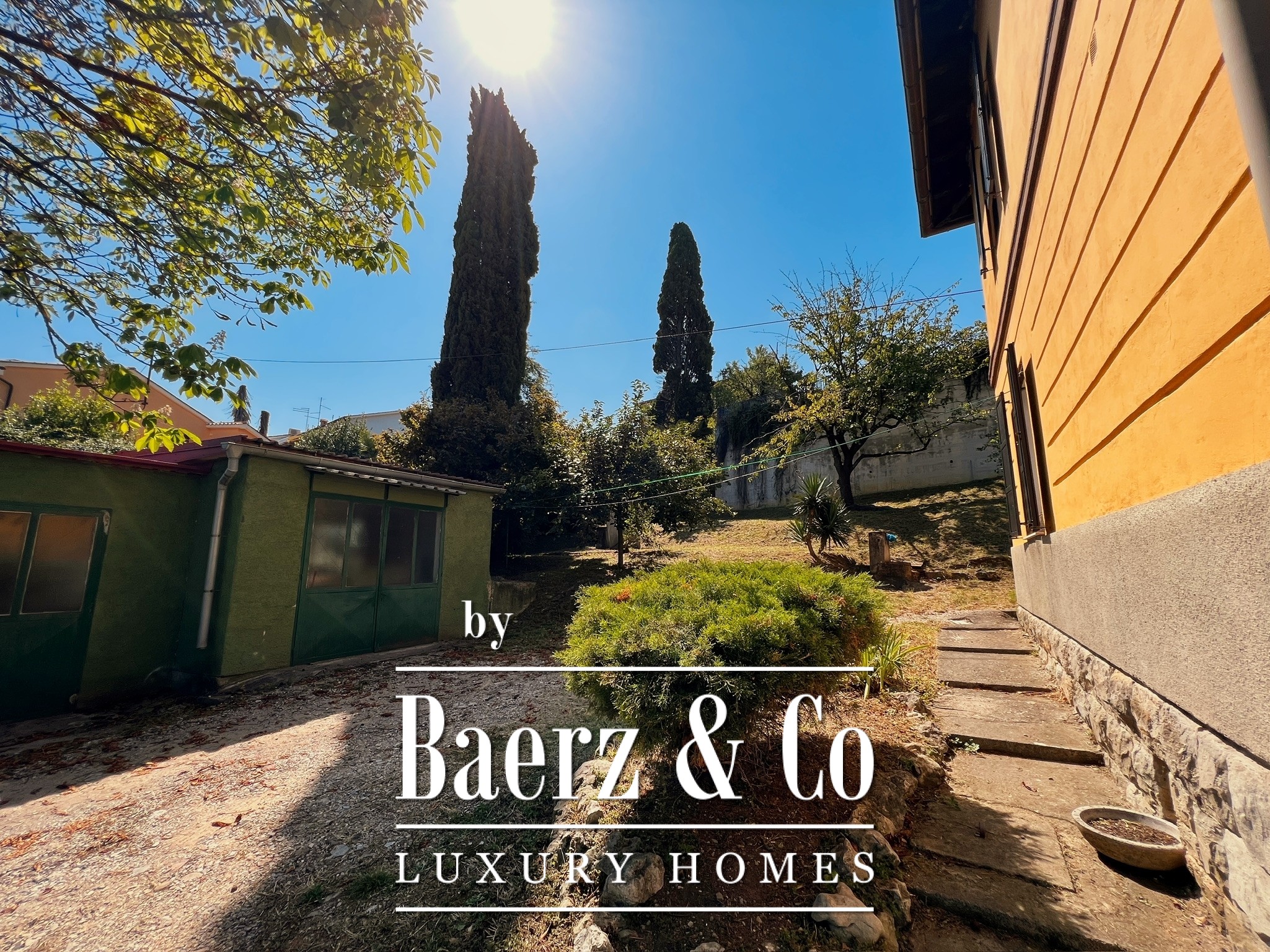 Gelegen op een perceel van 1.427 m², opent de villa zich richting tuin, zwembad en het gelaagde mediterrane landschap. Wijdse raampartijen vangen de blauwe horizon en het omliggende groen, waardoor de rust van de Adriatische Zee ieder vertrek binnenstroomt. De boomrijke omgeving en zorgvuldig ontworpen privacy zijn gewaarborgd, ondanks de aantrekkingskracht van de promenade direct buiten het domein.
