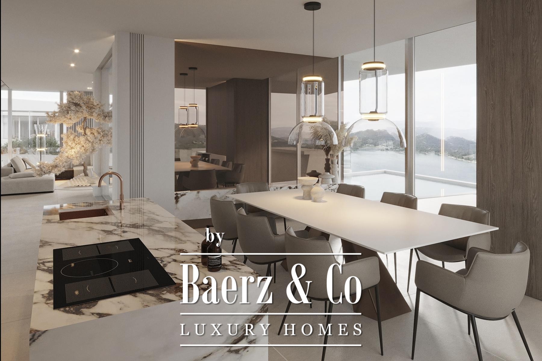 De woning beschikt over vier slaapkamers en vier badkamers, elk afgewerkt met design sanitair in geborsteld brons en satijn, wat zorgt voor een combinatie van comfort en ingetogen elegantie. Het interieur is ontworpen voor een vloeiende woonervaring, terwijl terrassen van 197 m² en een rooftop pool van 34 m² uitnodigen tot een naadloze overgang tussen binnen- en buitenruimtes. Details als een sculpturale Ergofocus open haard, Schüco systemen en hoogwaardig keramiek onderstrepen het verfijnde karakter, aangevuld met een garage van 32 m².