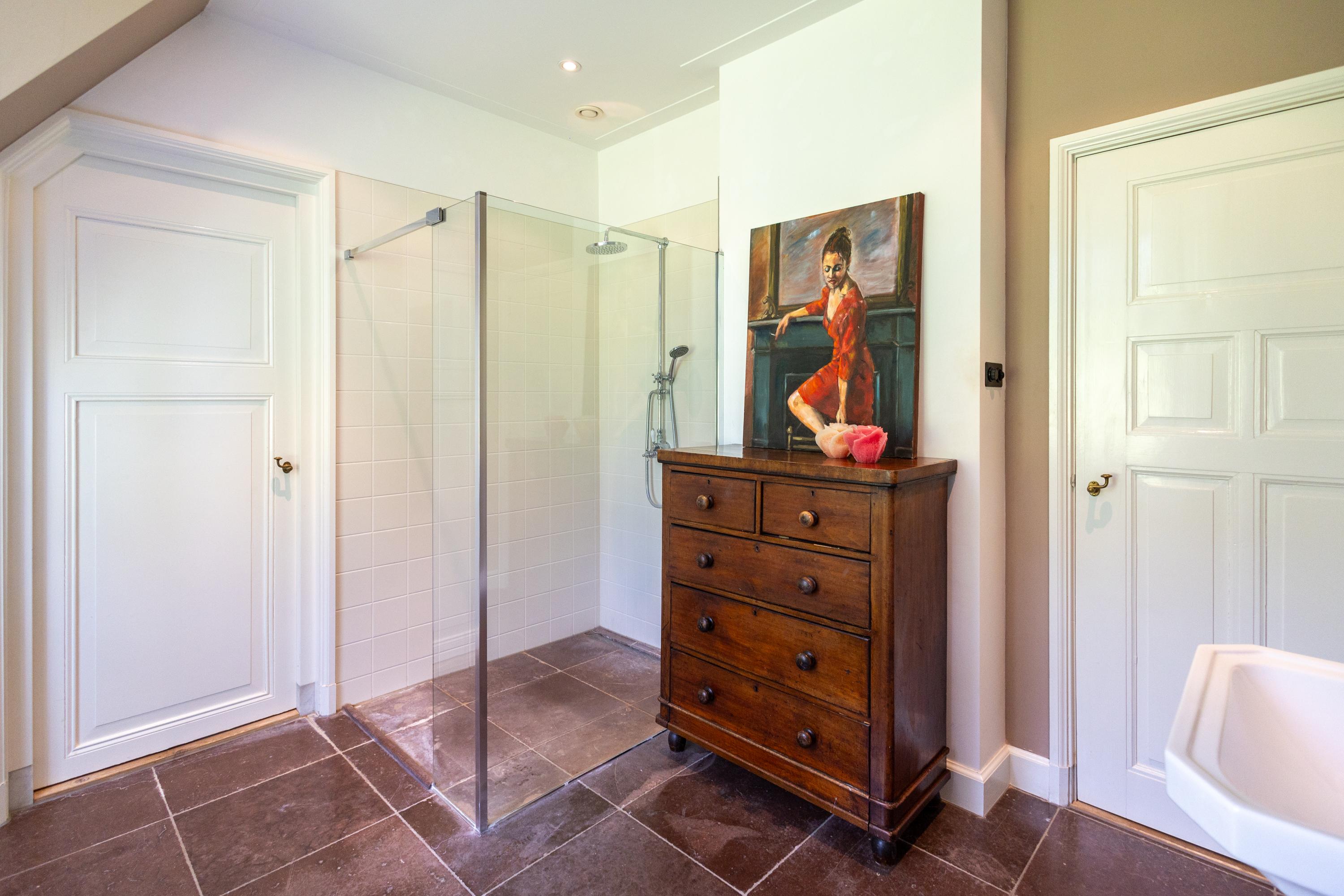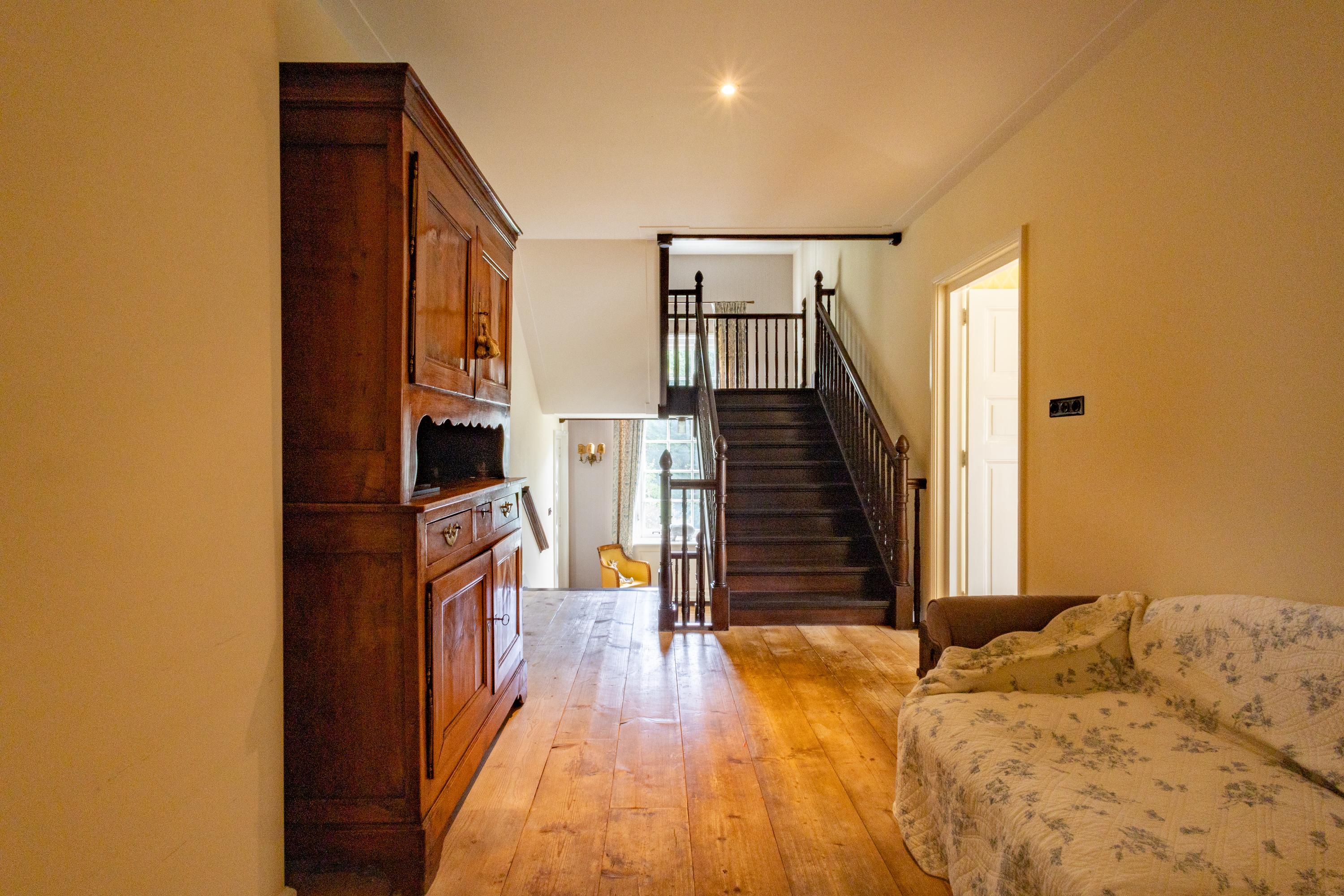 Wat dit huis echt onderscheidt, is de ziel waarmee het gebouwd is. In 2012 tekende architect Van Asbeck voor het ontwerp, maar het zijn de oude, zorgvuldig verzamelde materialen die het karakter geven. Vloeren van parket die eerder in historische panden lagen, stokoude kinderspeltegels verwerkt in de plinten en bij het fornuis, deuren met een verleden, dakpannen die ooit een Utrechtse kazerne bedekten en zelfs oude kaasplanken die een nieuwe bestemming vonden. En in de keuken staat een kast uit een Amsterdams grachtenpand, die hier naadloos aansluit bij de sfeer. Elk detail ademt historie en authenticiteit, en samen geven ze de woning een bezieling die je zelden tegenkomt.