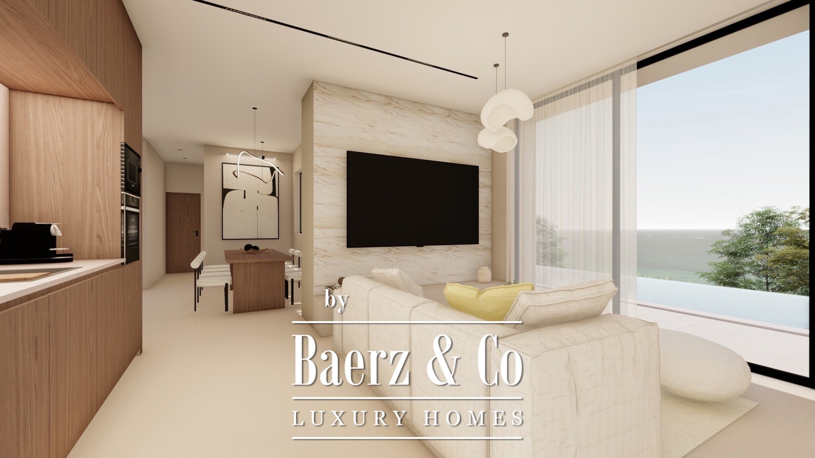 De villa wordt gebouwd met gewapend beton, beschikt over geavanceerde isolatie en een ondergronds ventilatiesysteem, wat zorgt voor langdurige duurzaamheid en uitstekende energieprestaties. De binnenruimtes omvatten een open woon- en eetgedeelte, grote glazen puien die overvloedig daglicht en panoramische vergezichten bieden, en een moderne keuken met hoogwaardige apparatuur, wijnklimaatkast en smart home-technologie. Vier badkamers vervolmaken de doordachte indeling en bieden functionele elegantie.