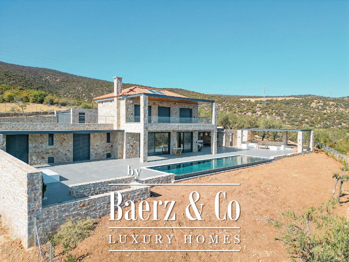 Deze vrijstaande villa in Kiveri ligt op slechts enkele kilometers van het historische Nafplio en biedt 150 m² woonruimte op een privéperceel van 1.869 m². Het ontwerp combineert een moderne uitstraling met traditioneel natuursteen; de architectuur omlijst panoramisch zeezicht en ademt een ontspannen sfeer. De hoofdverdieping beschikt over een riante master bedroom waarin privacy en comfort centraal staan. Twee extra master bedrooms op de bovenverdieping verbinden hoogwaardige esthetiek met praktisch gemak. Een lichte woon- en keukenruimte opent zich richting de kustlijn, gekenmerkt door royale lichtinval en brede vergezichten.